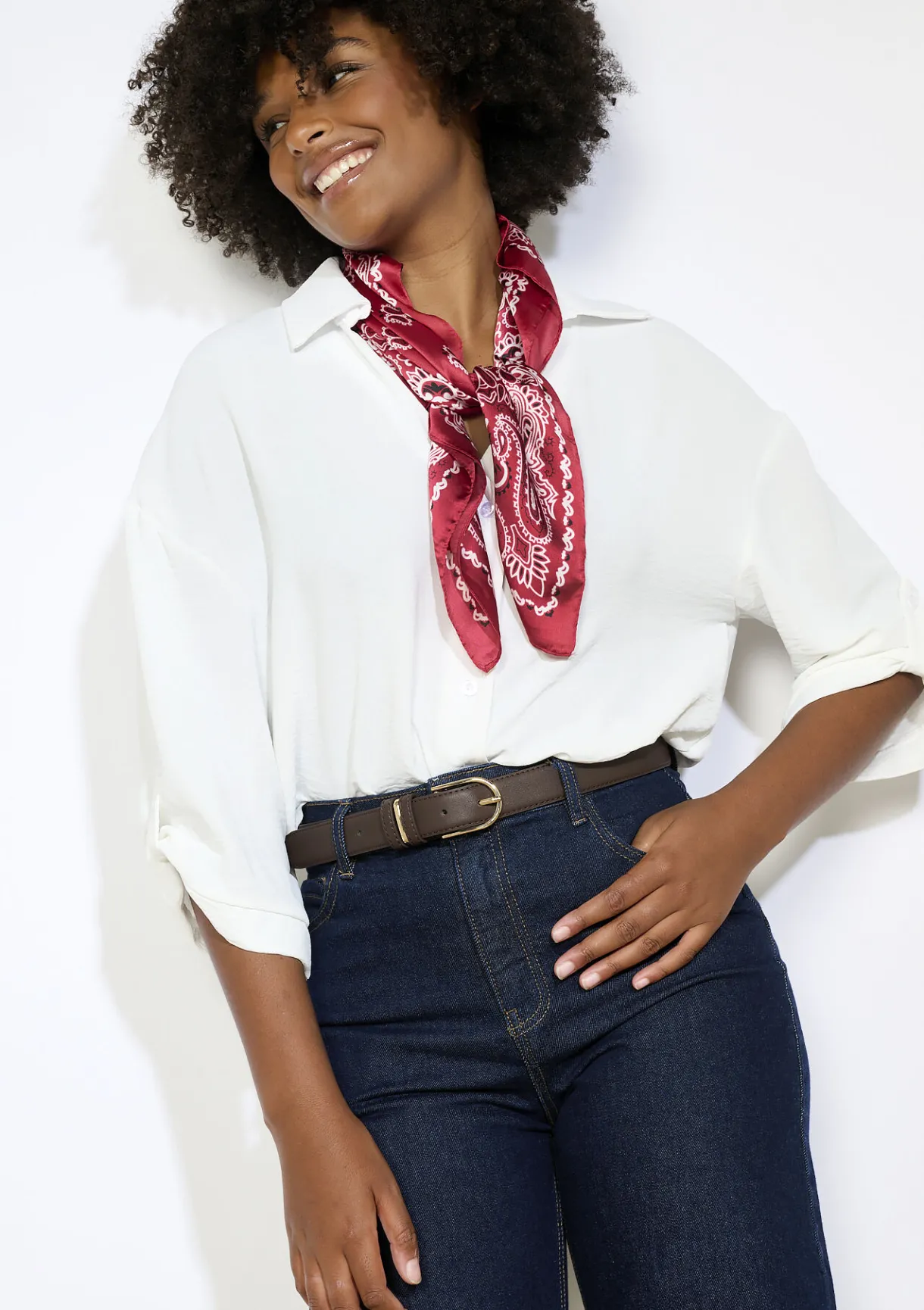 Elegant en tijdloos: deze ceintuur van imitatieleer geeft elke outfit een verfijnde, klassieke afwerking.