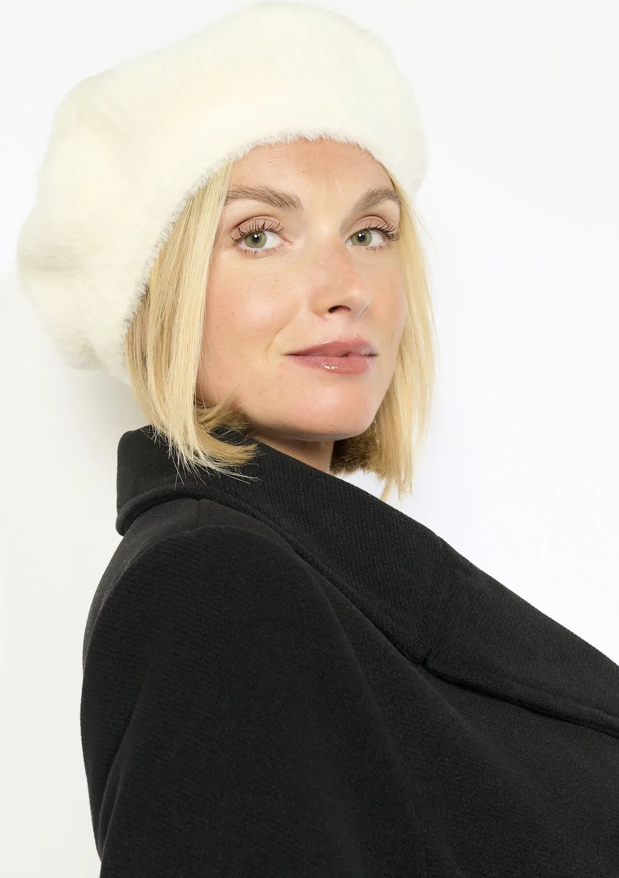 Zachte baret in harige knit. Warmte met een vleugje retro flair.