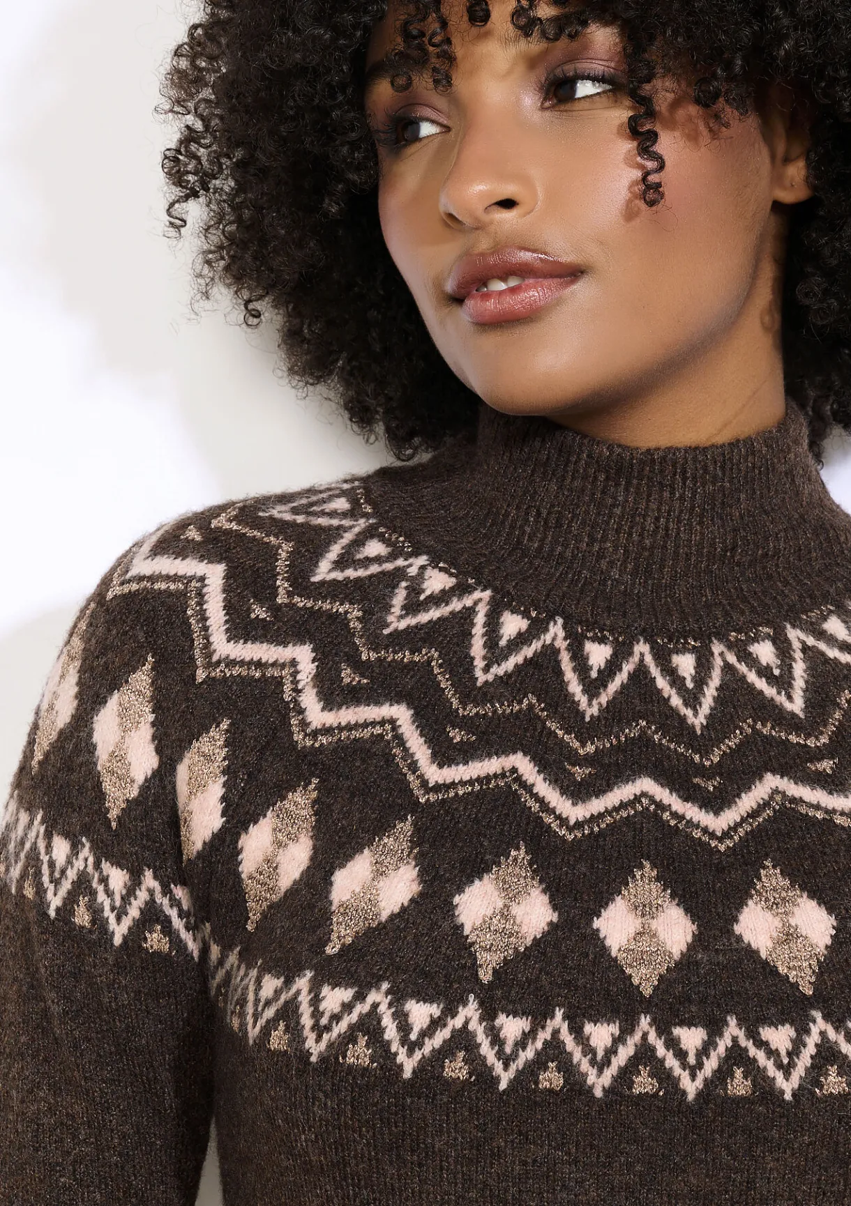 Gebreide jurk met col en opvallend jacquardpatroon. Comfortabel en warm, perfect voor koude dagen.