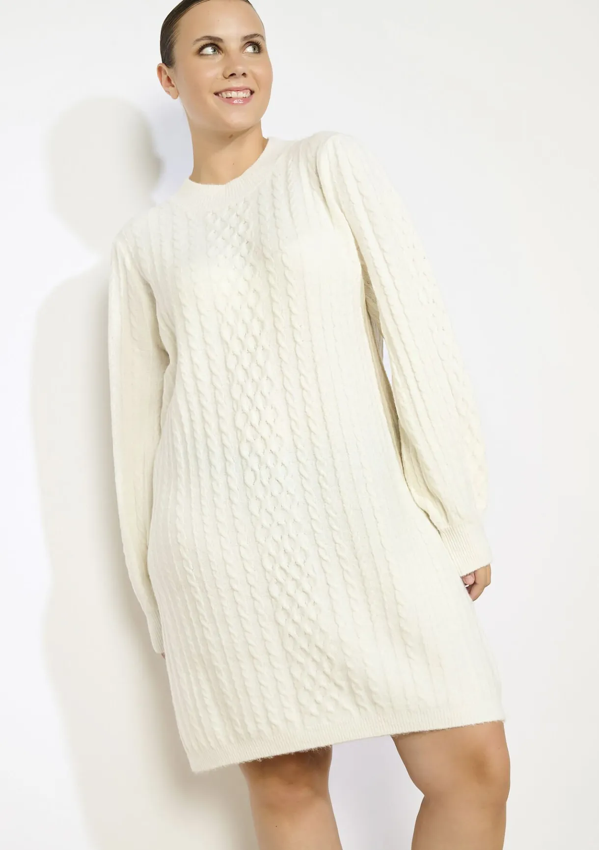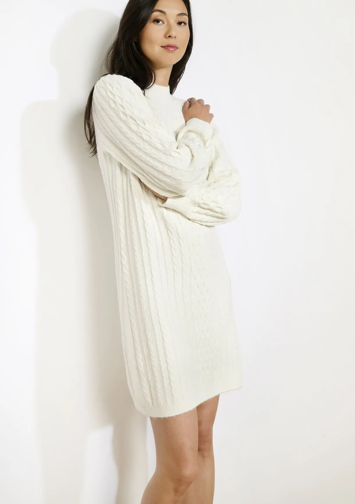 Deze kabelgebreide trui-jurk omhult je in warmte en stijl. Een klassieker met een moderne twist, perfect voor knusse winterdagen.