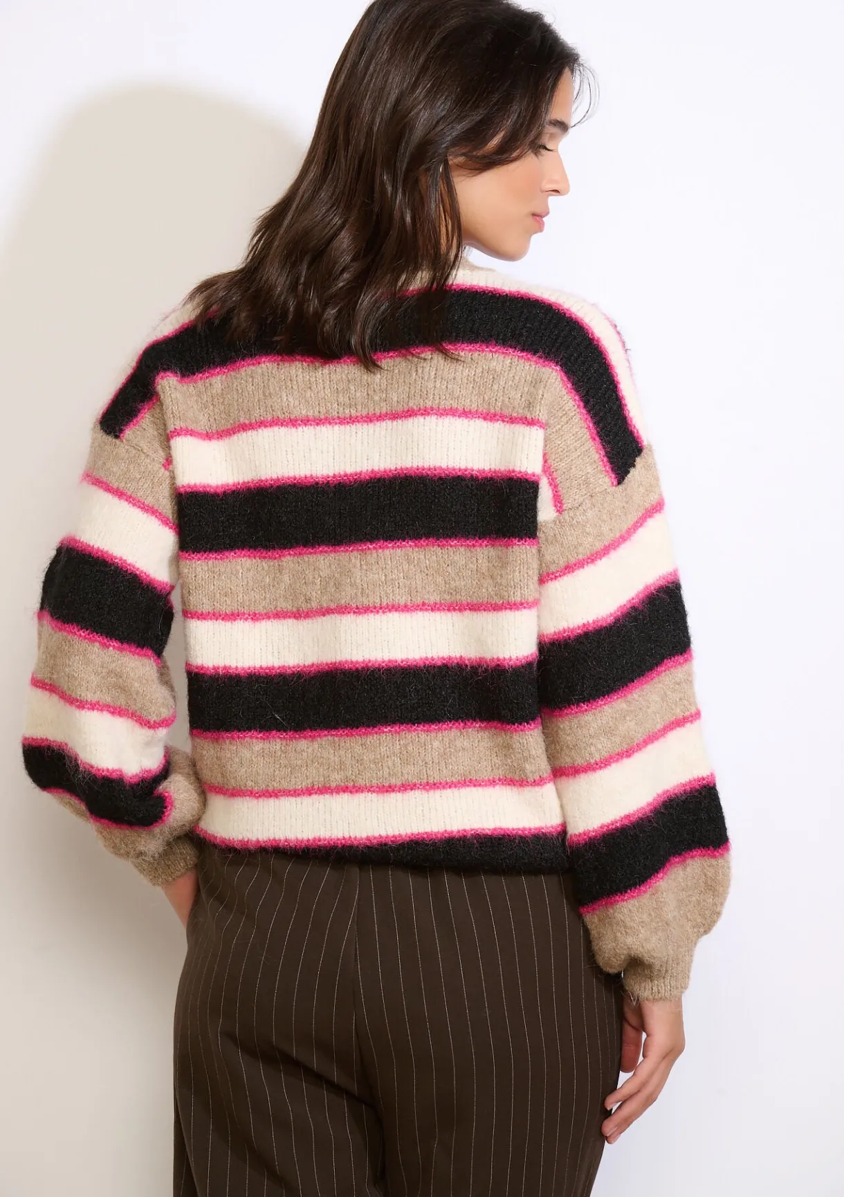 Grafische strepen en een zachte textuur maken van deze trui een opvallende basic voor elke garderobe.