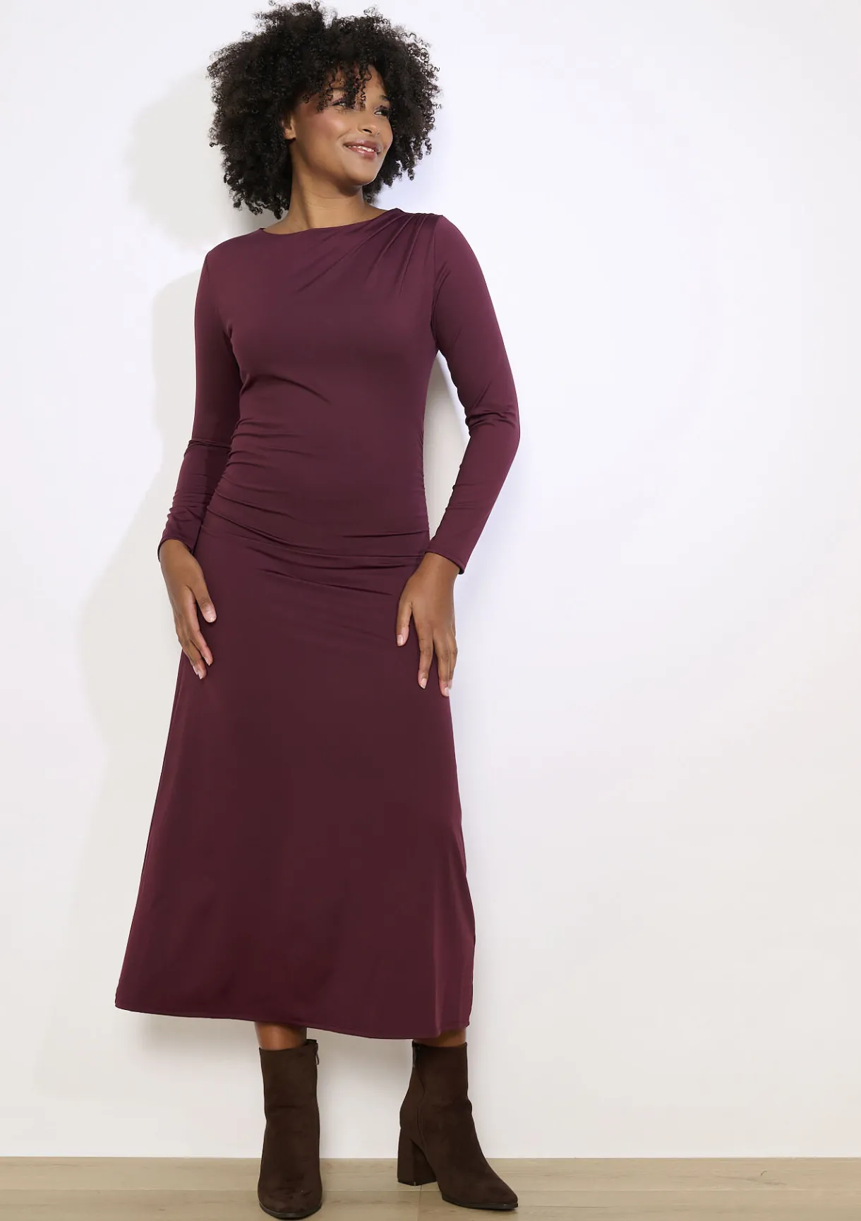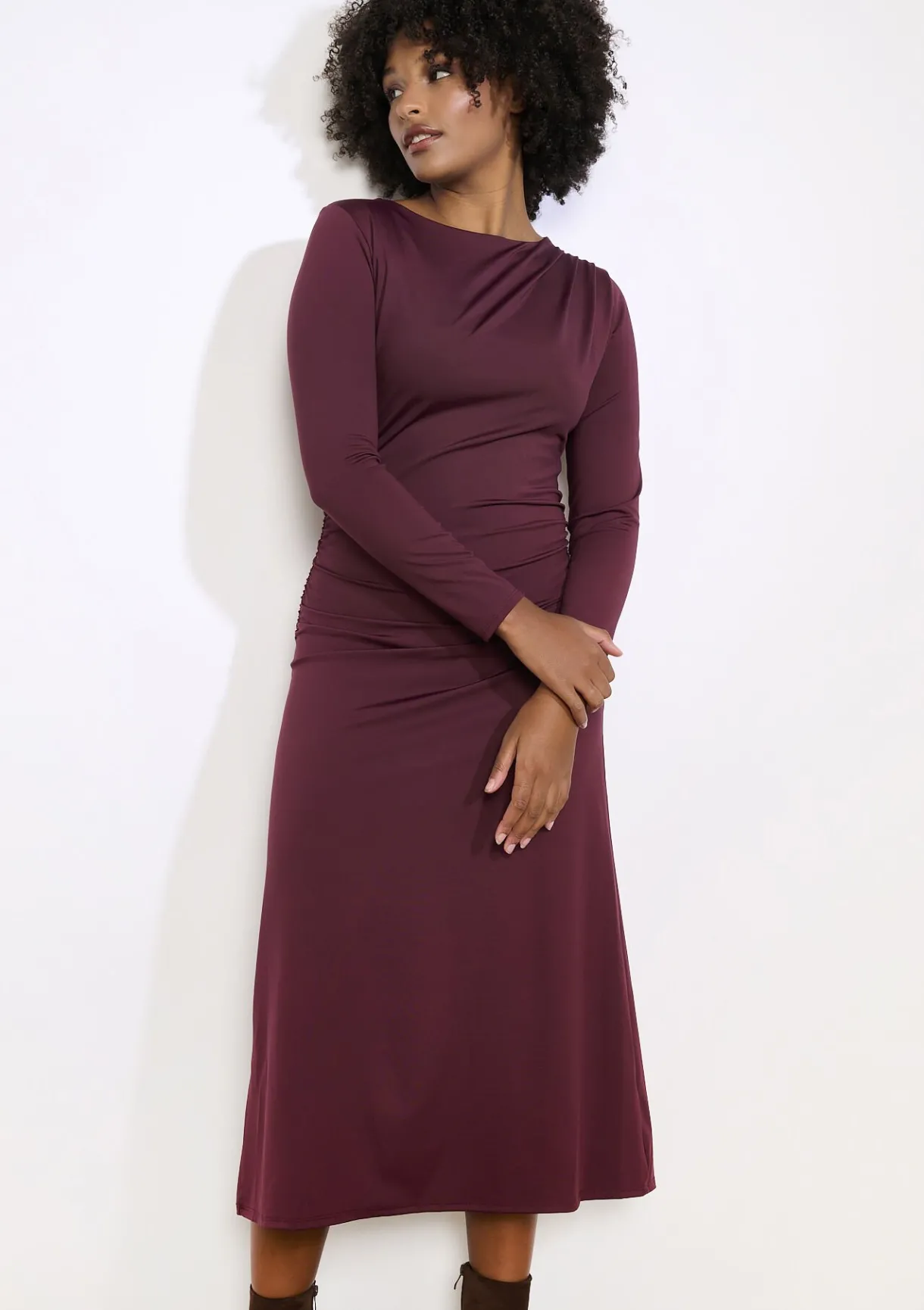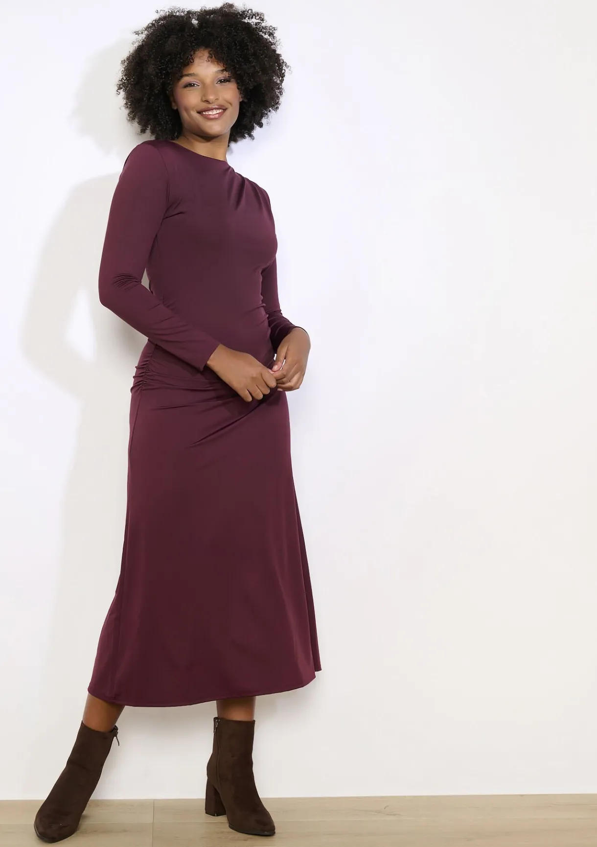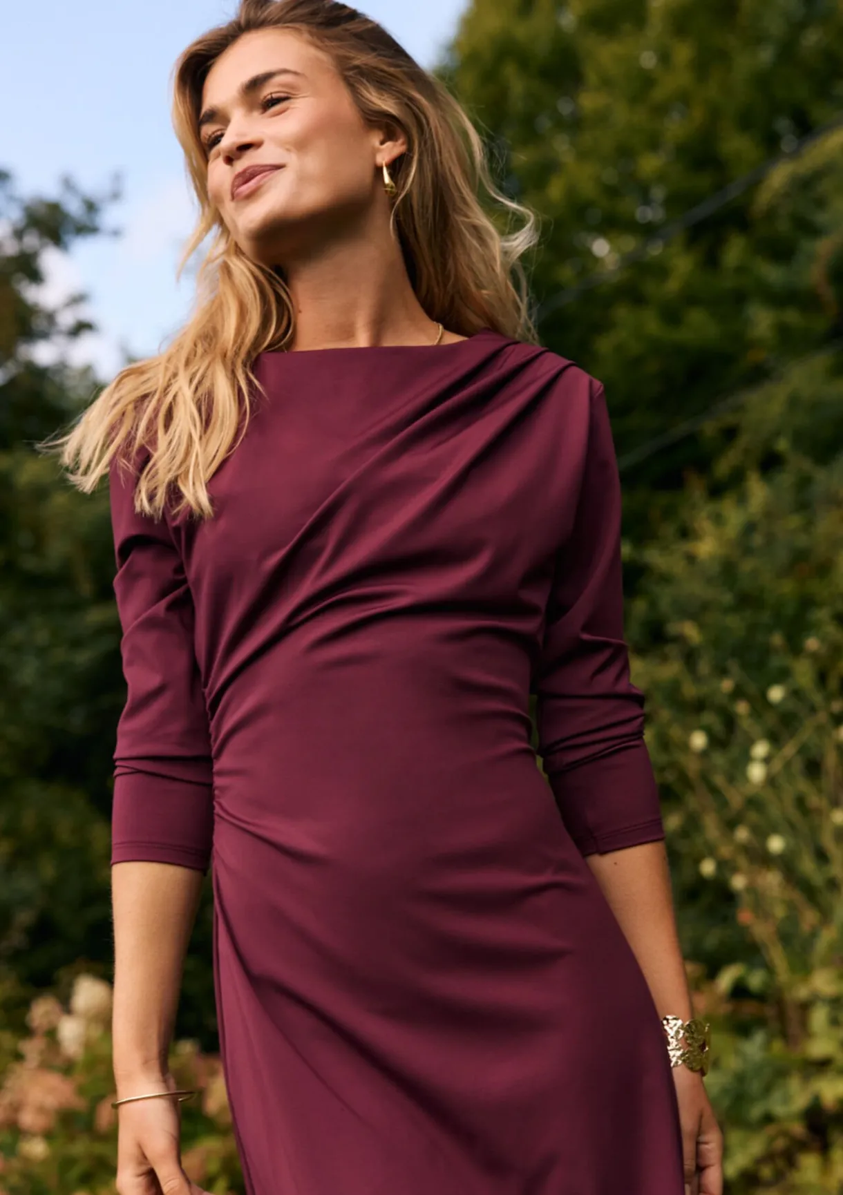 Elegante lijnen in een aansluitende jurk. De soepele plooien accentueren je silhouet met een tijdloze, vrouwelijke uitstraling.