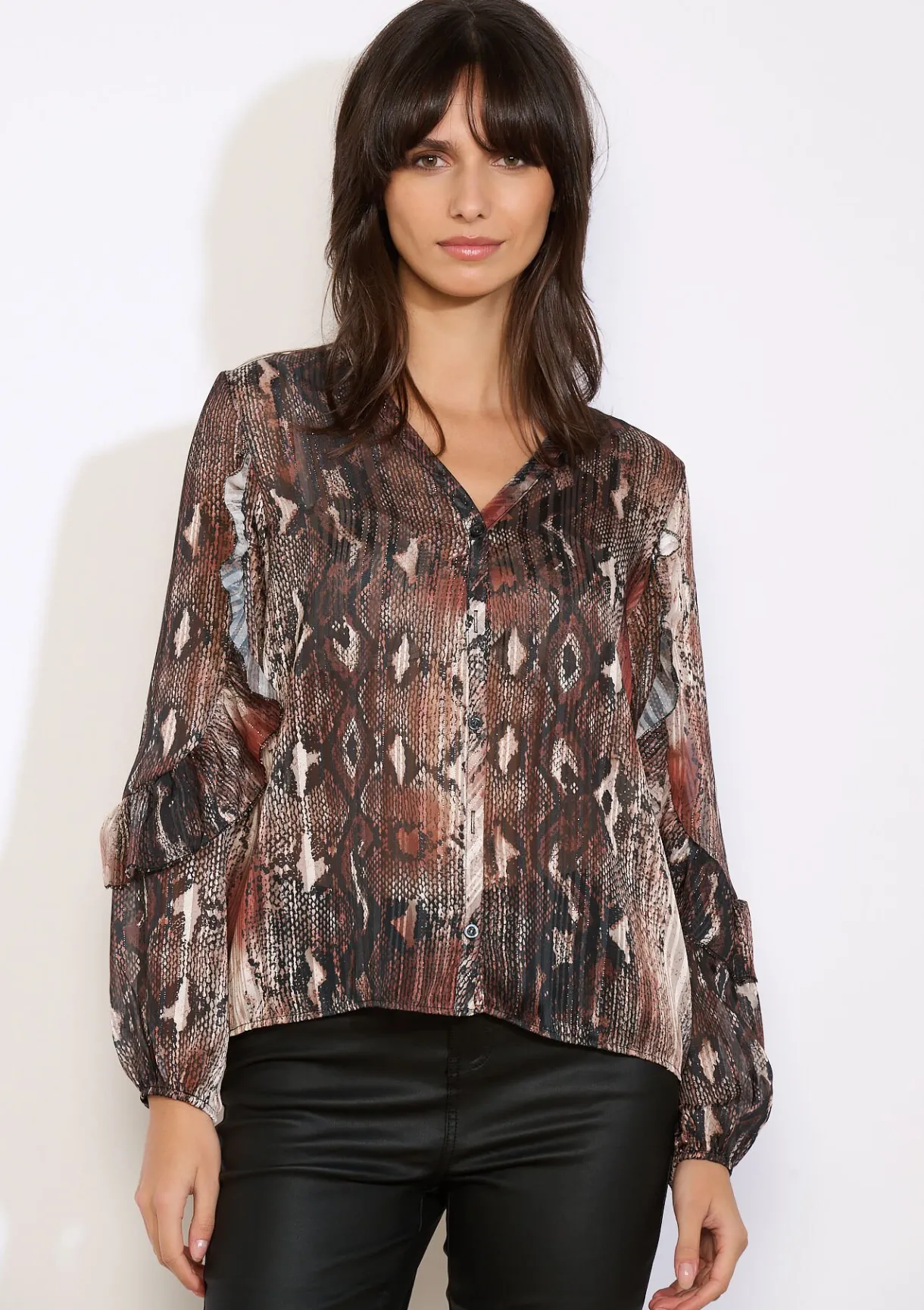 Deze soepele blouse met print geeft elke outfit een moeiteloos stijlvolle touch.