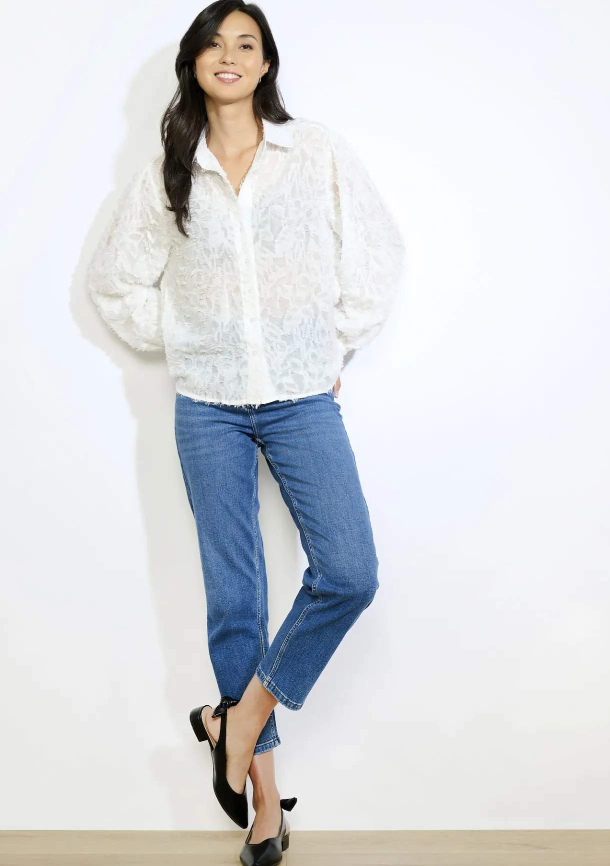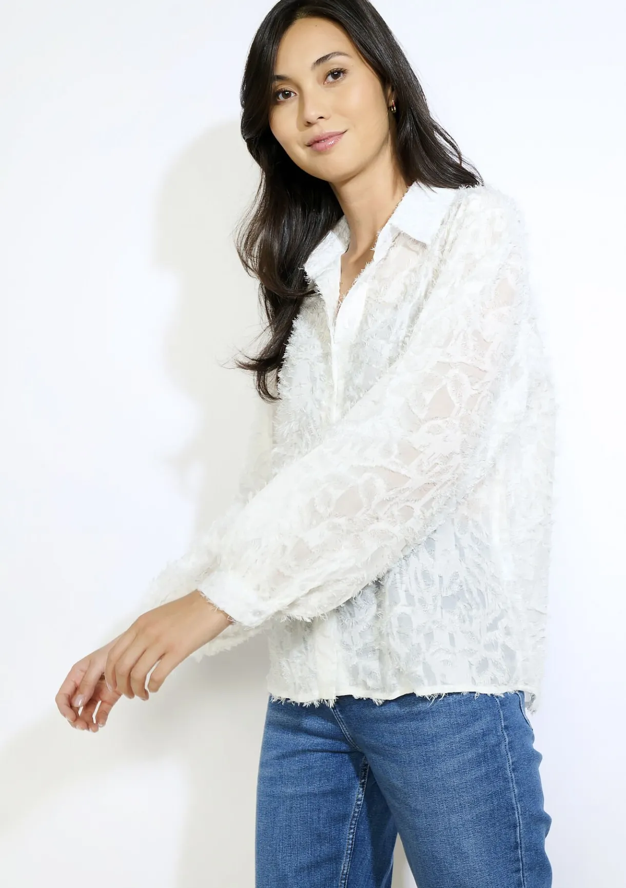 Lichtgewicht blouse met pluizige textuur en lange mouwen. Romantisch en verfijnd voor elke gelegenheid.