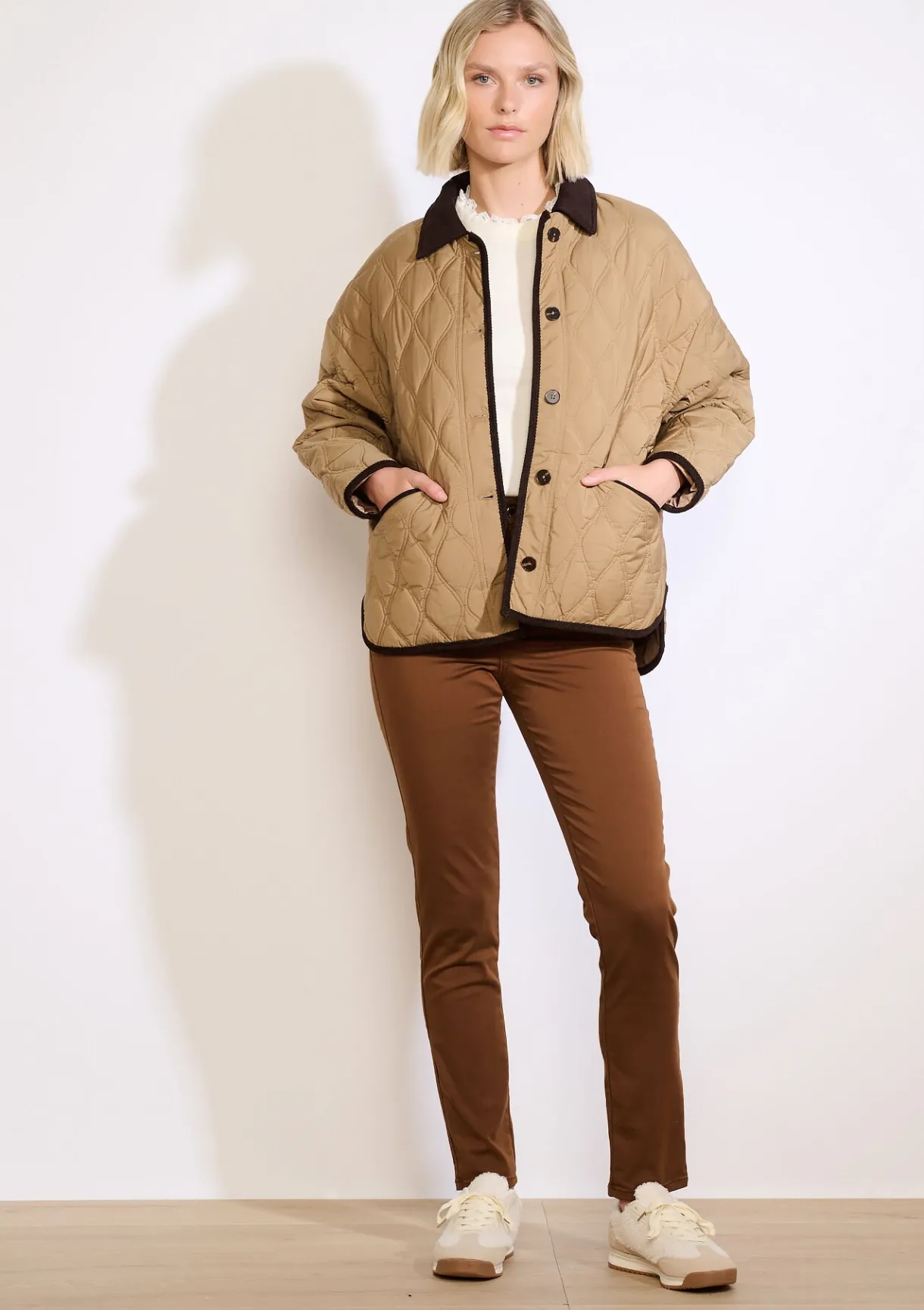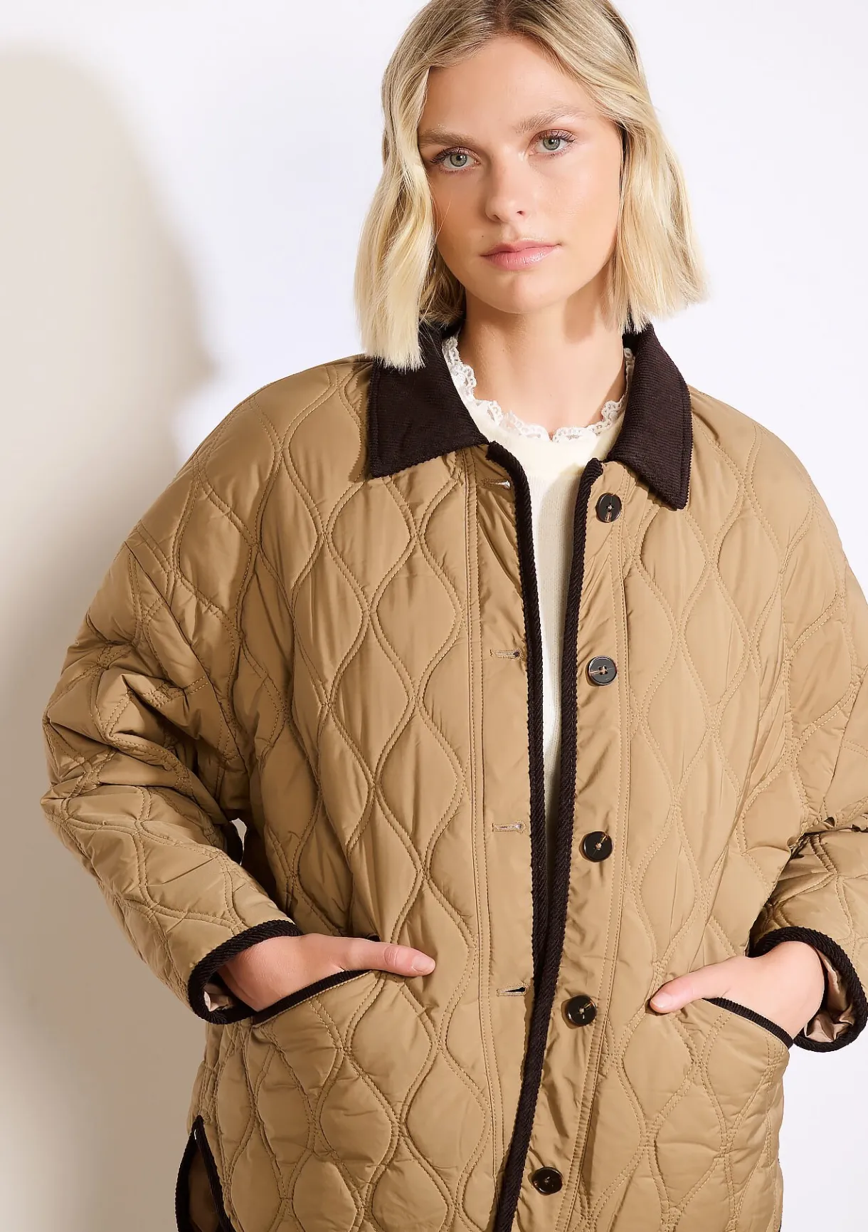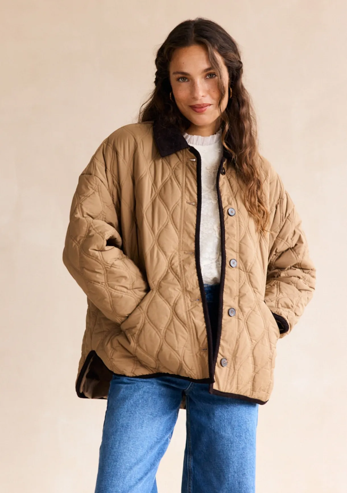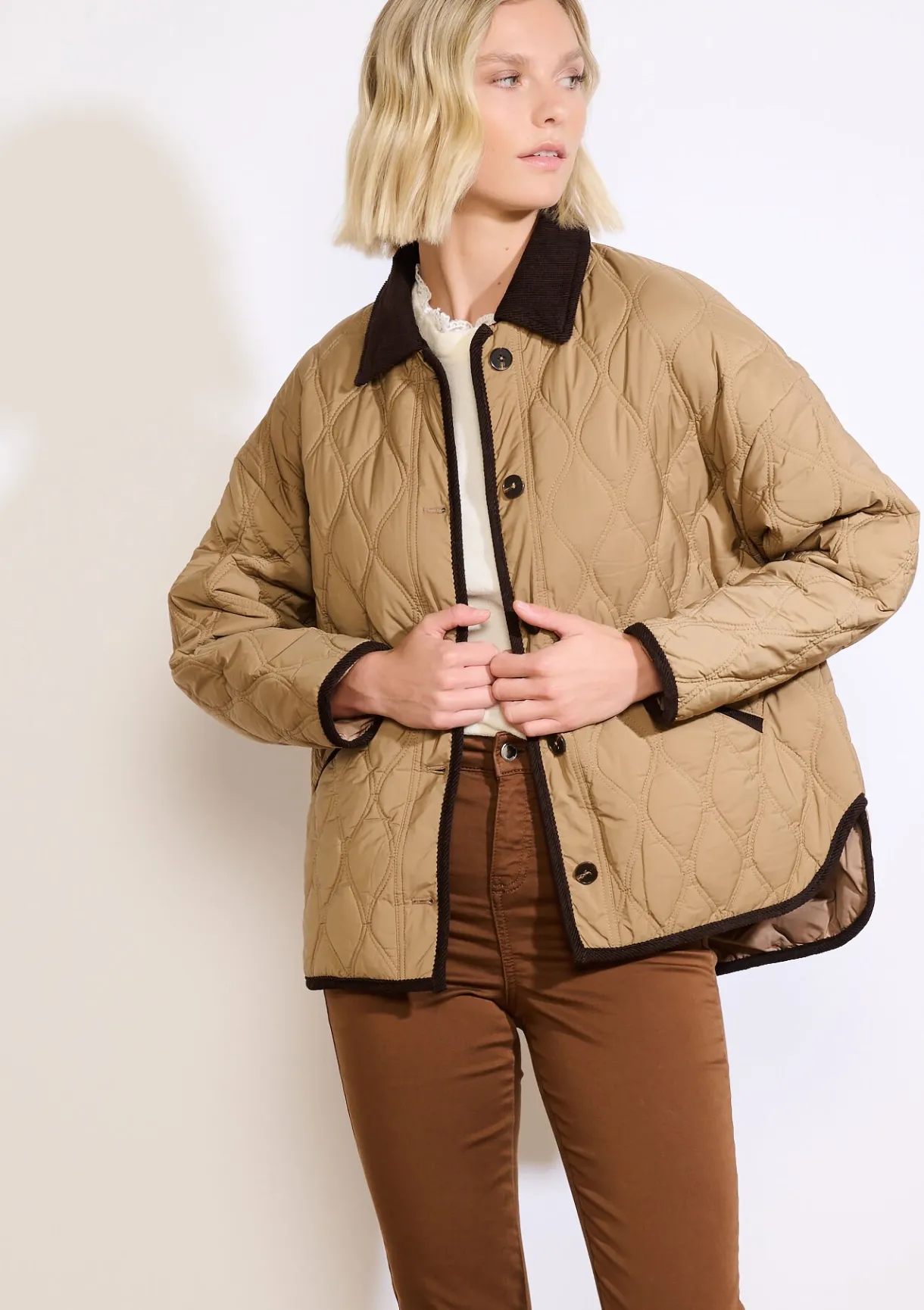 Gewatteerde warmte en retro-uitstraling komen samen in dit jack met ribfluwelen kraag. Een stijlvolle essential voor het tussenseizoen.
