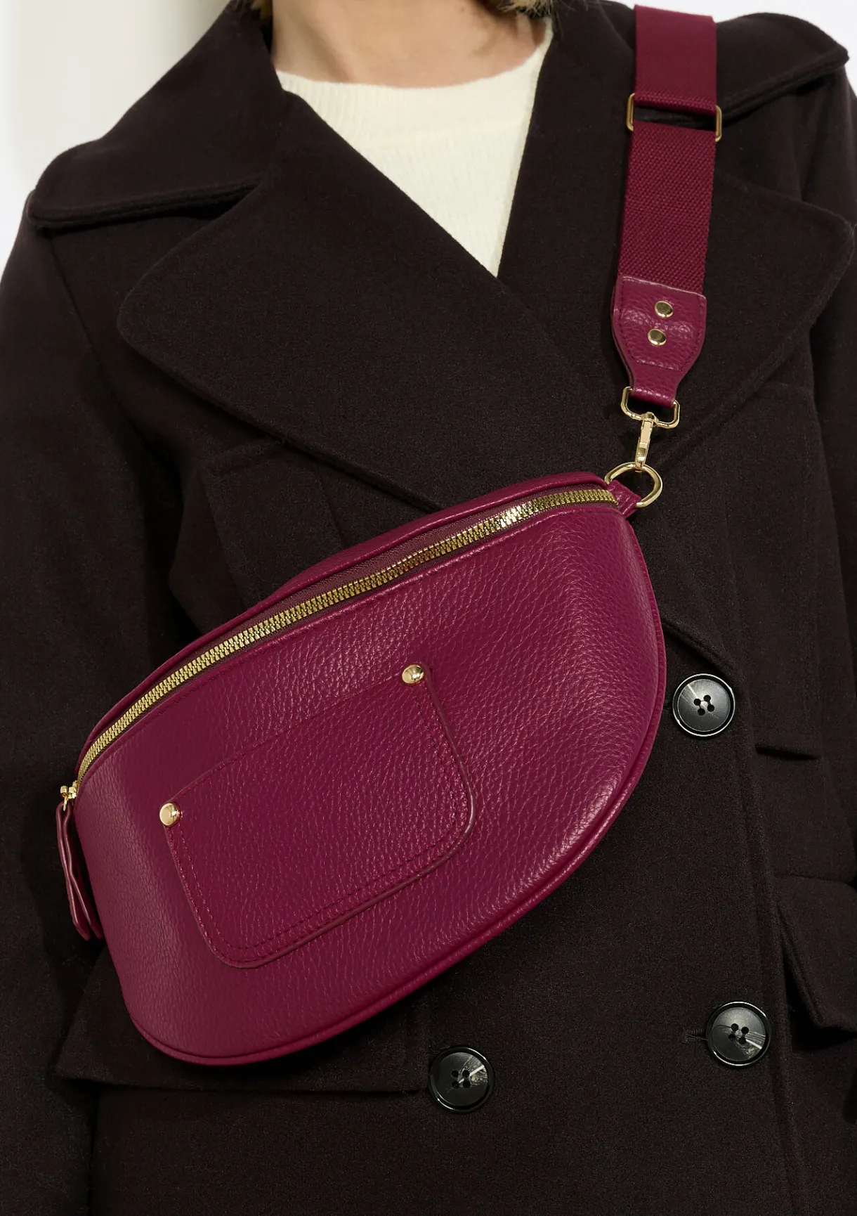Tijdloze look in generfd kunstleer. Met afneembare schouderriem.