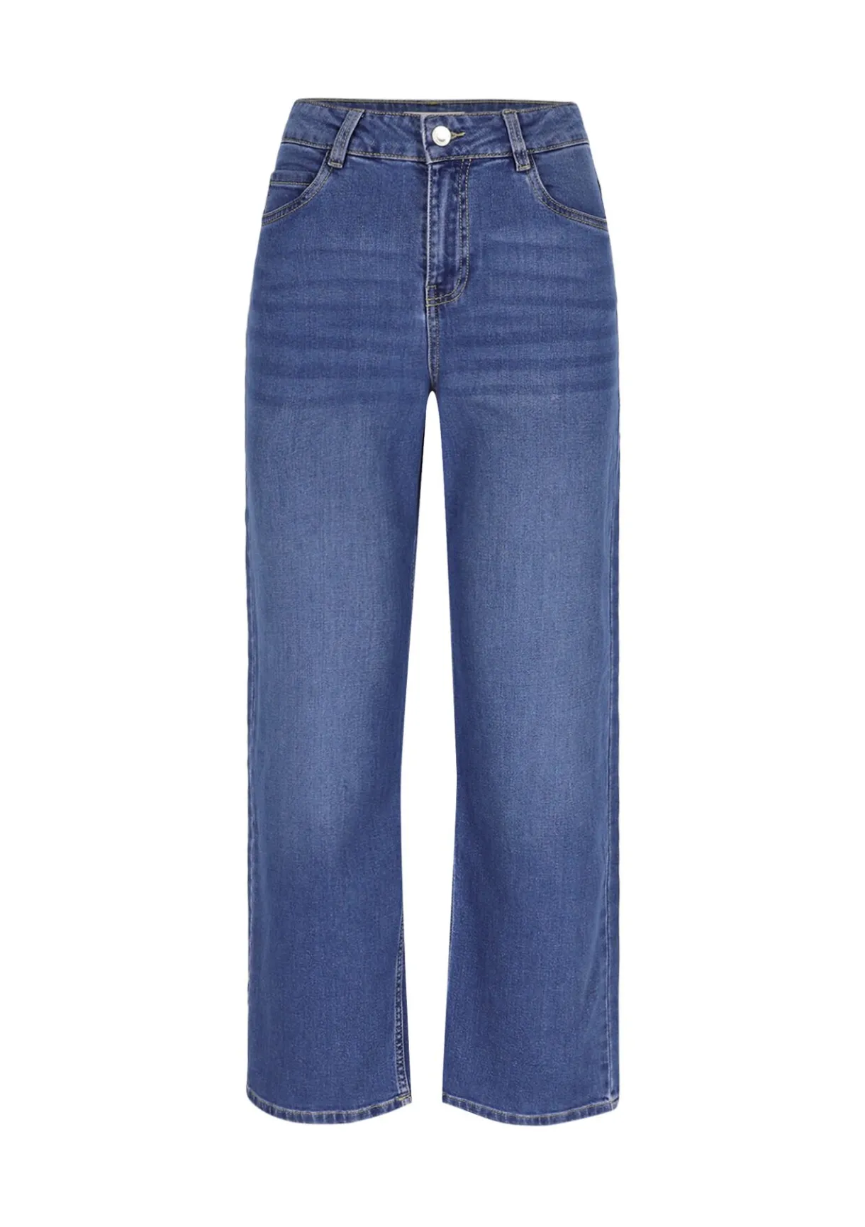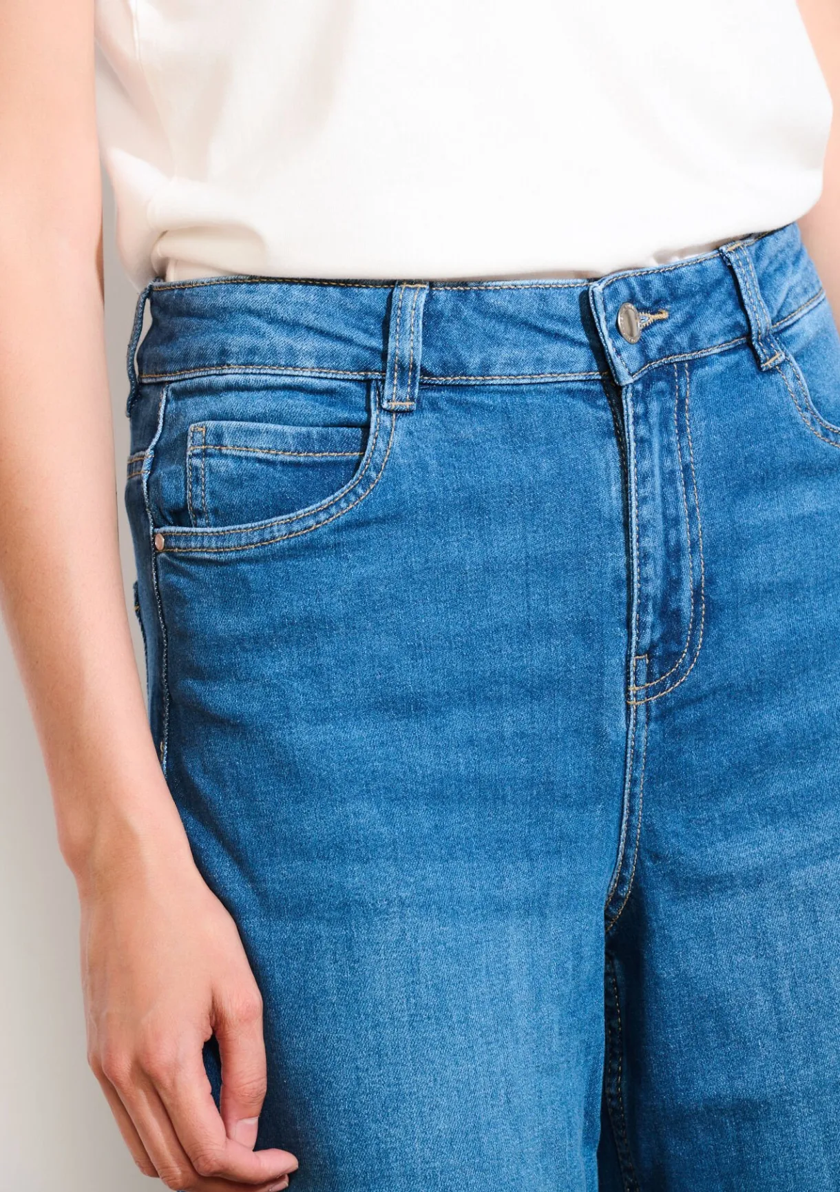 Jeans met hoge taille en wijde pijpen. Creëert een lange, moderne look met nonchalante charme.