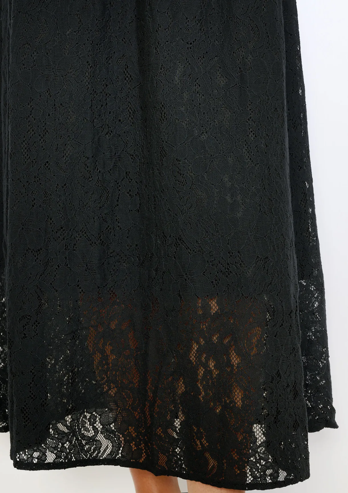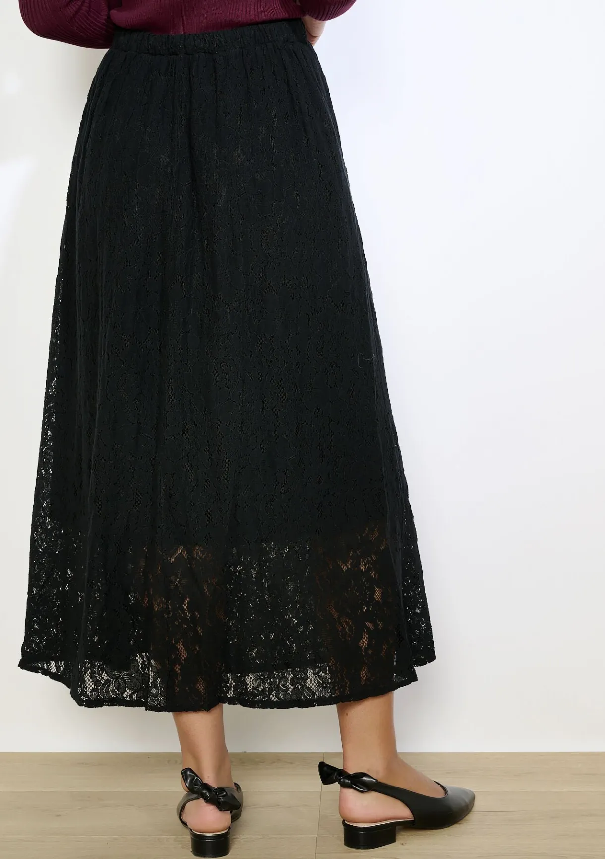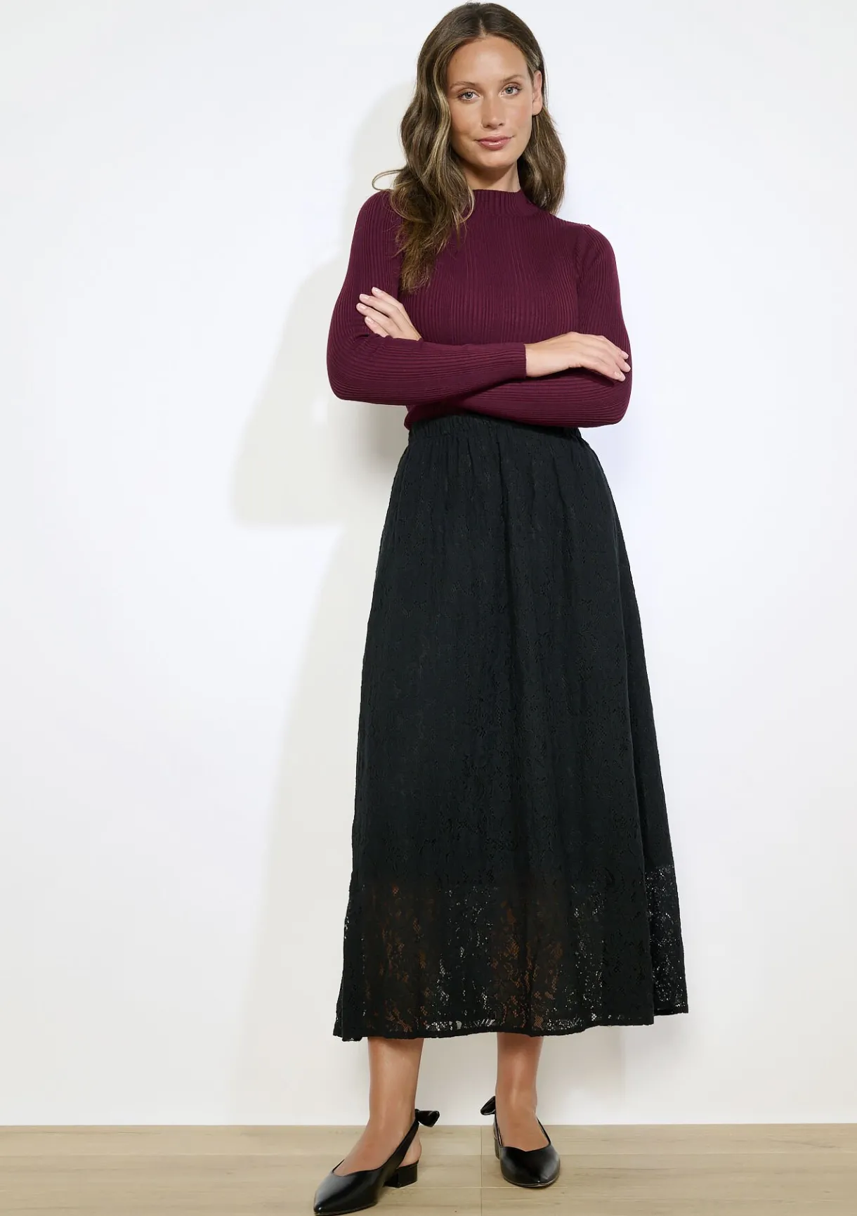 Een verfijnde kanten midi-rok voor een vrouwelijke en elegante uitstraling.