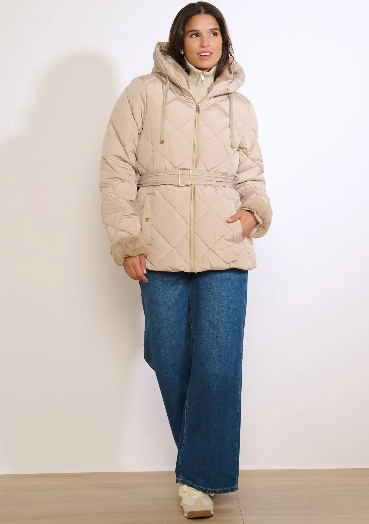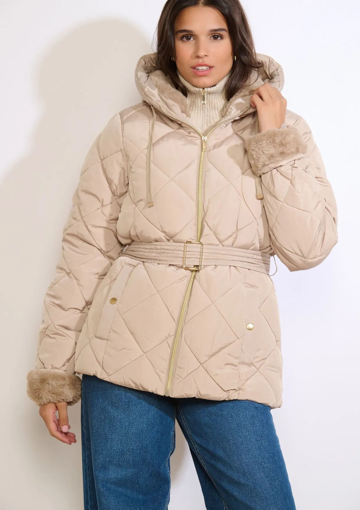 Een korte puffer met ceintuur en elegante afwerking. Perfect voor stijlvolle winterdagen met comfort.