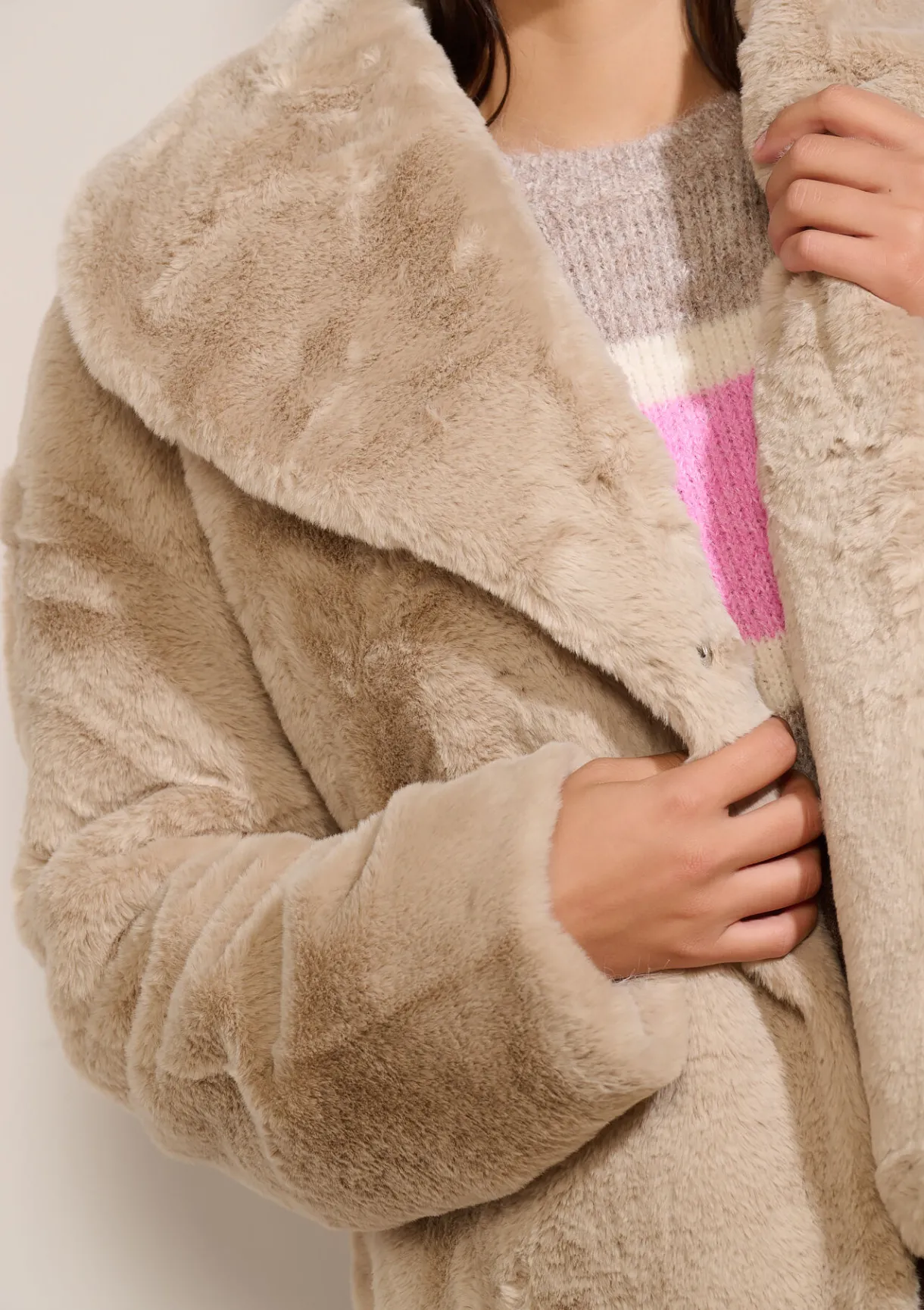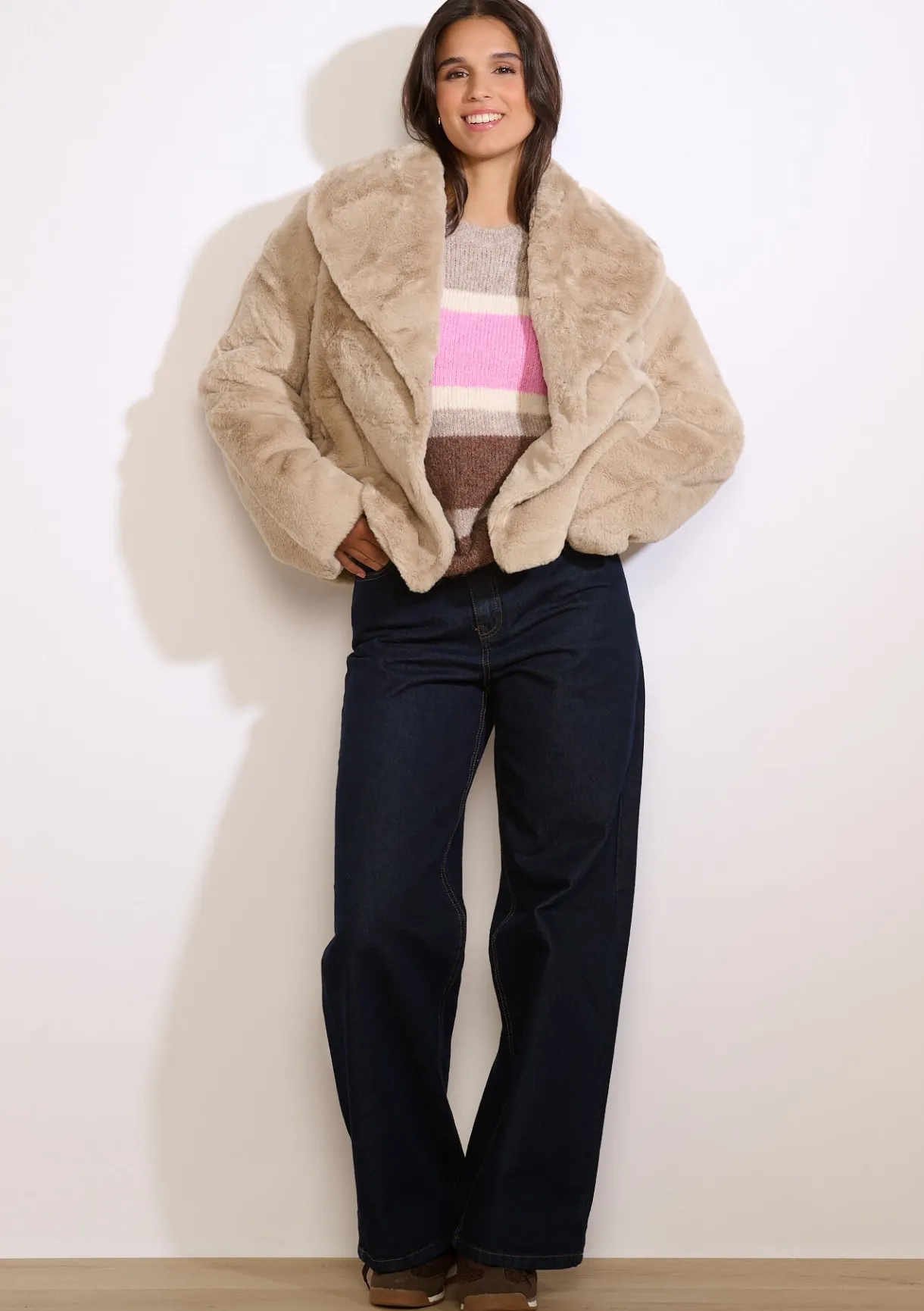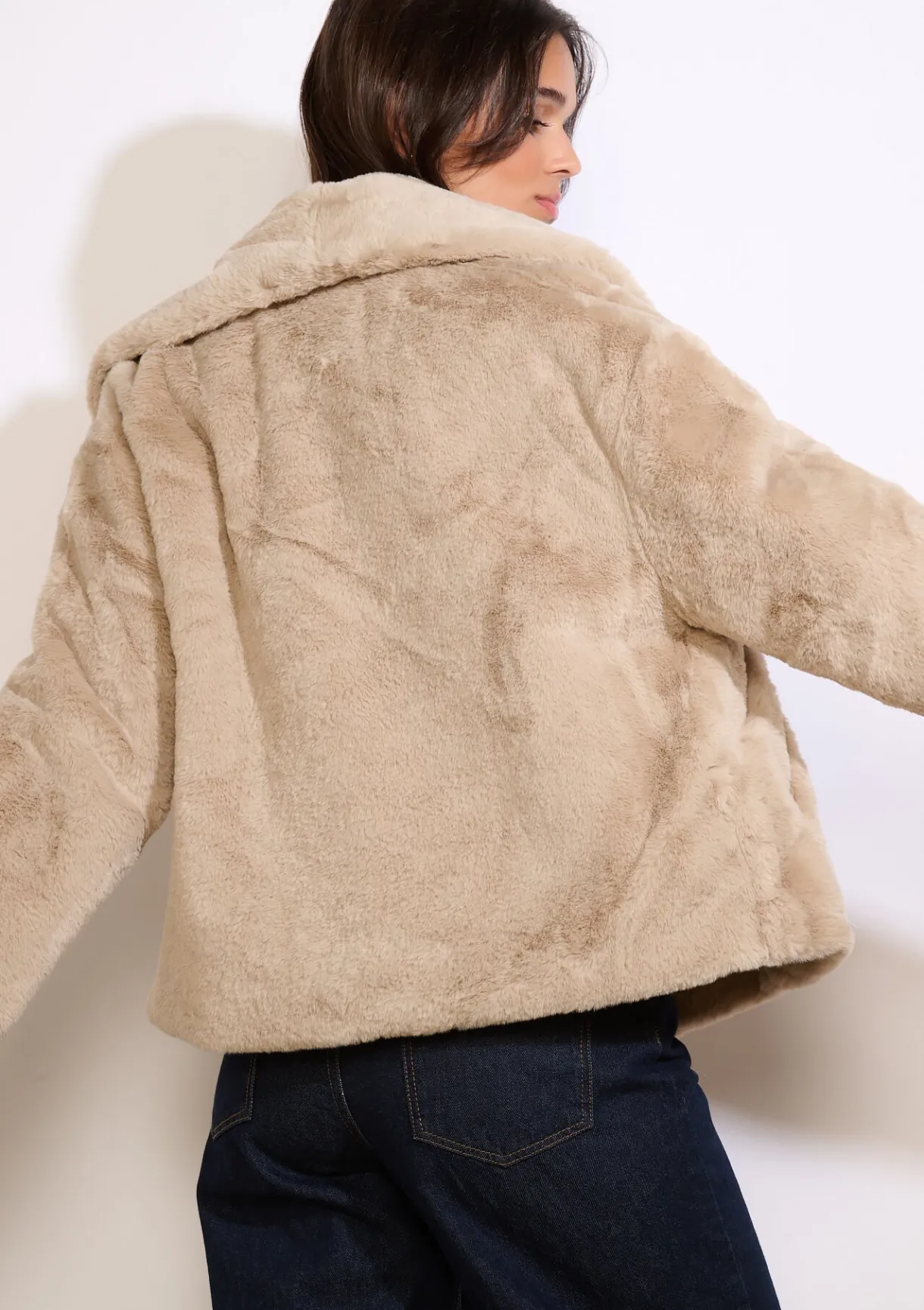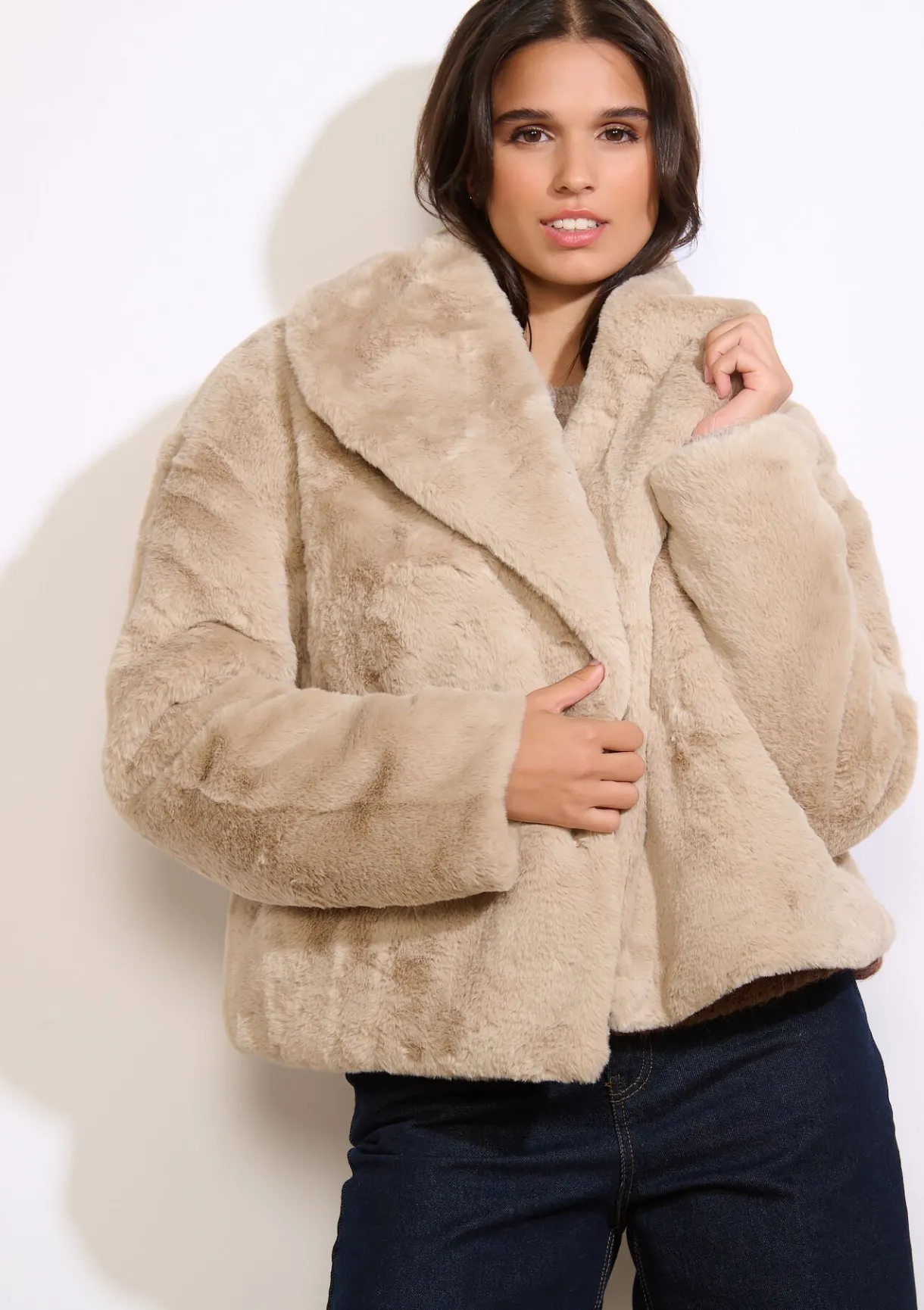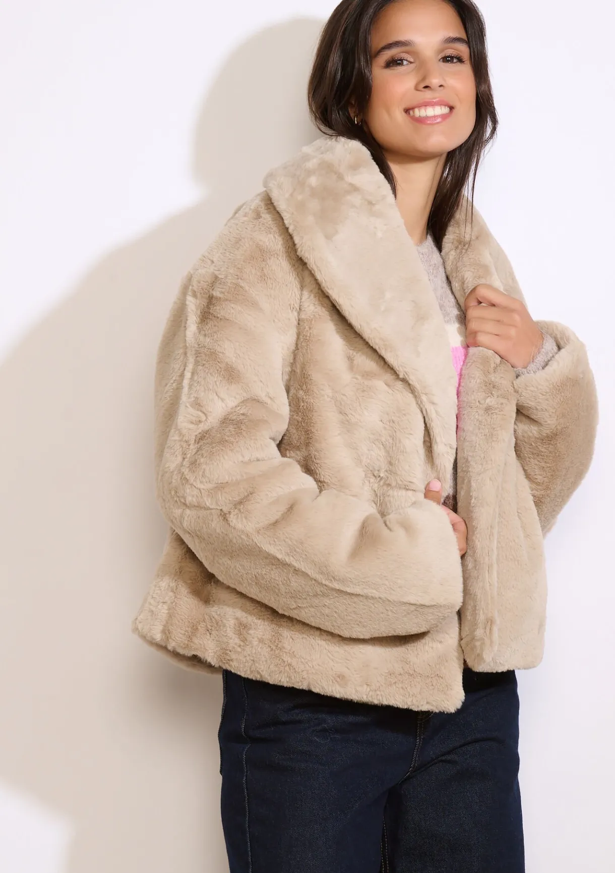 Zacht, warm en stijlvol. Deze korte jas in imitatiebont geeft elke look een luxueuze flair voor koude dagen.
