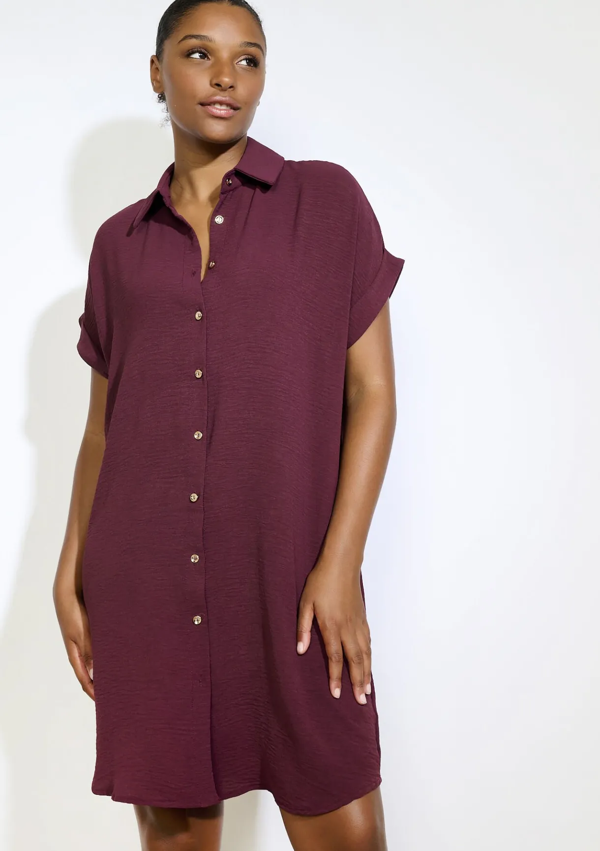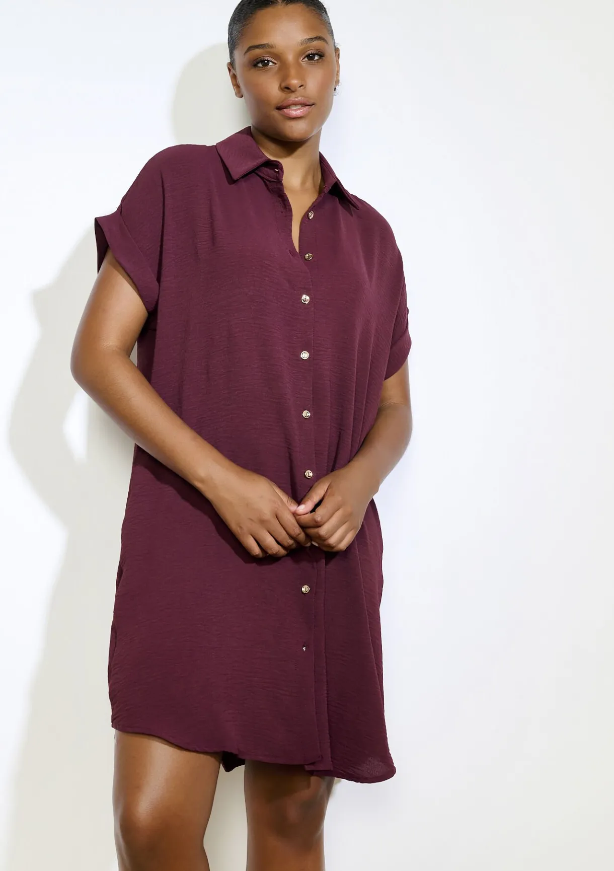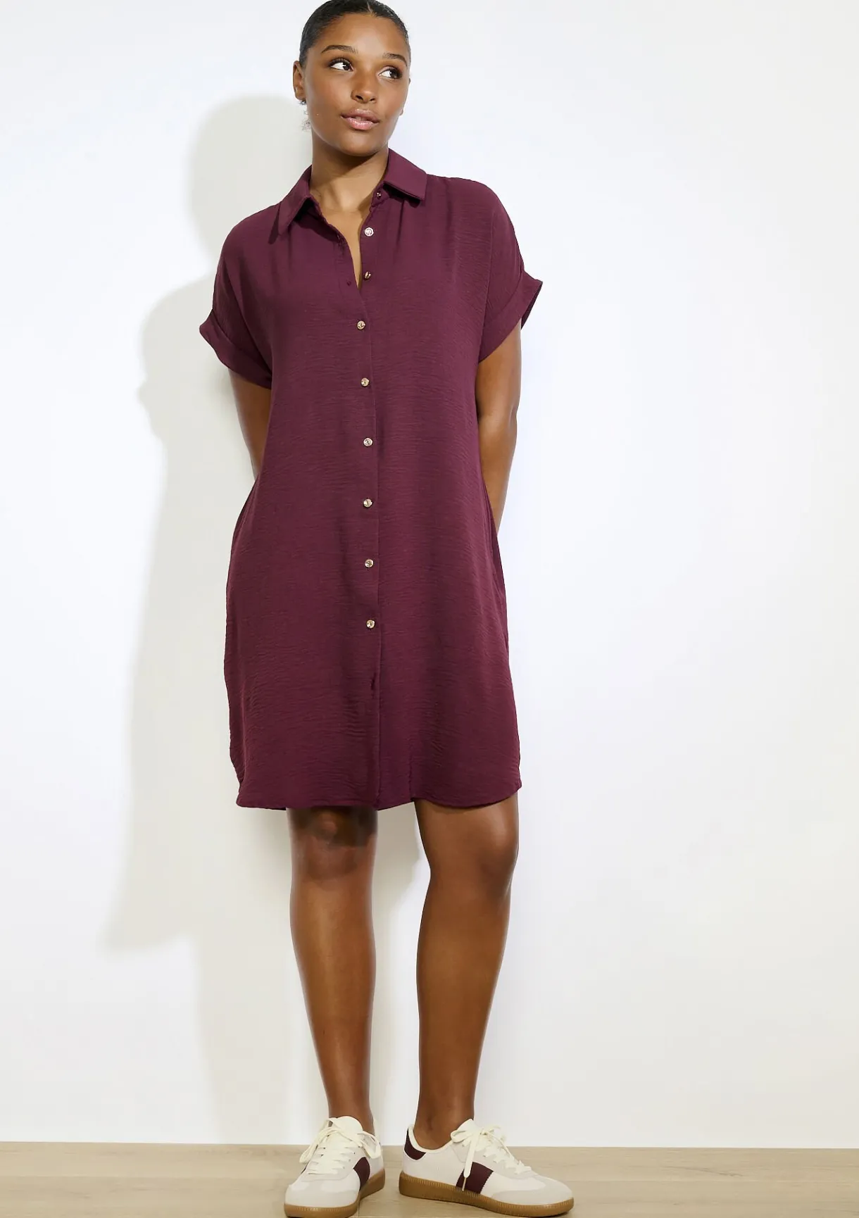 Een korte overhemdjurk met knopen en relaxte pasvorm, voor een stijlvolle, casual stadslook.