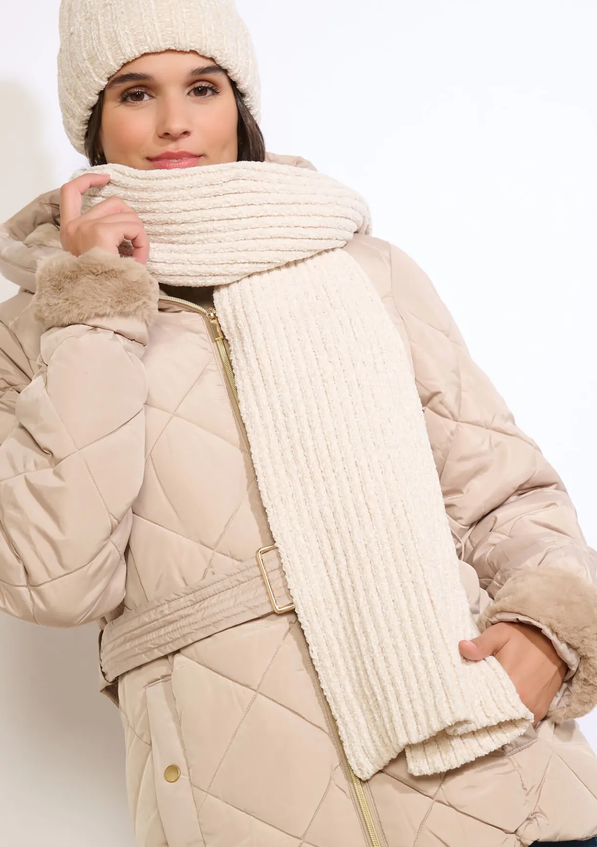 Rijkelijk zacht en heerlijk warm: deze geribde sjaal brengt comfort en klasse samen.