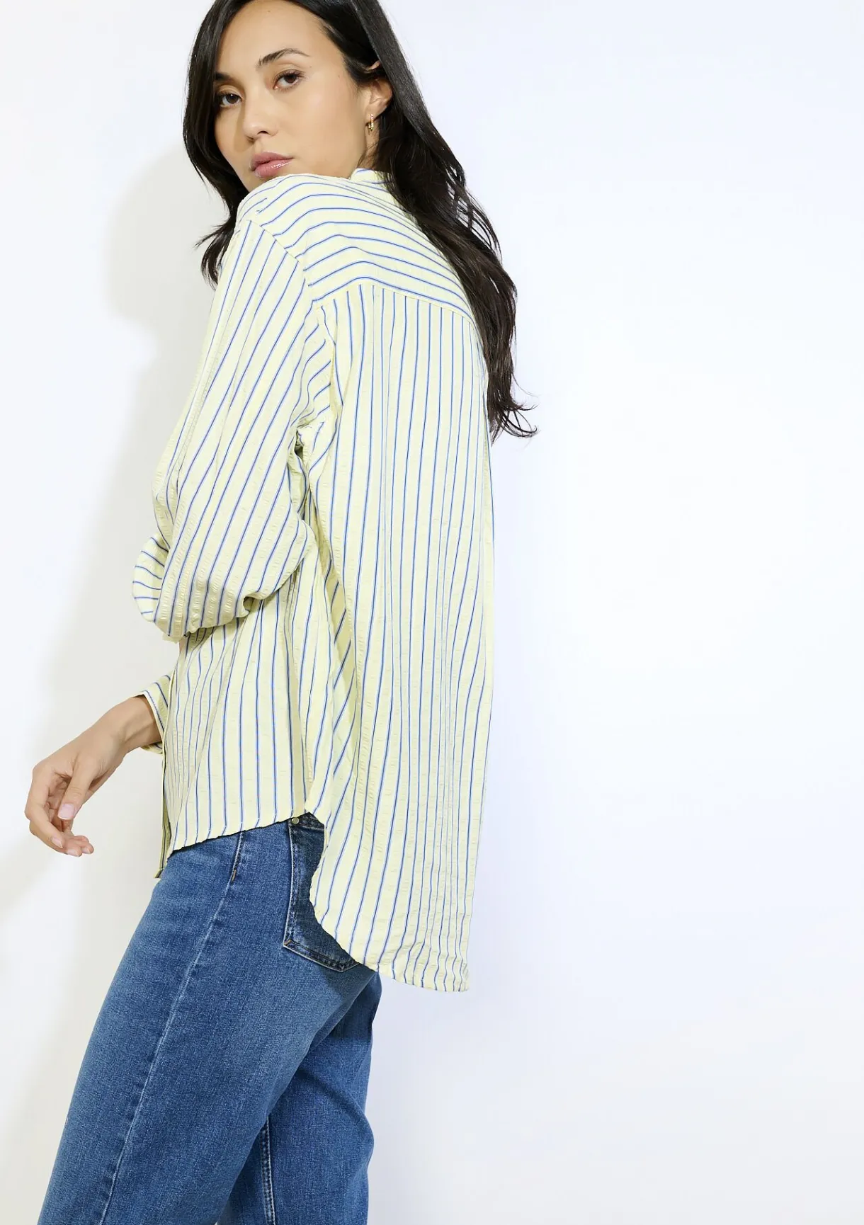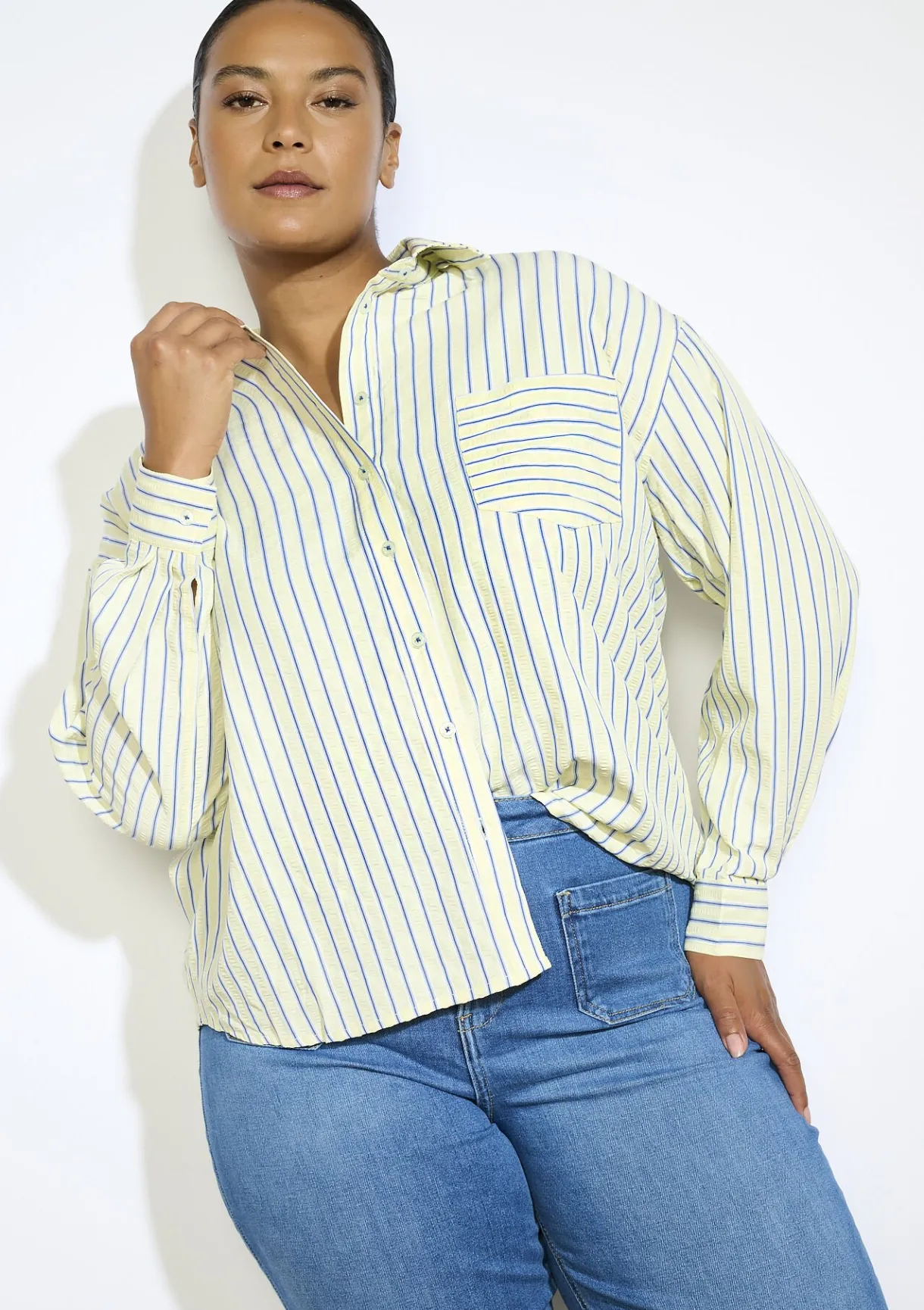 Deze soepelvallende blouse met strepen straalt nonchalante elegantie uit en laat zich moeiteloos stylen.