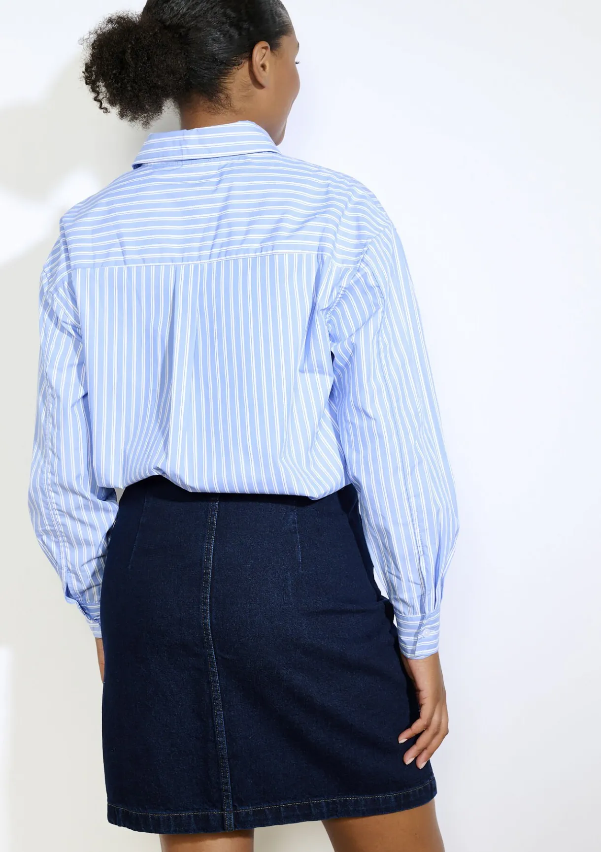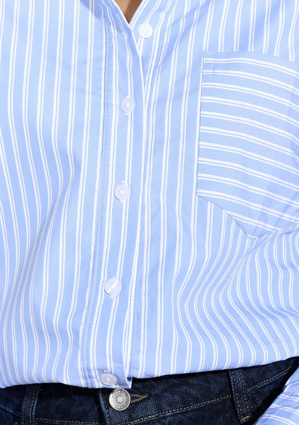 Een oversized hemd met fijne strepen. De soepele, androgyne snit geeft elke outfit een eigentijdse twist.