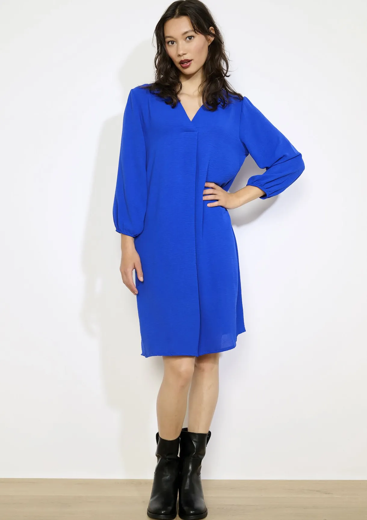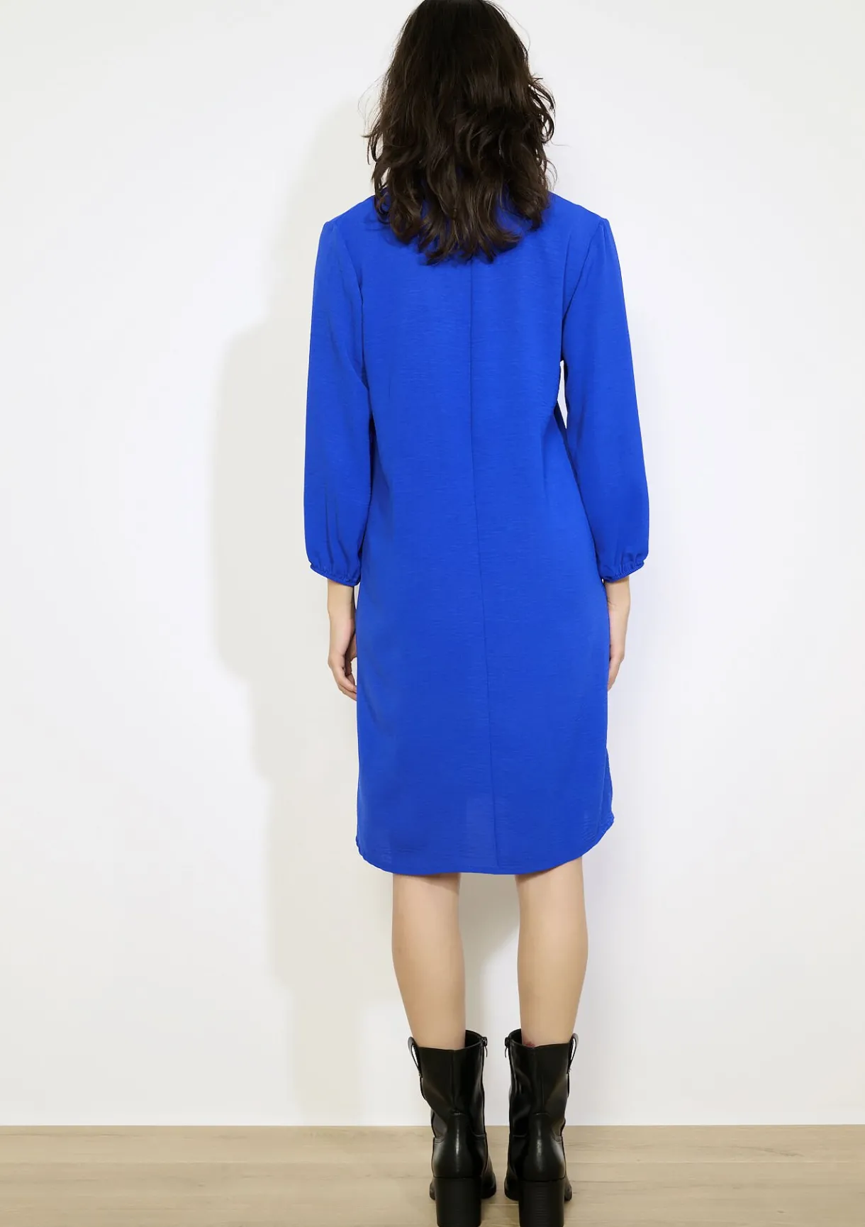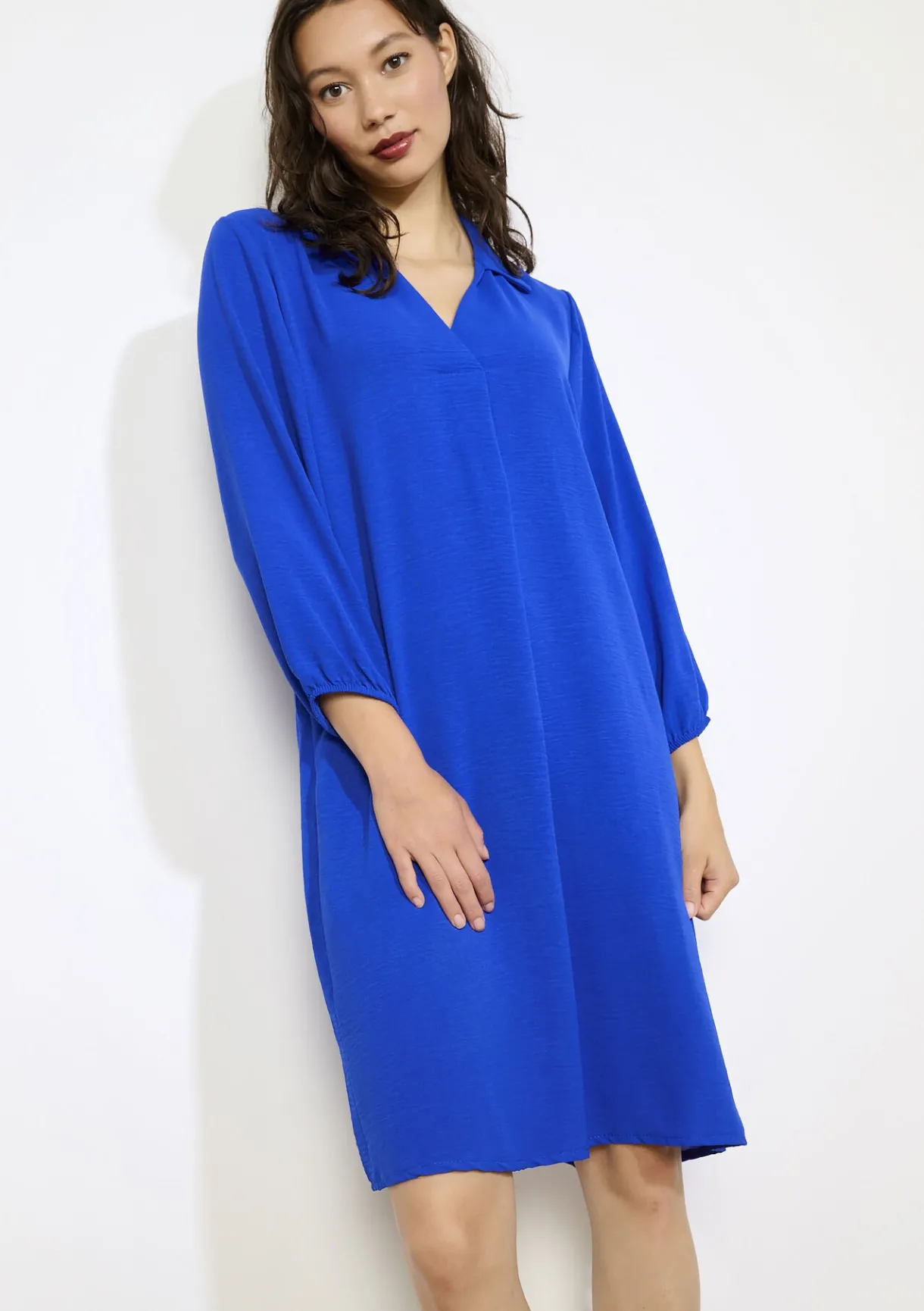 Deze recht gesneden polo-jurk met kraag en 3/4 mouwen straalt moderne eenvoud en verfijning uit.