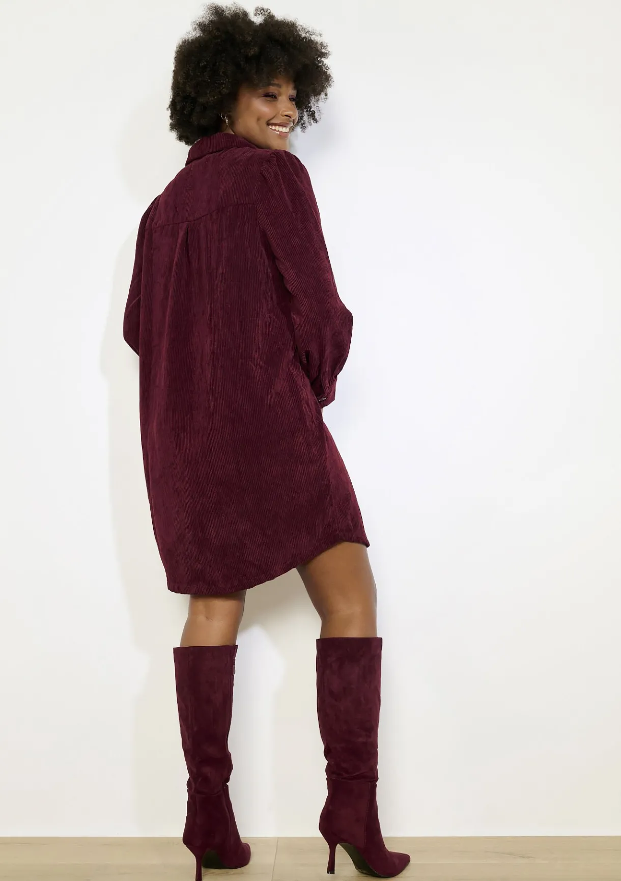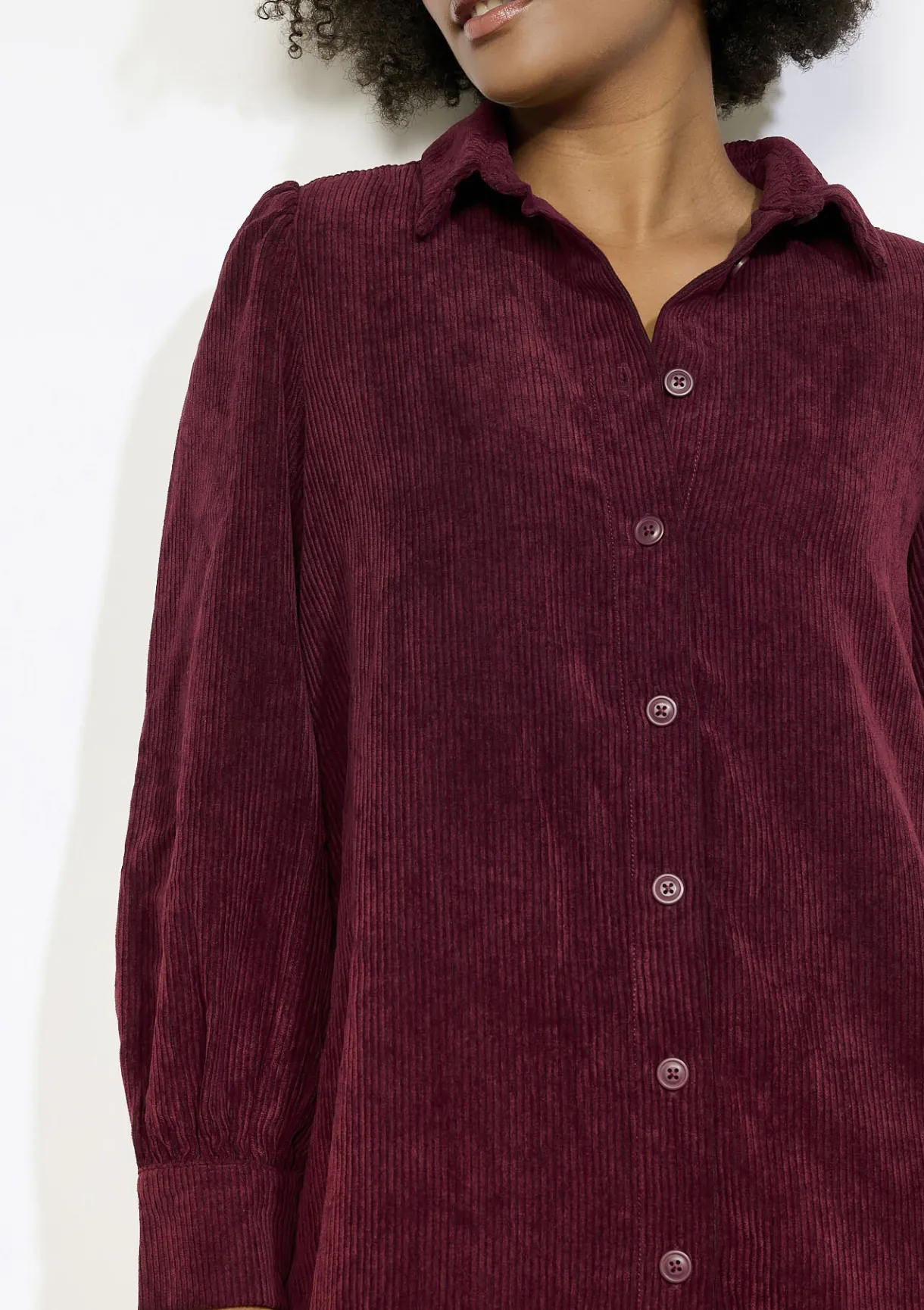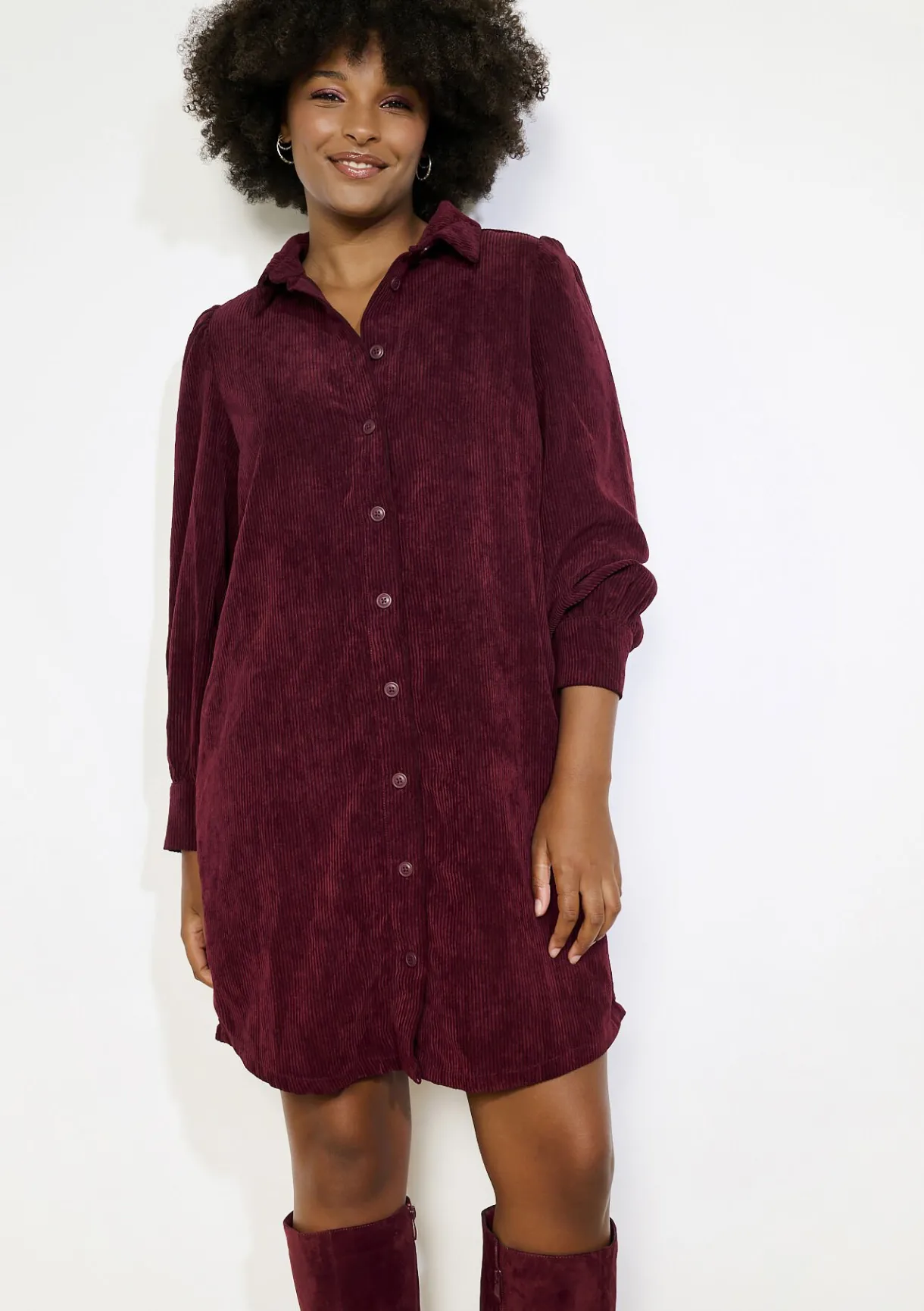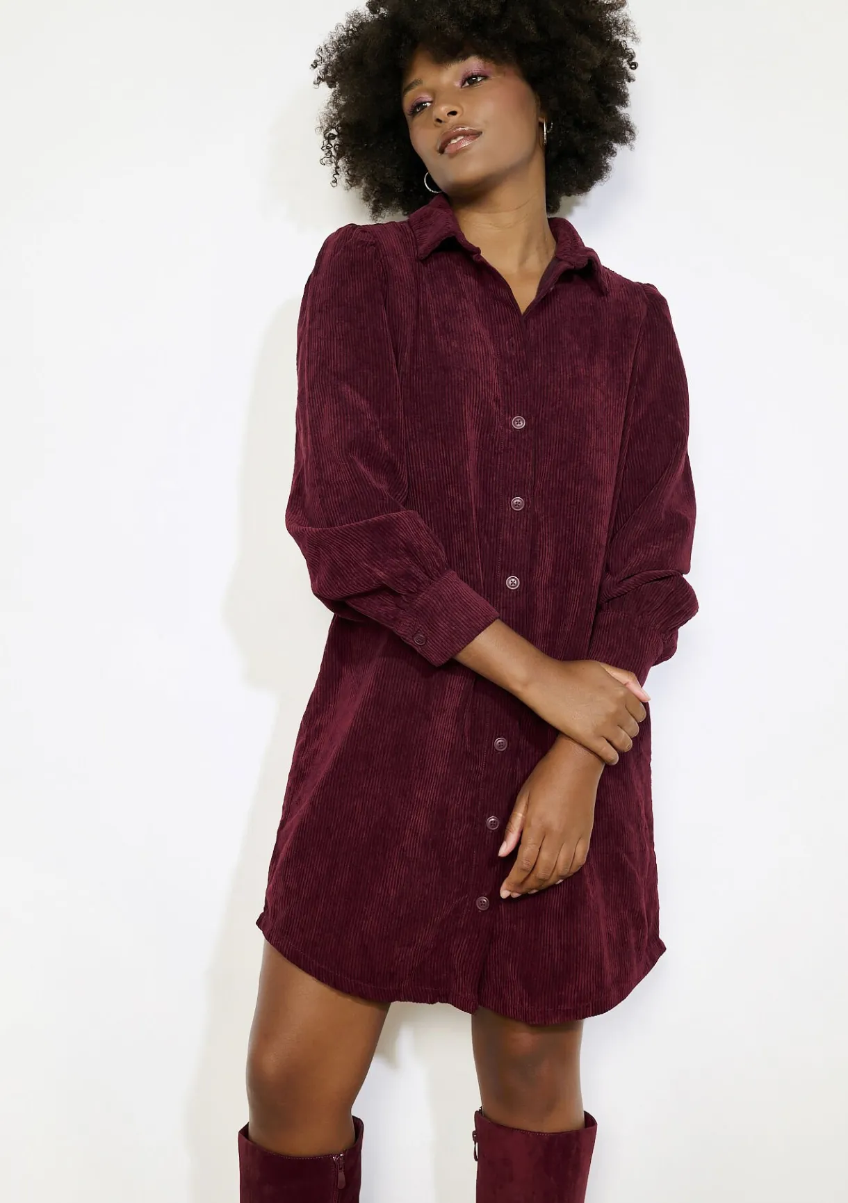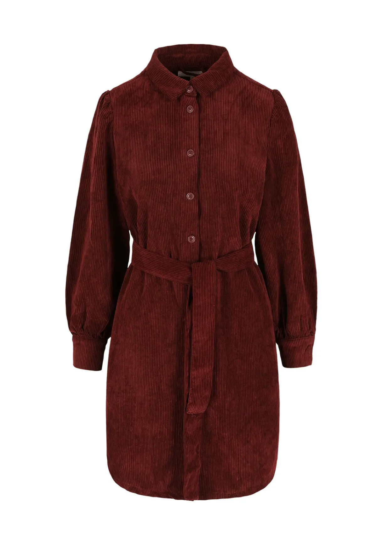 Een relaxte overhemdjurk in ribfluweel voor een moeiteloze, stijlvolle uitstraling. Ideaal om te combineren in het tussenseizoen.