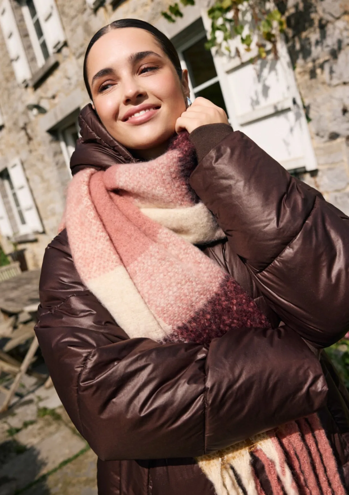 Met onregelmatige strepen en een zacht oppervlak geeft deze sjaal je outfit een grafische twist.