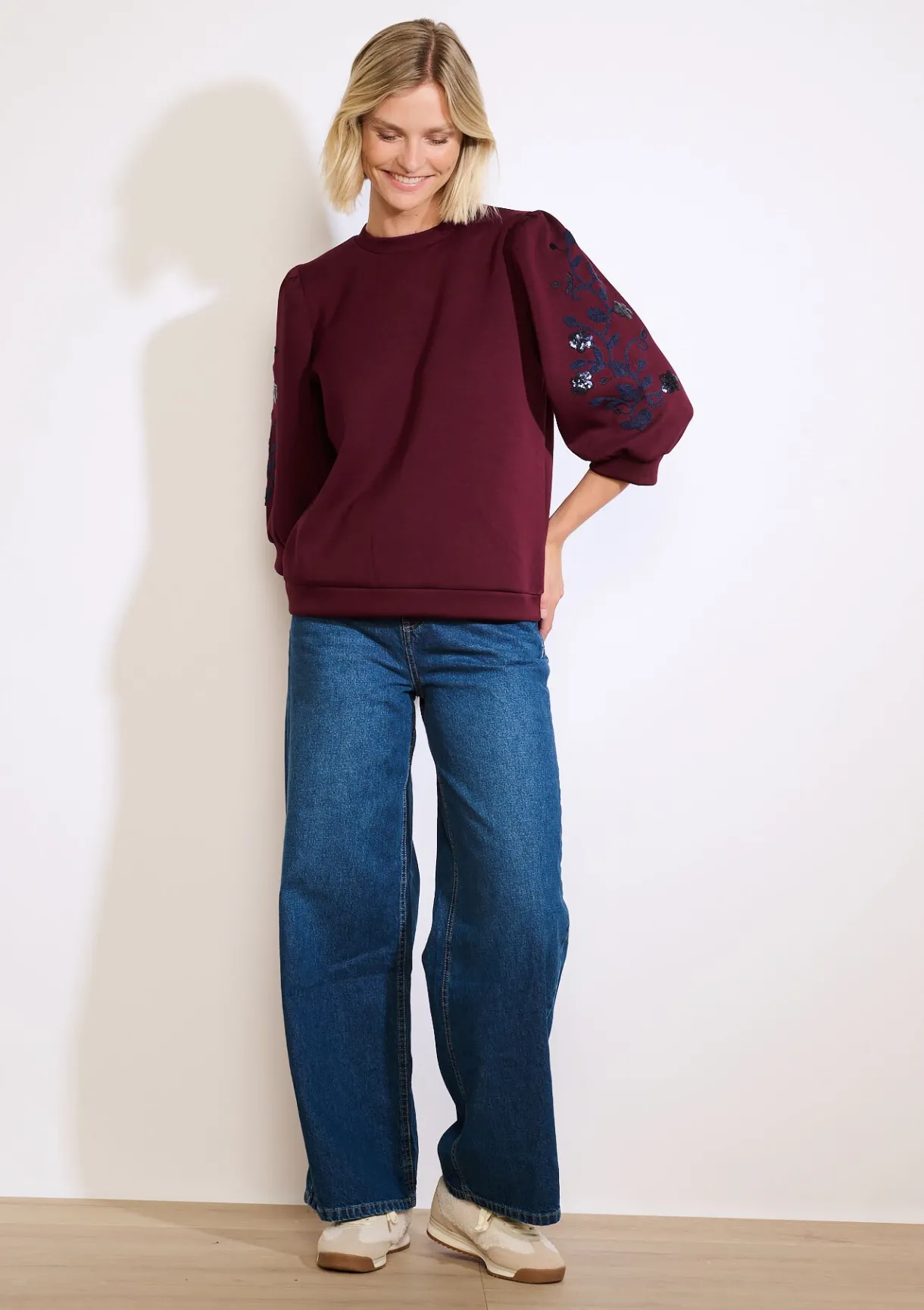 Casual met een sprankel: deze sweater combineert verfijnde borduursels met subtiele pailletten voor een stijlvolle twist.