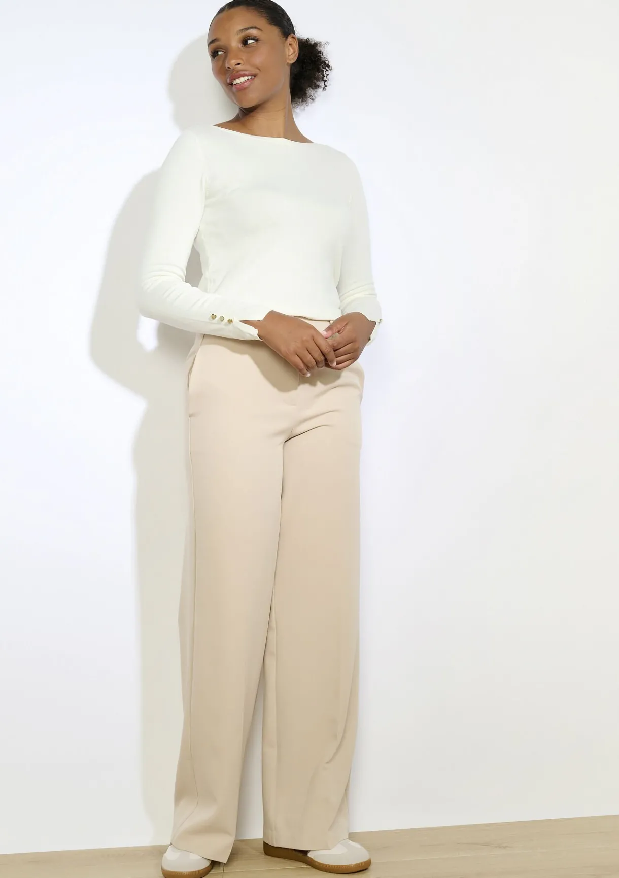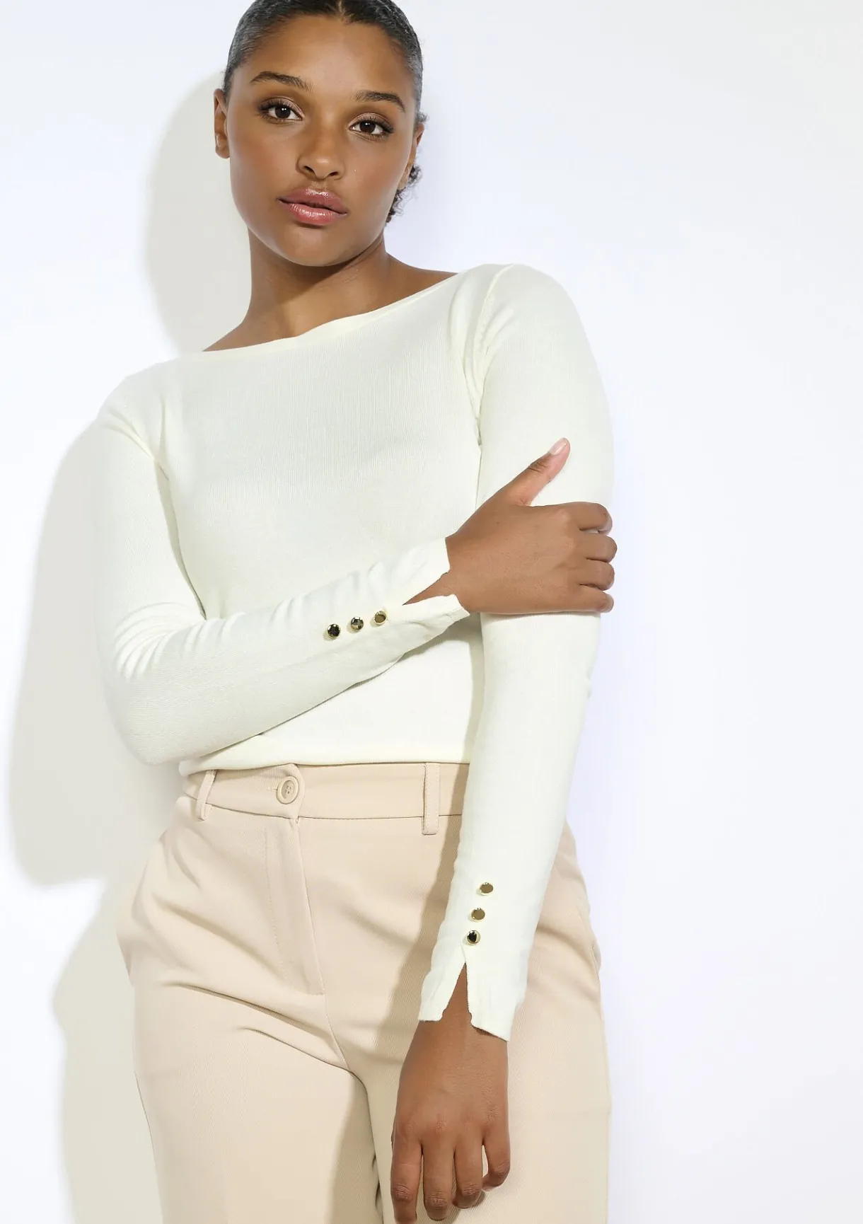 Trui met lange mouwen en gouden knopen aan de manchetten. Vrouwelijke snit en verfijnde details voor een elegante, dagelijkse look.