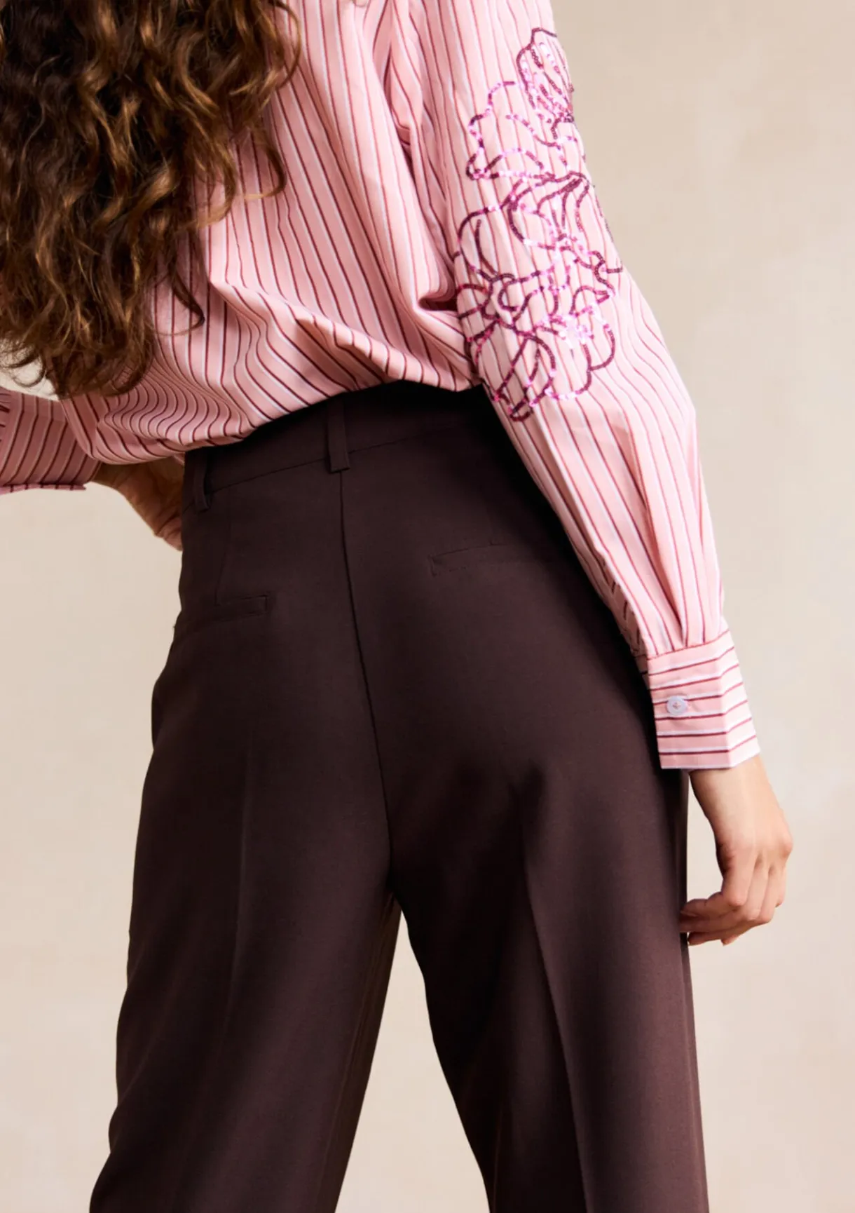 Een rechte, vloeiende snit met hoge taille die het silhouet verlengt. Vrouwelijk en stijlvol tot in de puntjes.