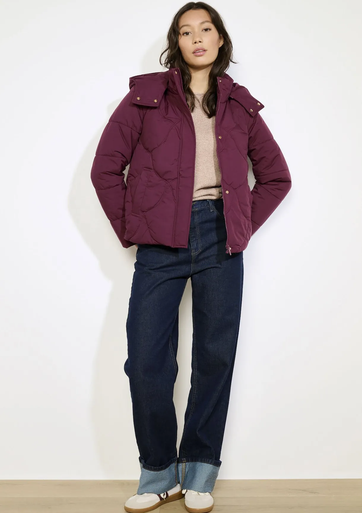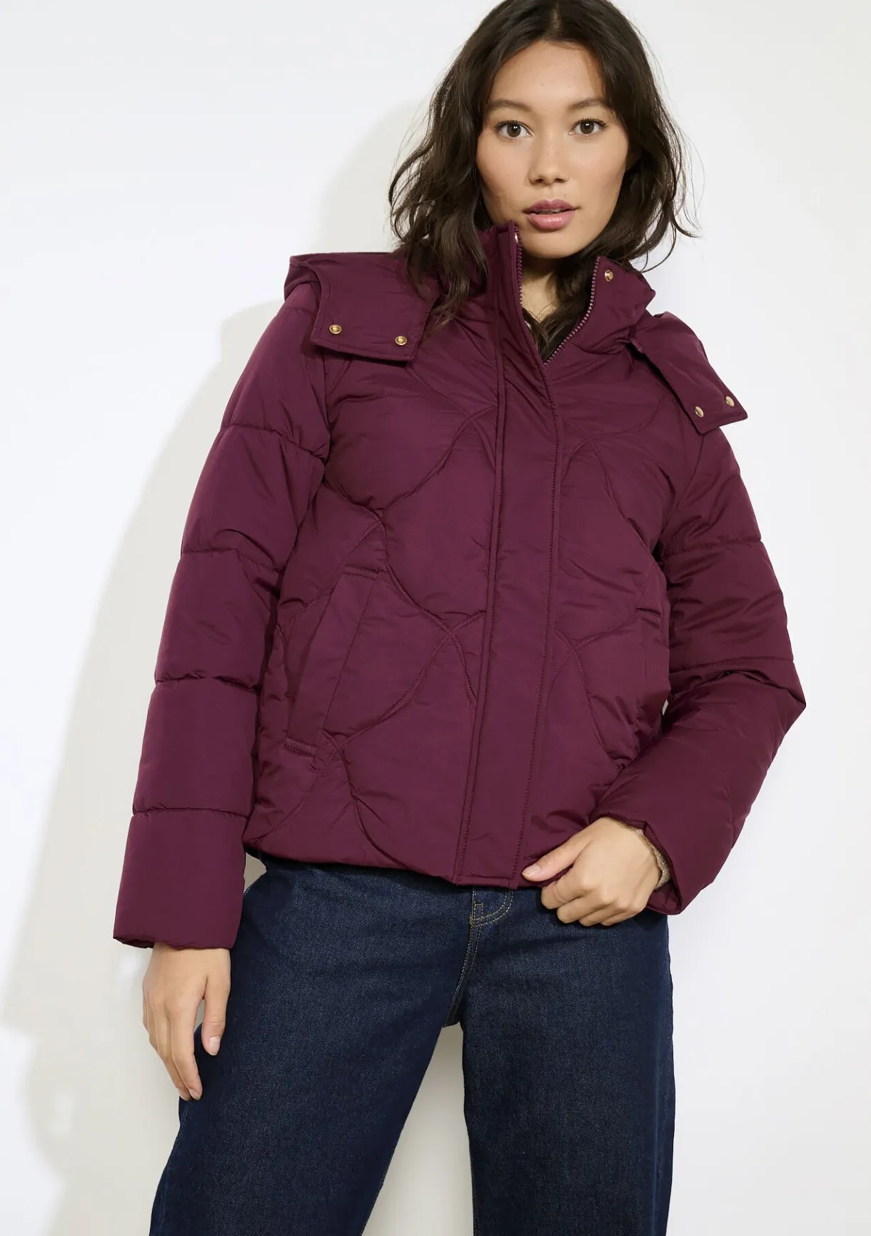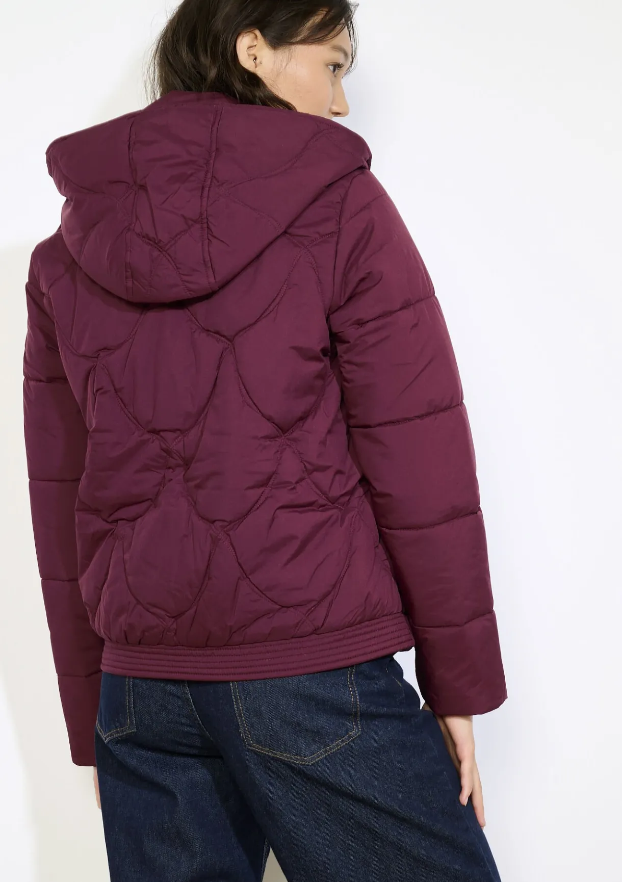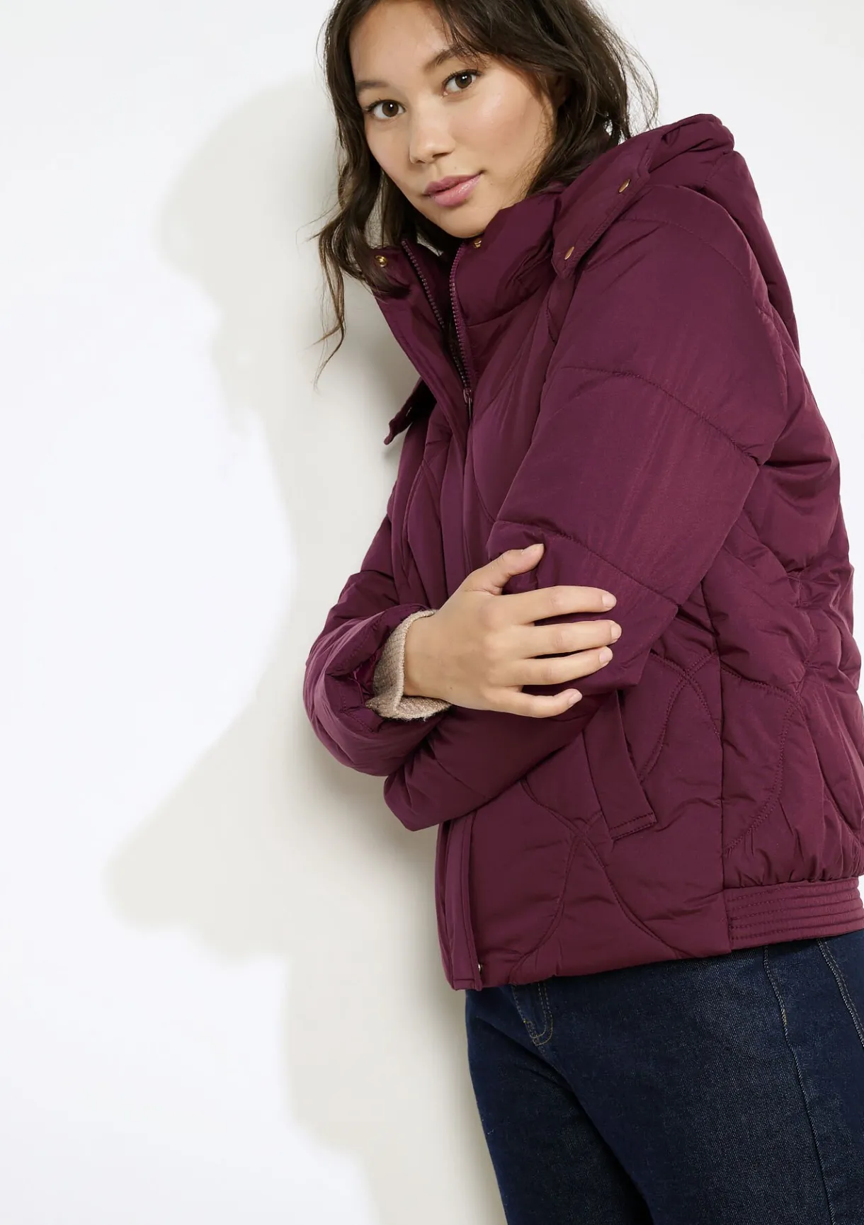 Warme gewatteerde bomber met zachte voering en comfortabele capuchon. Grafische stiksels zorgen voor een eigentijdse uitstraling.