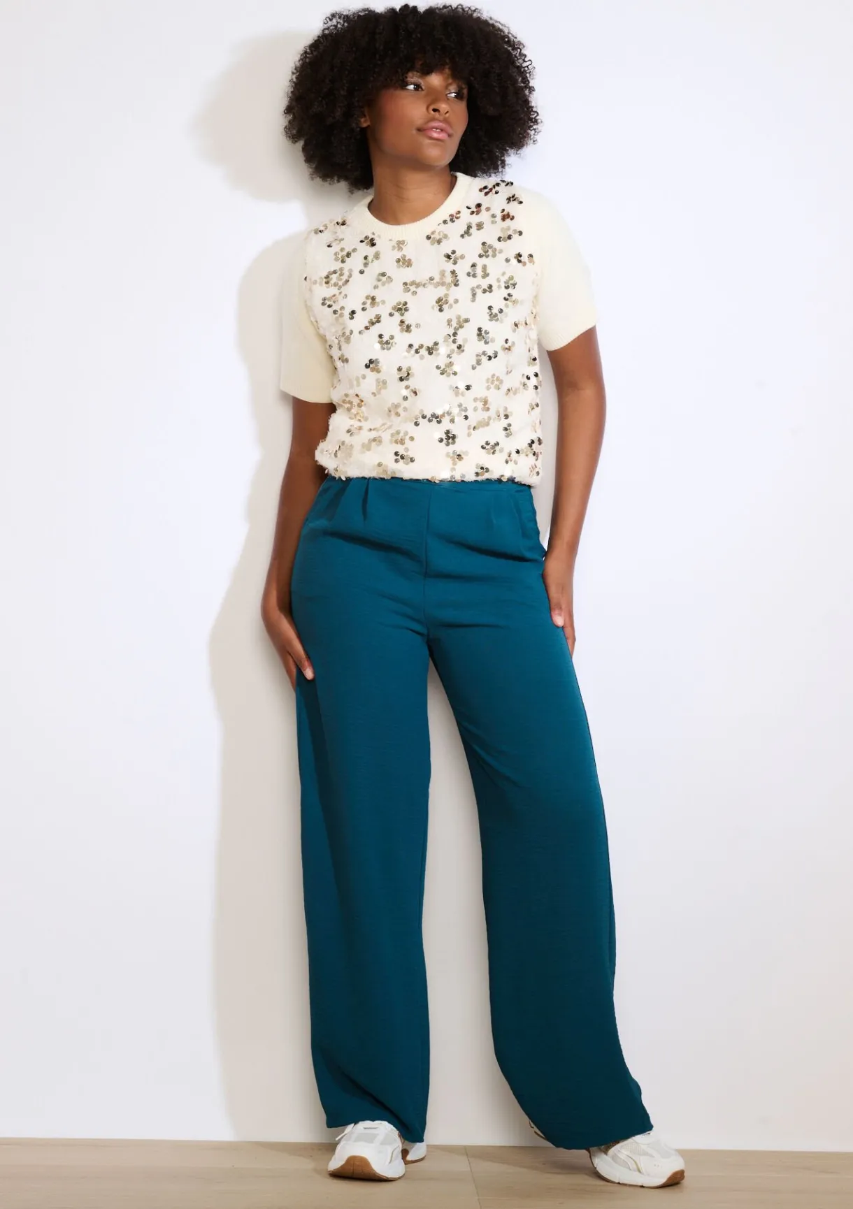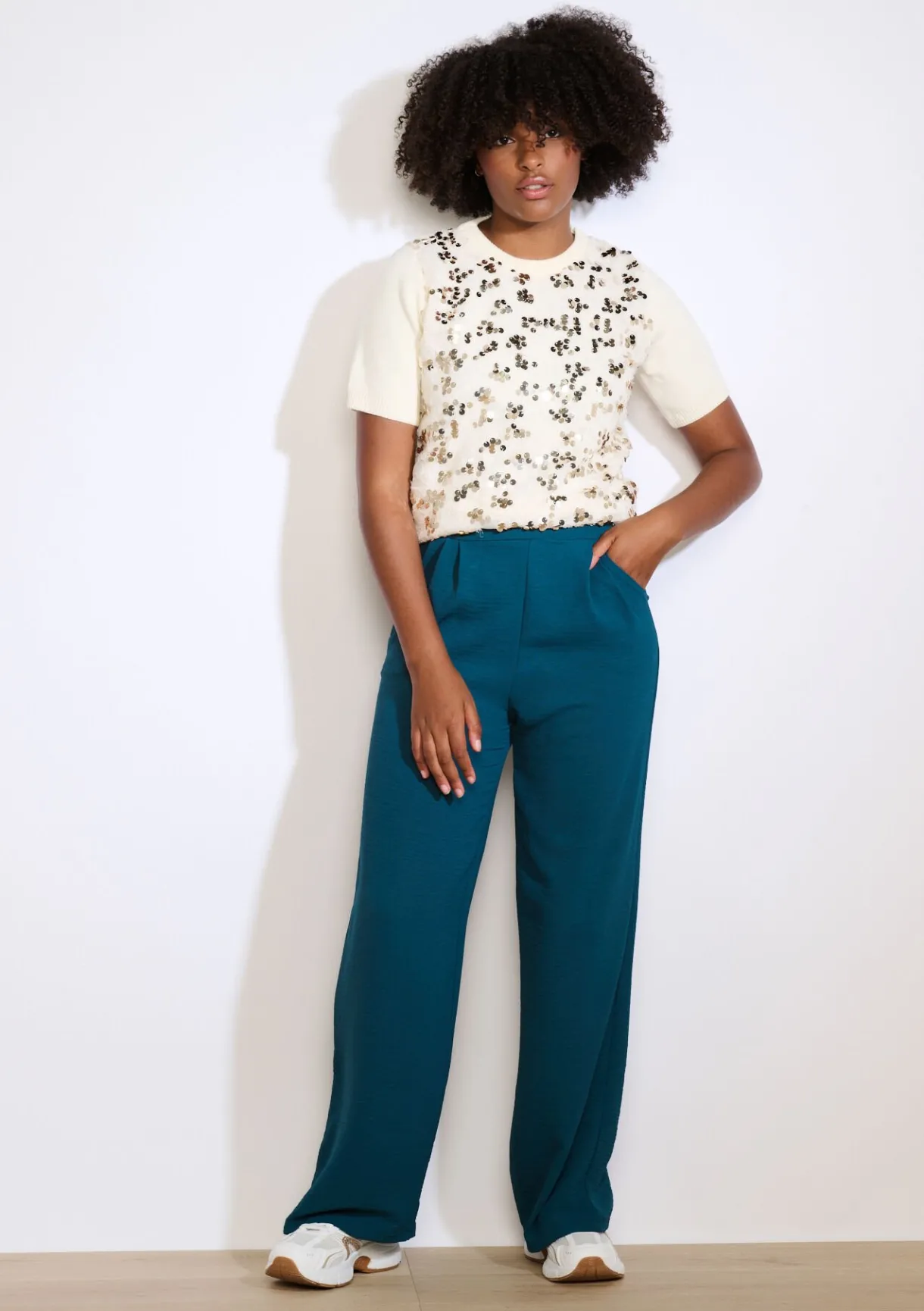 Een wijde, vloeiende broek, ideaal voor een chique maar comfortabele look.