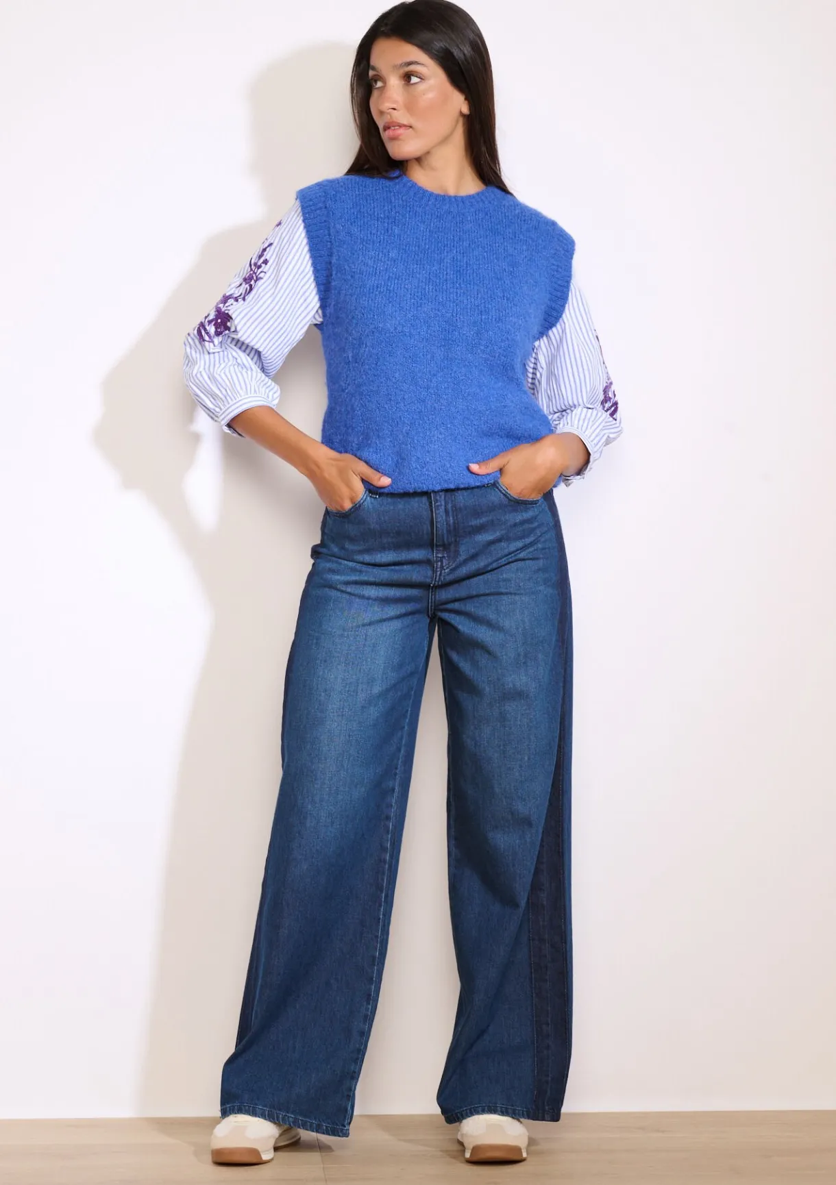 Deze mouwloze trui combineert een stoere textuur met een recht model – tijdloos met een moderne twist.