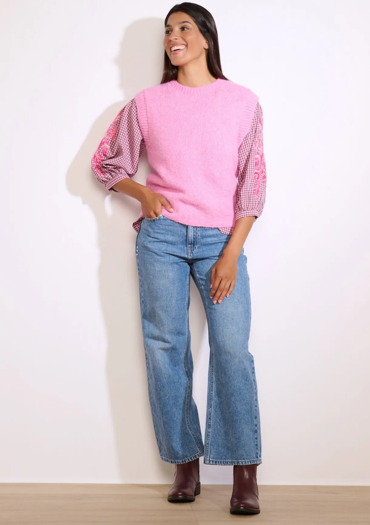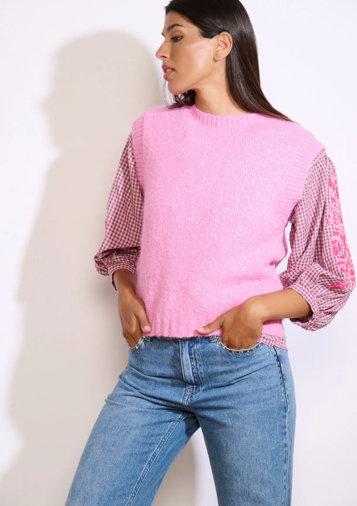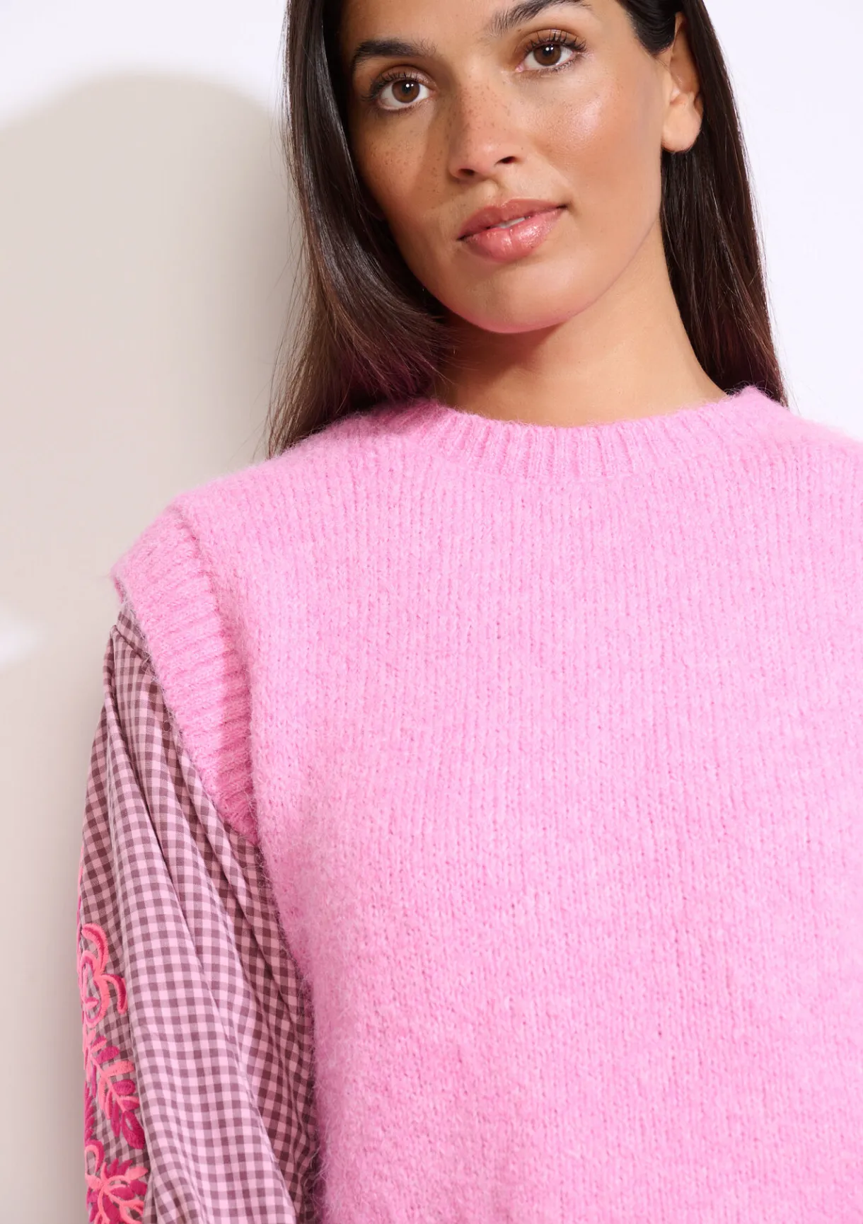 Deze mouwloze trui combineert een stoere textuur met een recht model – tijdloos met een moderne twist.