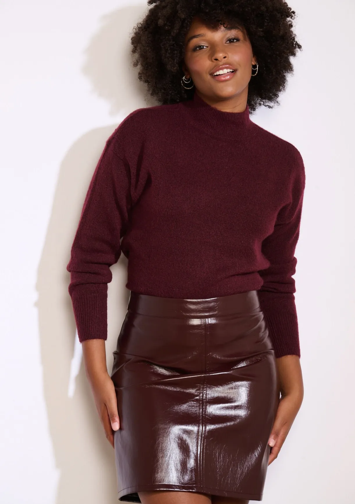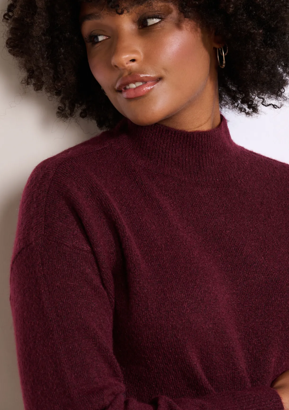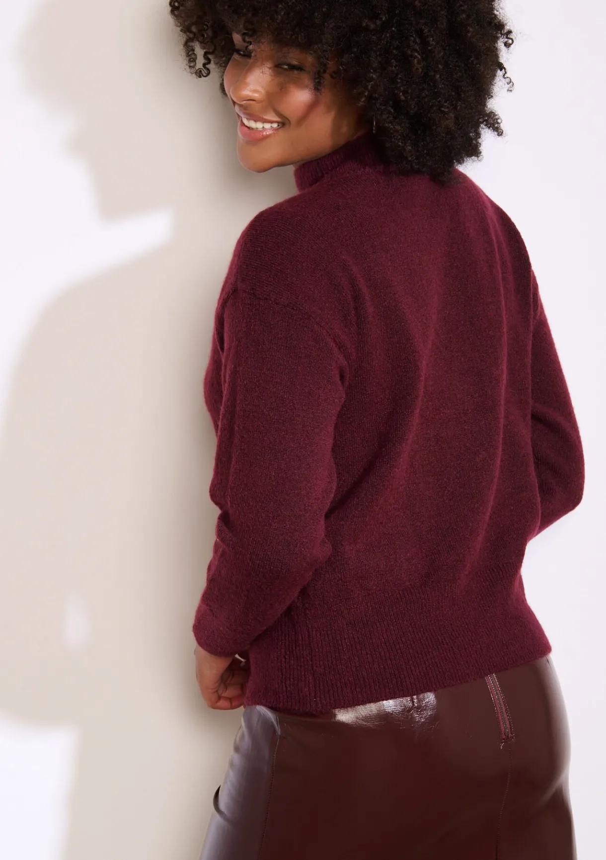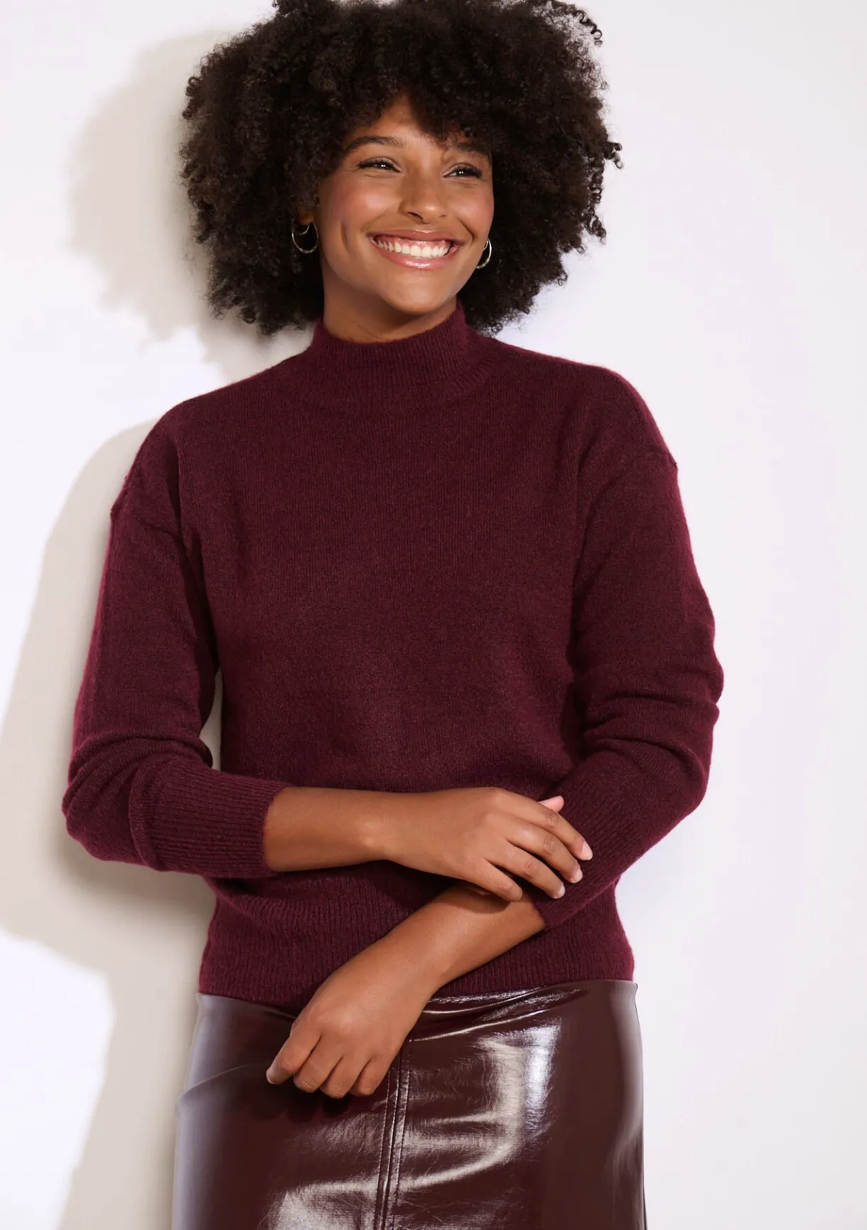 Subtiel pluizige trui met een rechte snit en opstaande hals ? moeiteloos stijlvol voor elke dag.