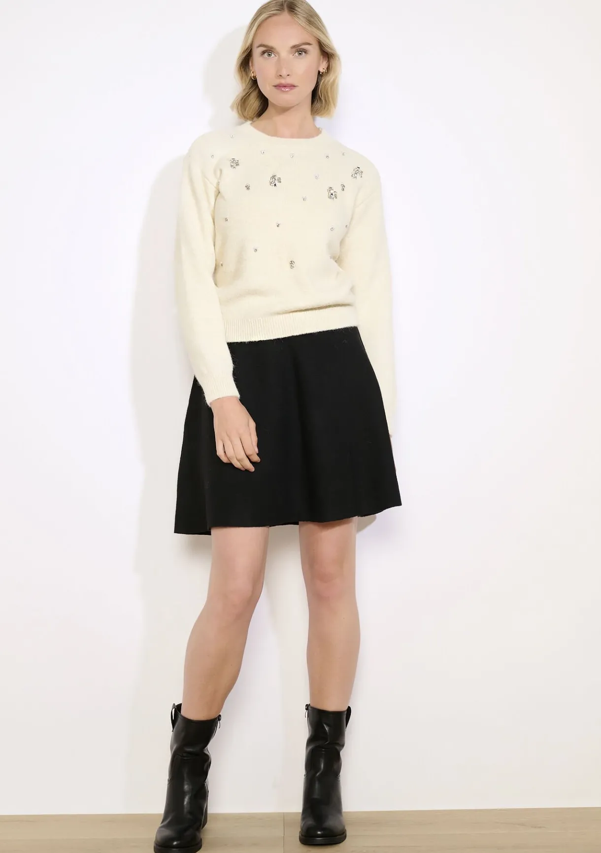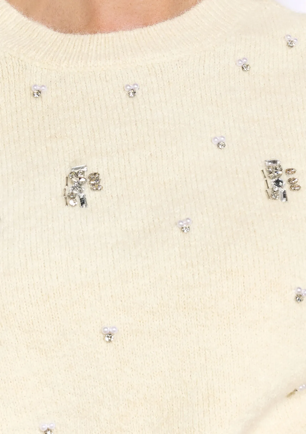 Zachte trui met pareldetails. Voor een subtiel vrouwelijke uitstraling.