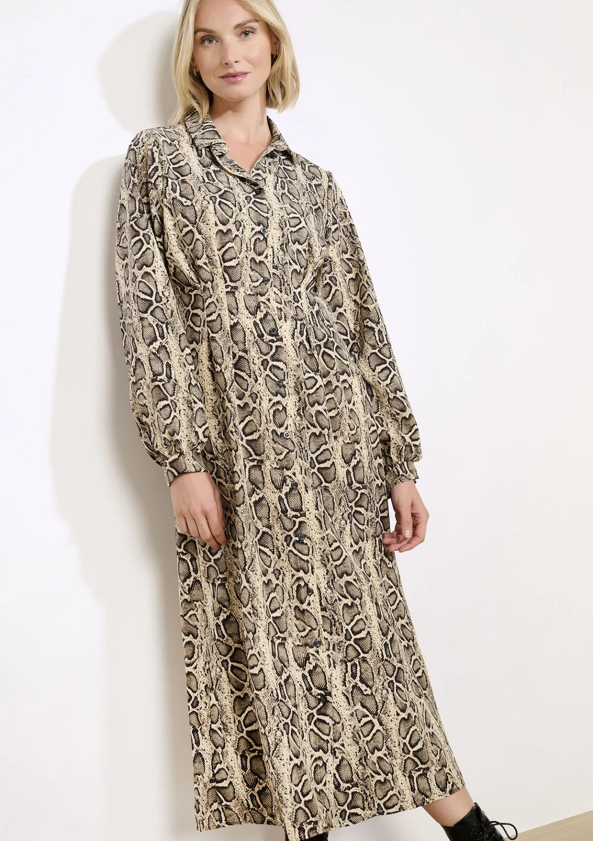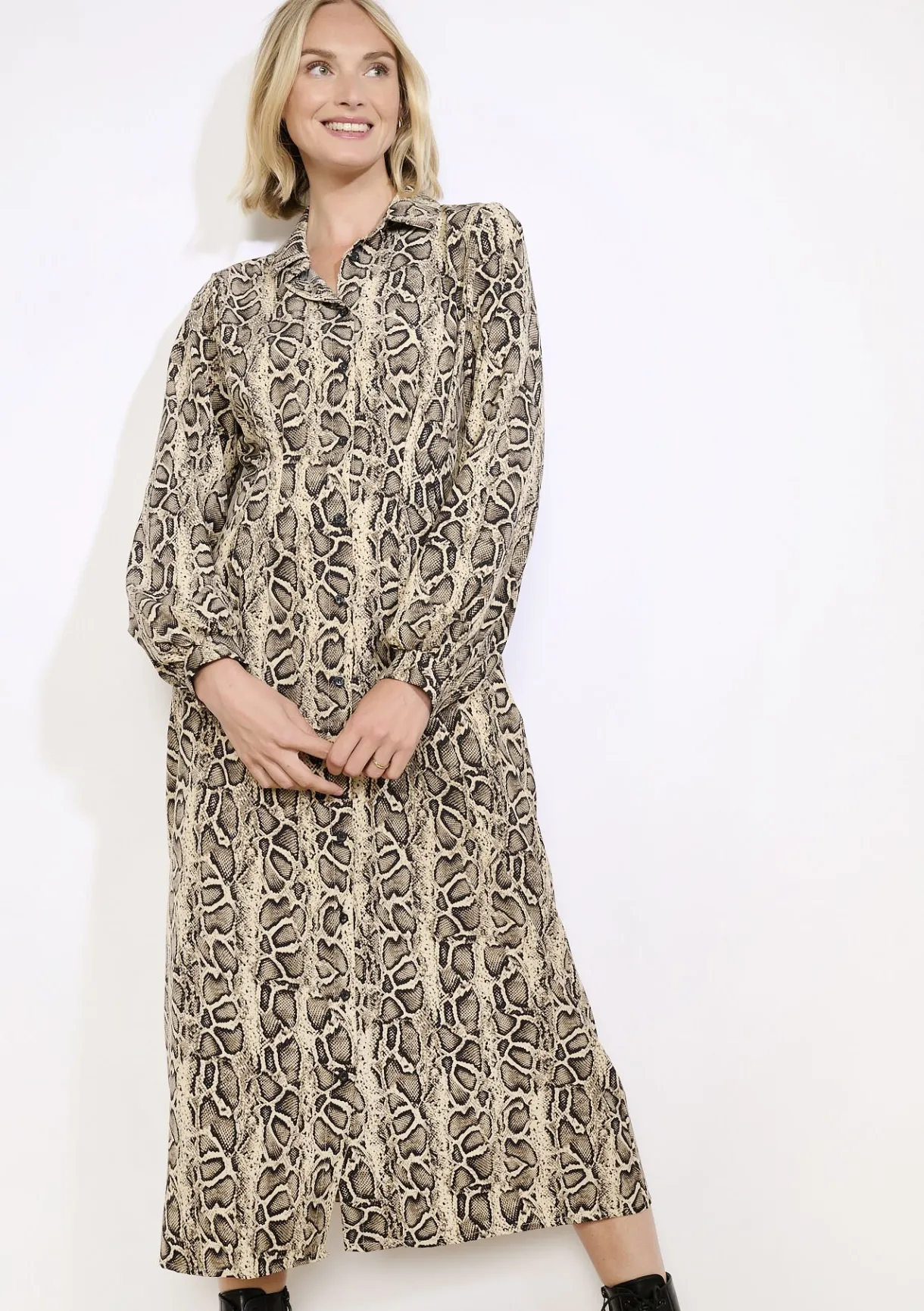 Een zwierige midi-jurk met een verfijnde dierenprint. De soepele stof en midi-lengte zorgen voor een nonchalante, vrouwelijke look.