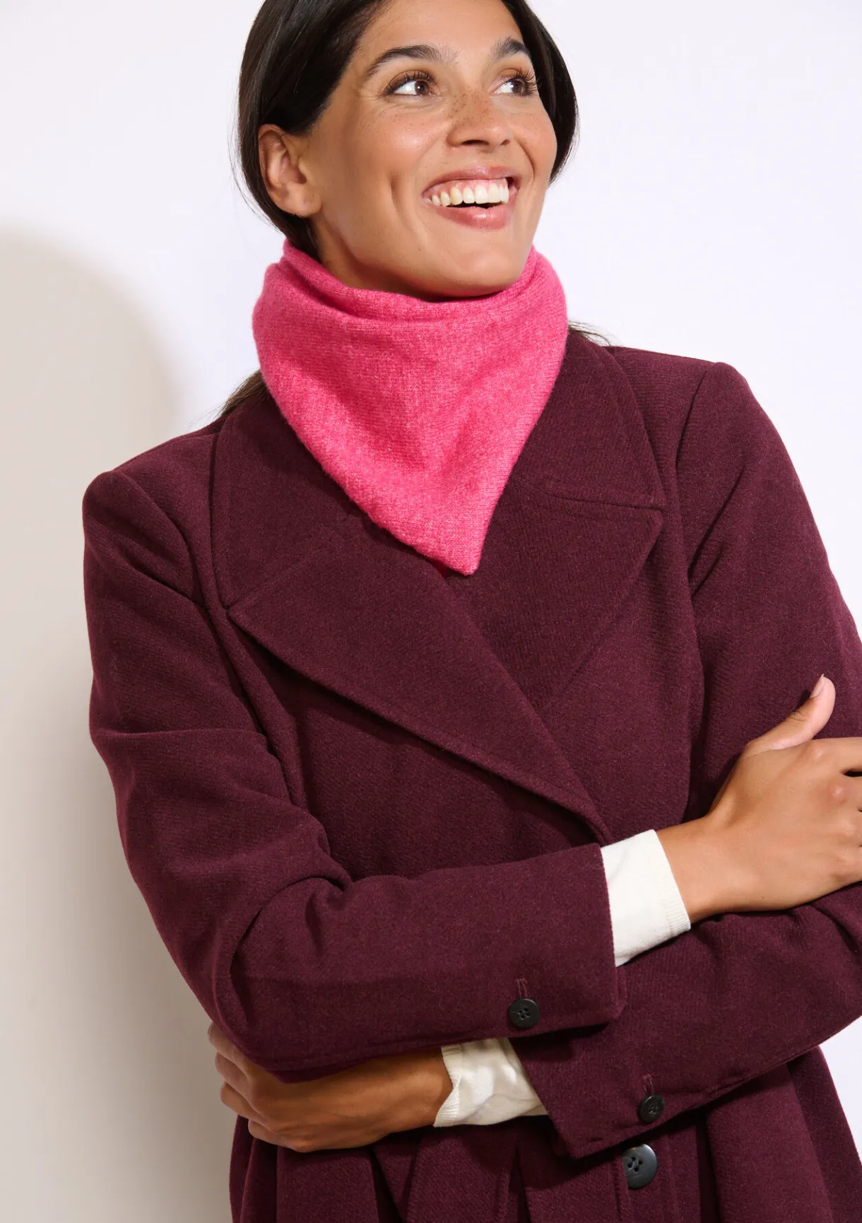 Minimalistisch en warm: deze gebreide driehoekige sjaal combineert zachte wol met soepelvallende viscose voor moeiteloze elegantie, elke dag weer.