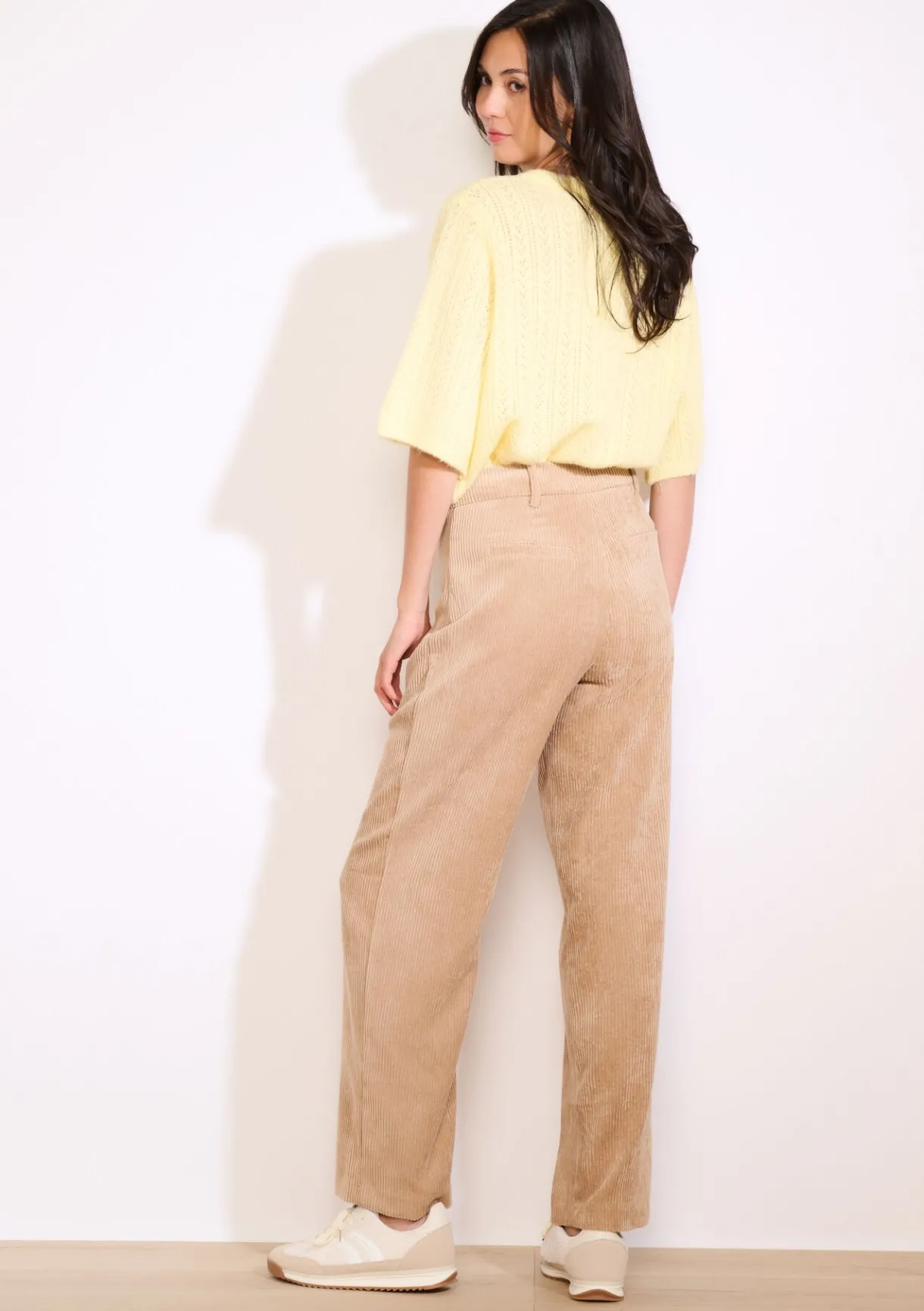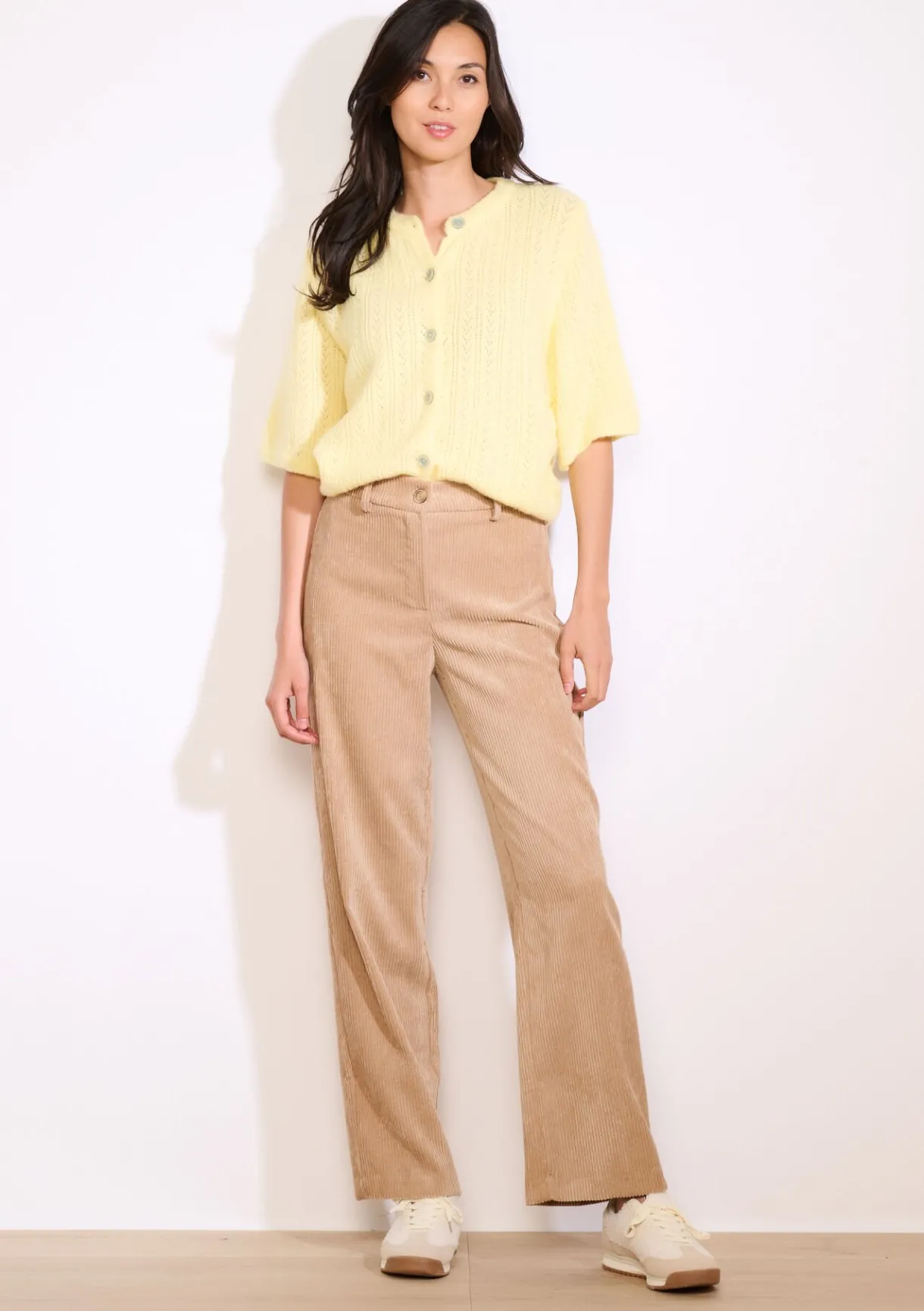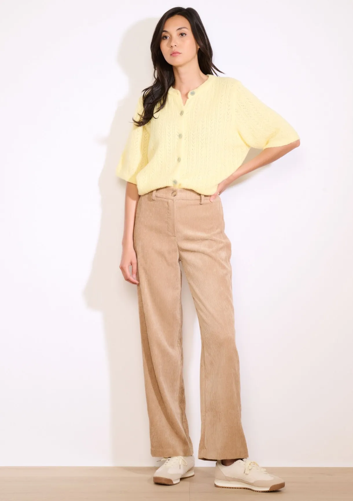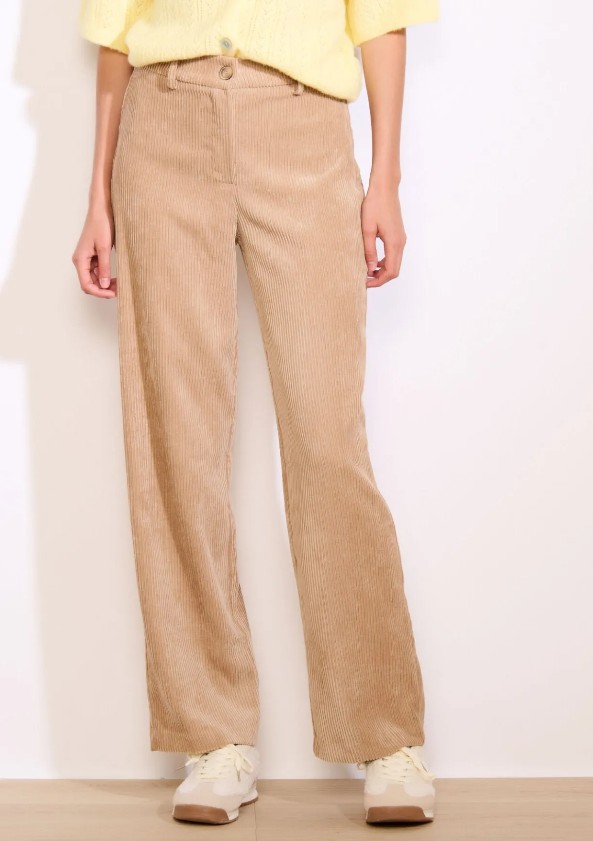Verfijnde ribfluweel en flatterende wide leg zorgen voor een elegante, relaxte look met karakter.