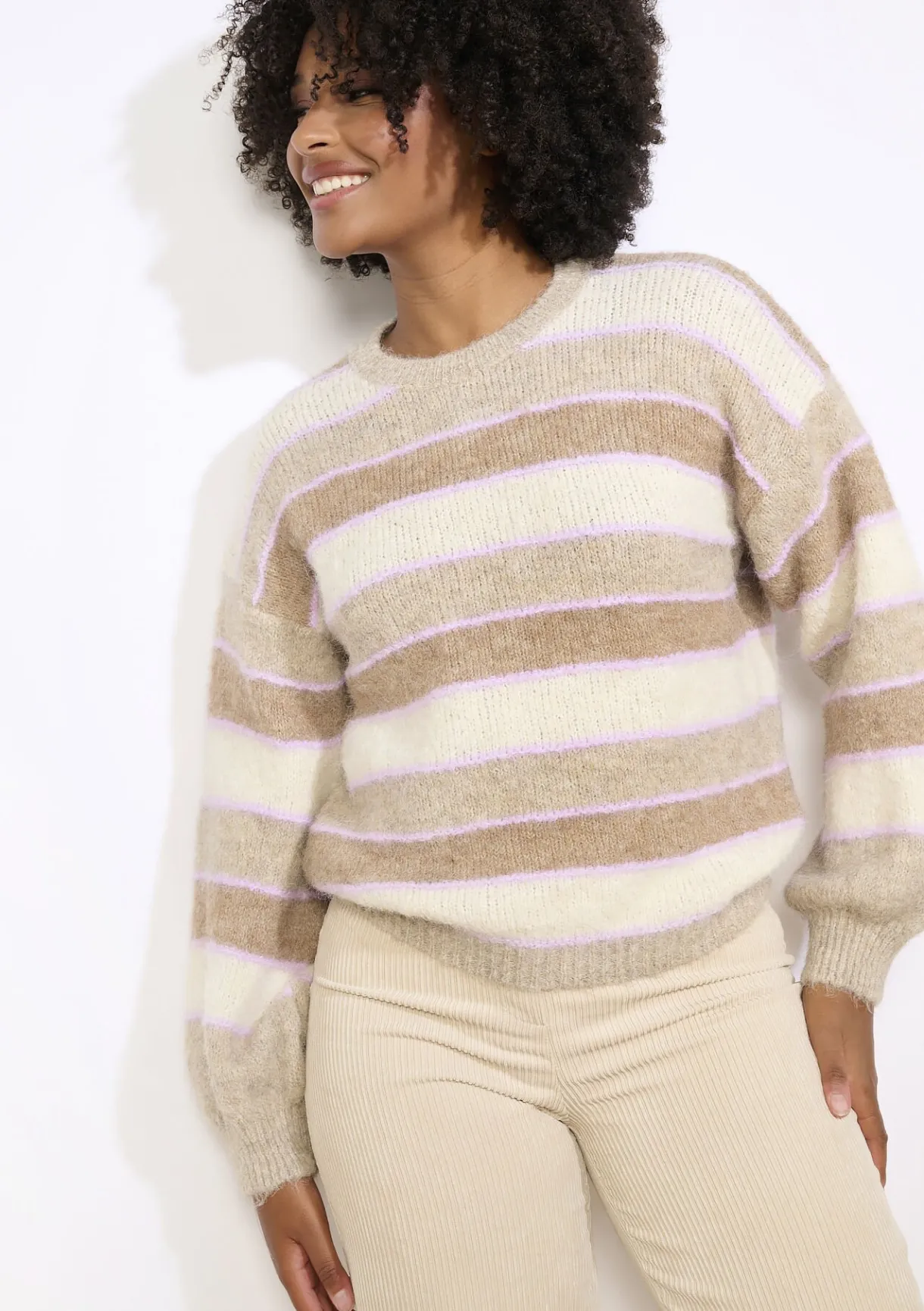 Grafische strepen en een zachte textuur maken van deze trui een opvallende basic voor elke garderobe.