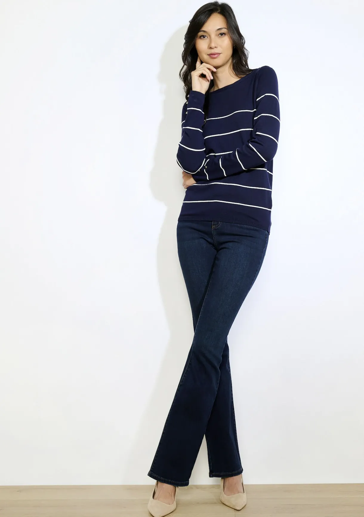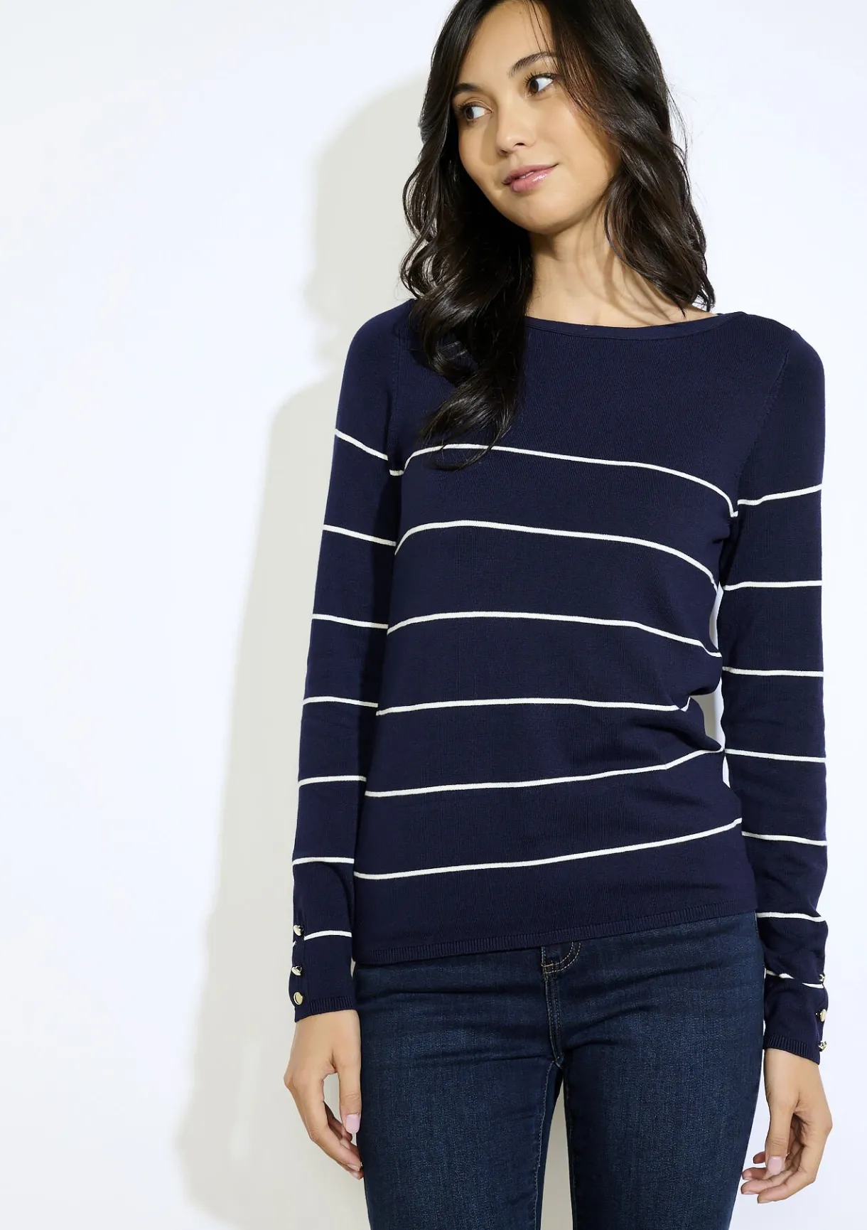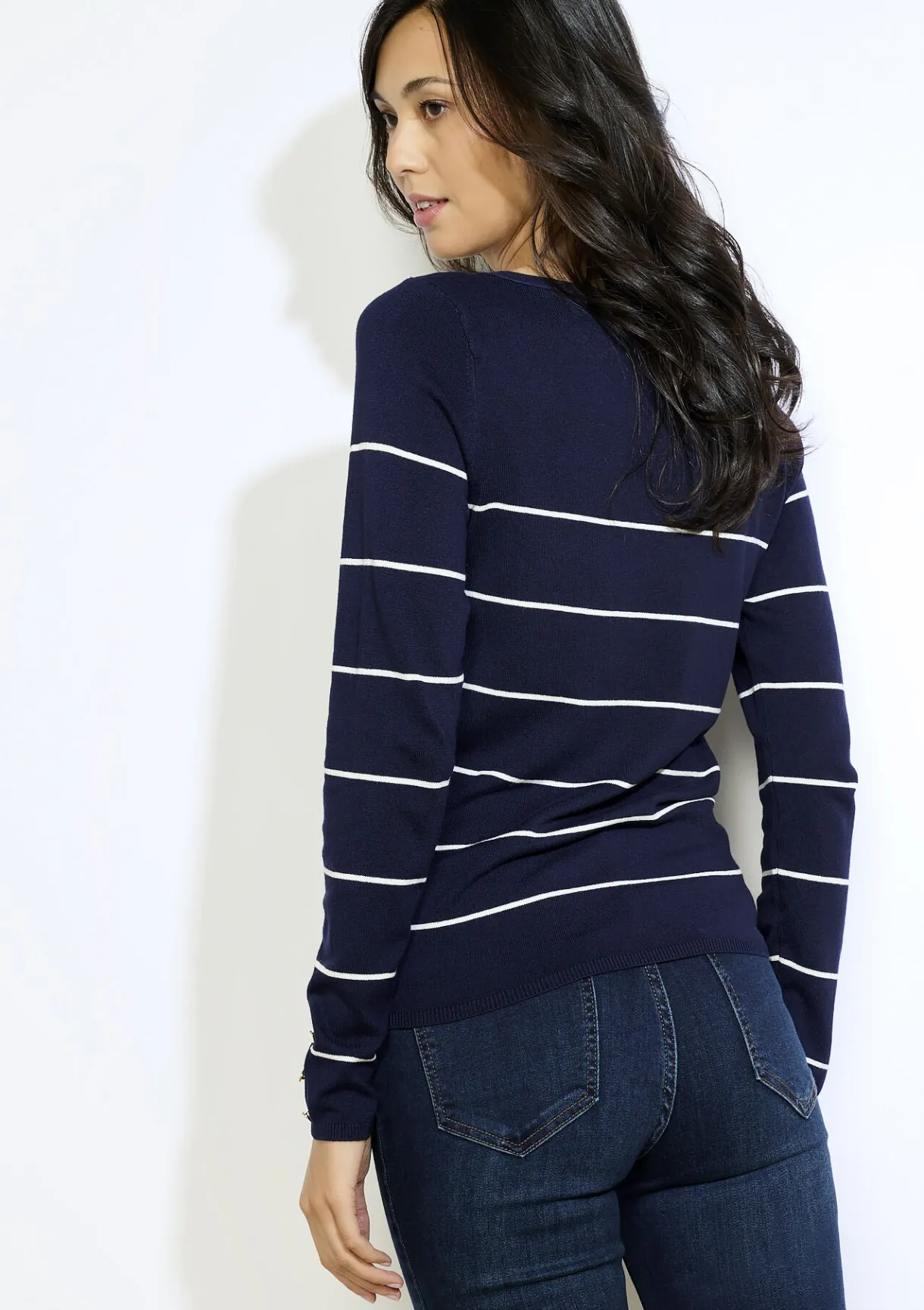 Deze fijn gestreepte trui combineert stijl en comfort. Een zachte essential met een moderne snit.