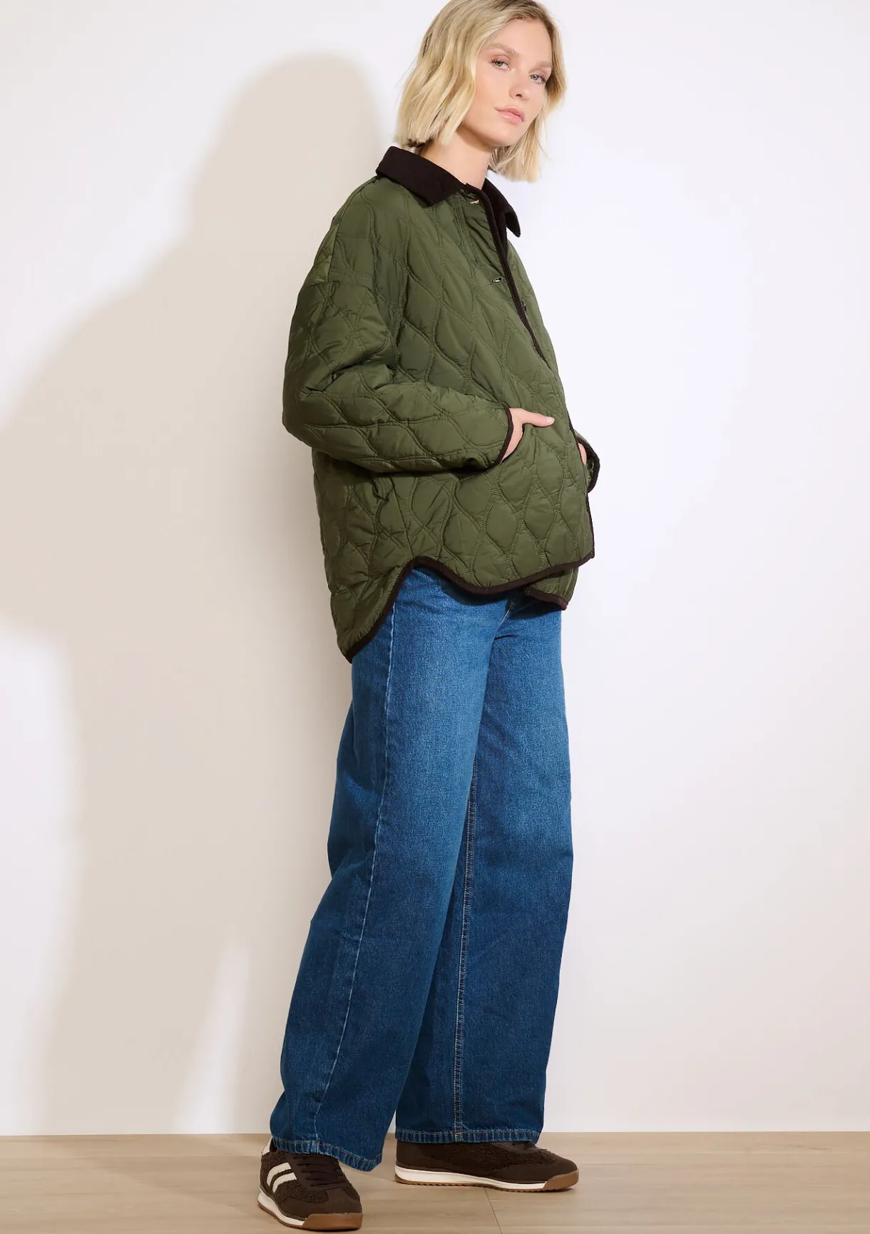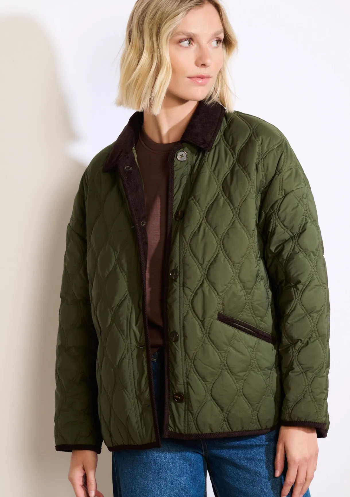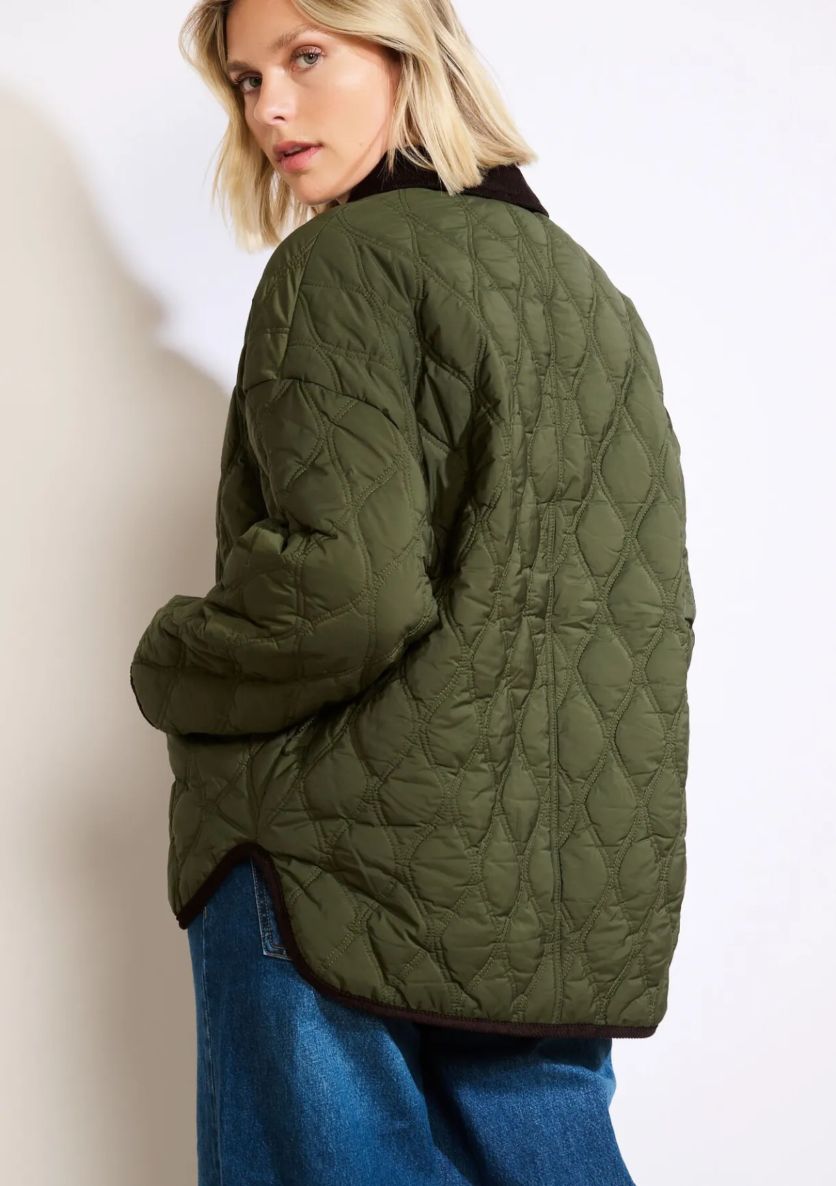 Gewatteerde warmte en retro-uitstraling komen samen in dit jack met ribfluwelen kraag. Een stijlvolle essential voor het tussenseizoen.