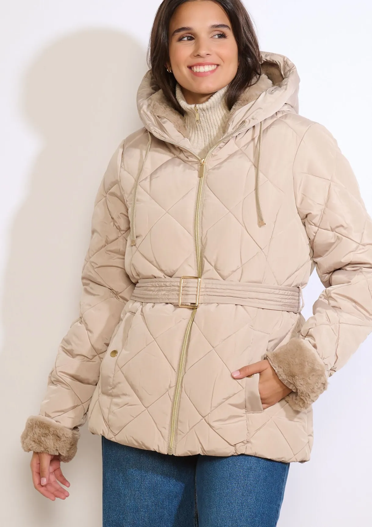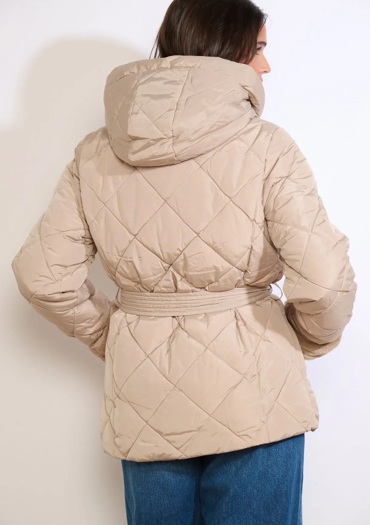Een korte puffer met ceintuur en elegante afwerking. Perfect voor stijlvolle winterdagen met comfort.