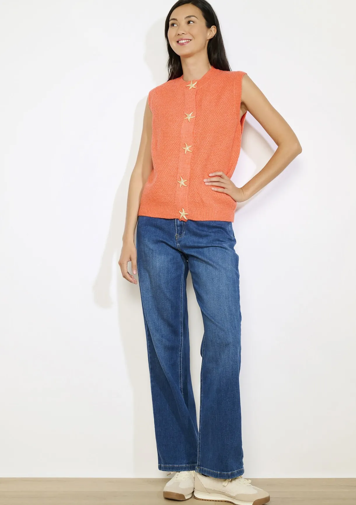 Deze vest zonder mouwen met subtiele textuur en speelse zeesterknopen is een frisse must-have voor de zomer.