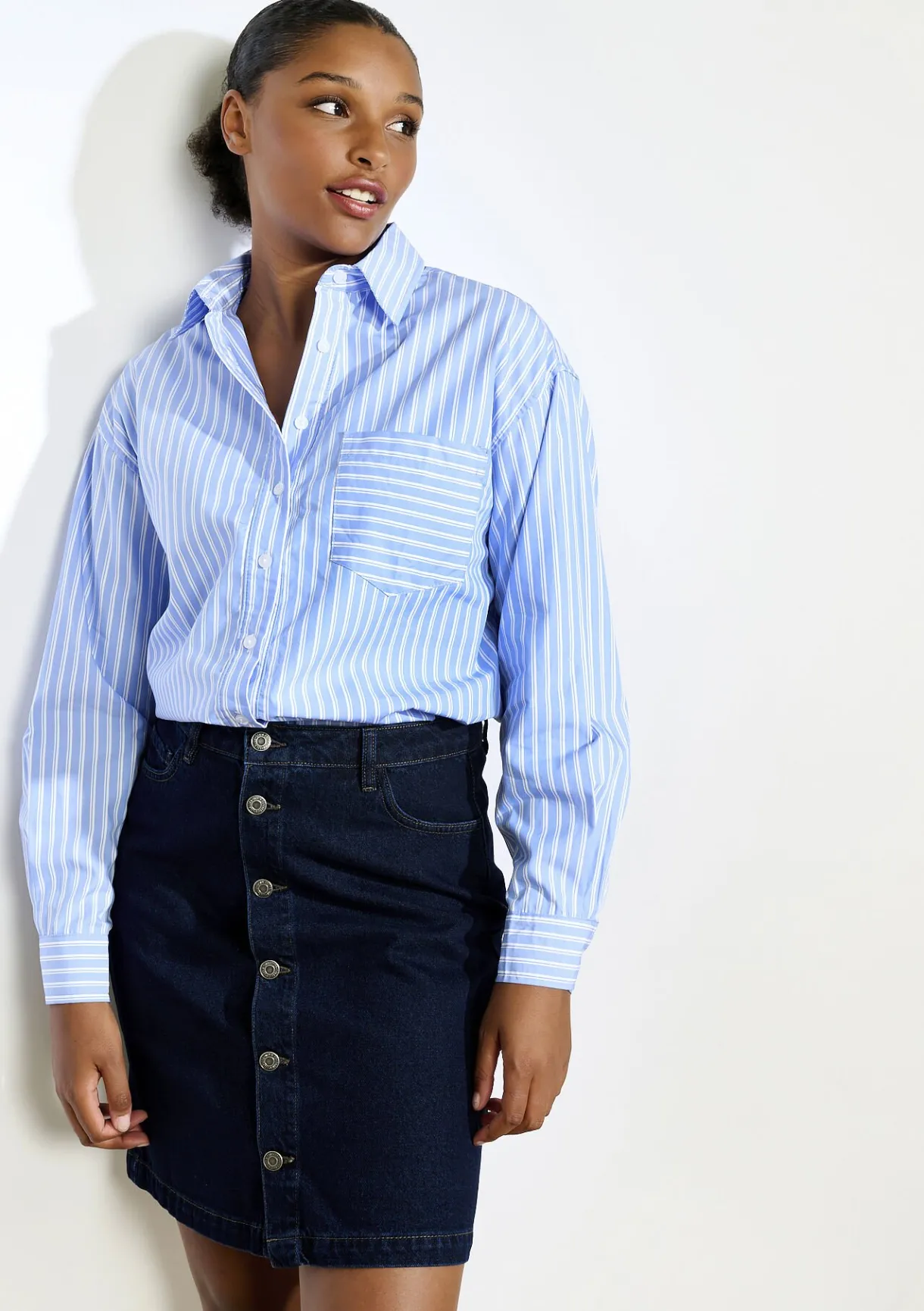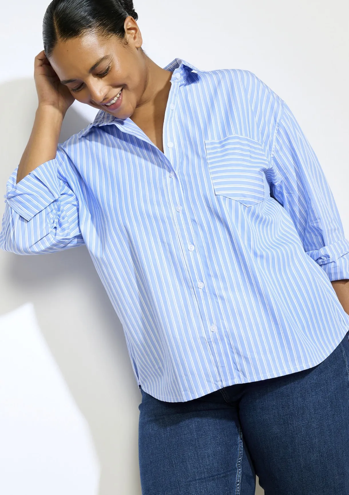 Een oversized hemd met fijne strepen. De soepele, androgyne snit geeft elke outfit een eigentijdse twist.