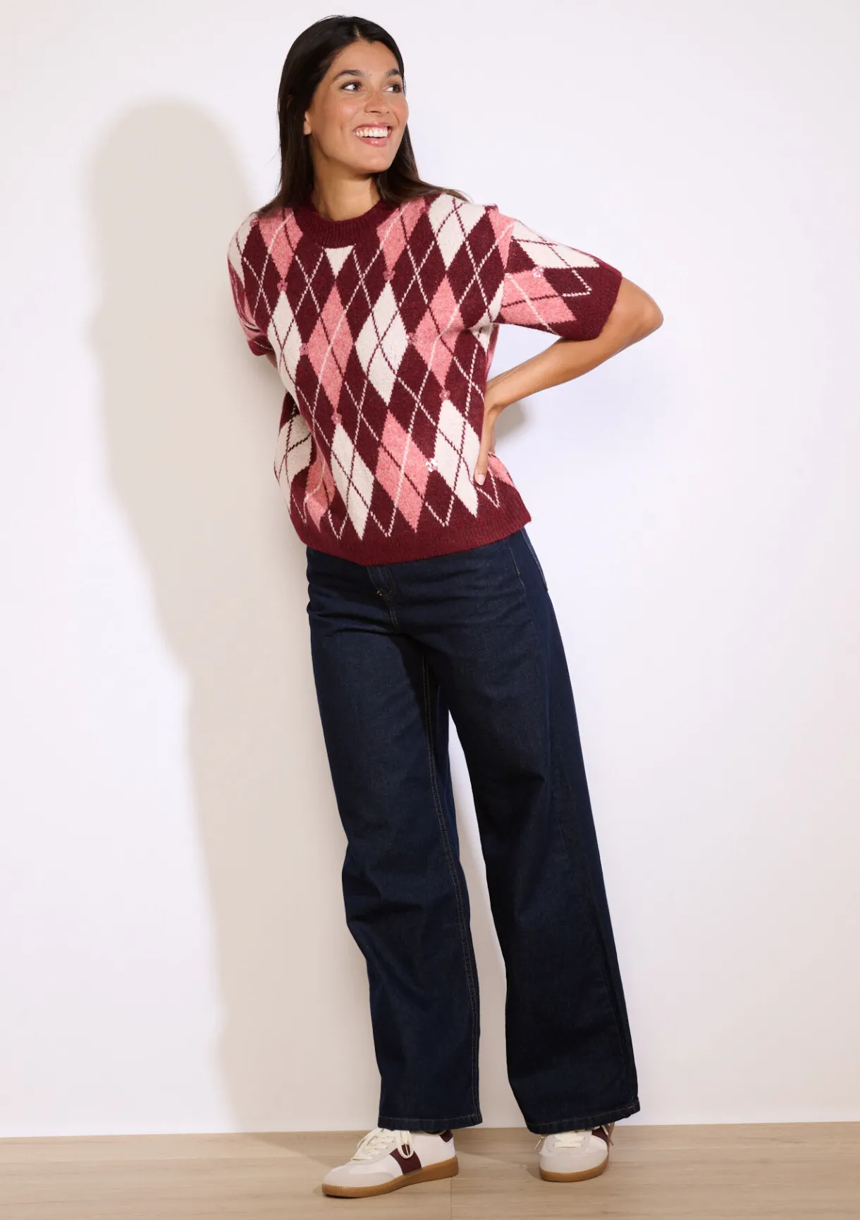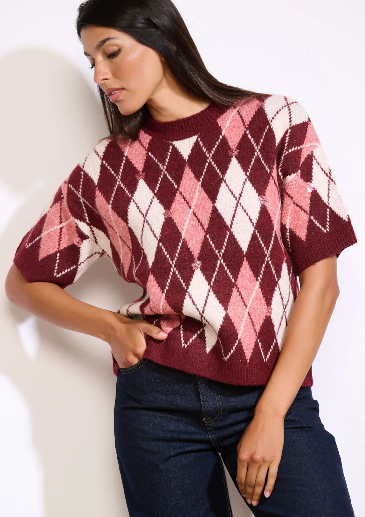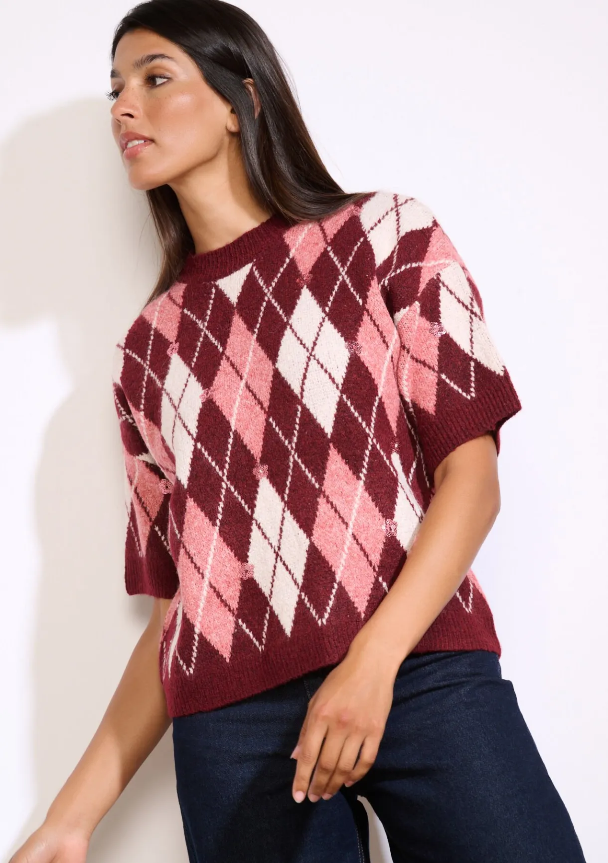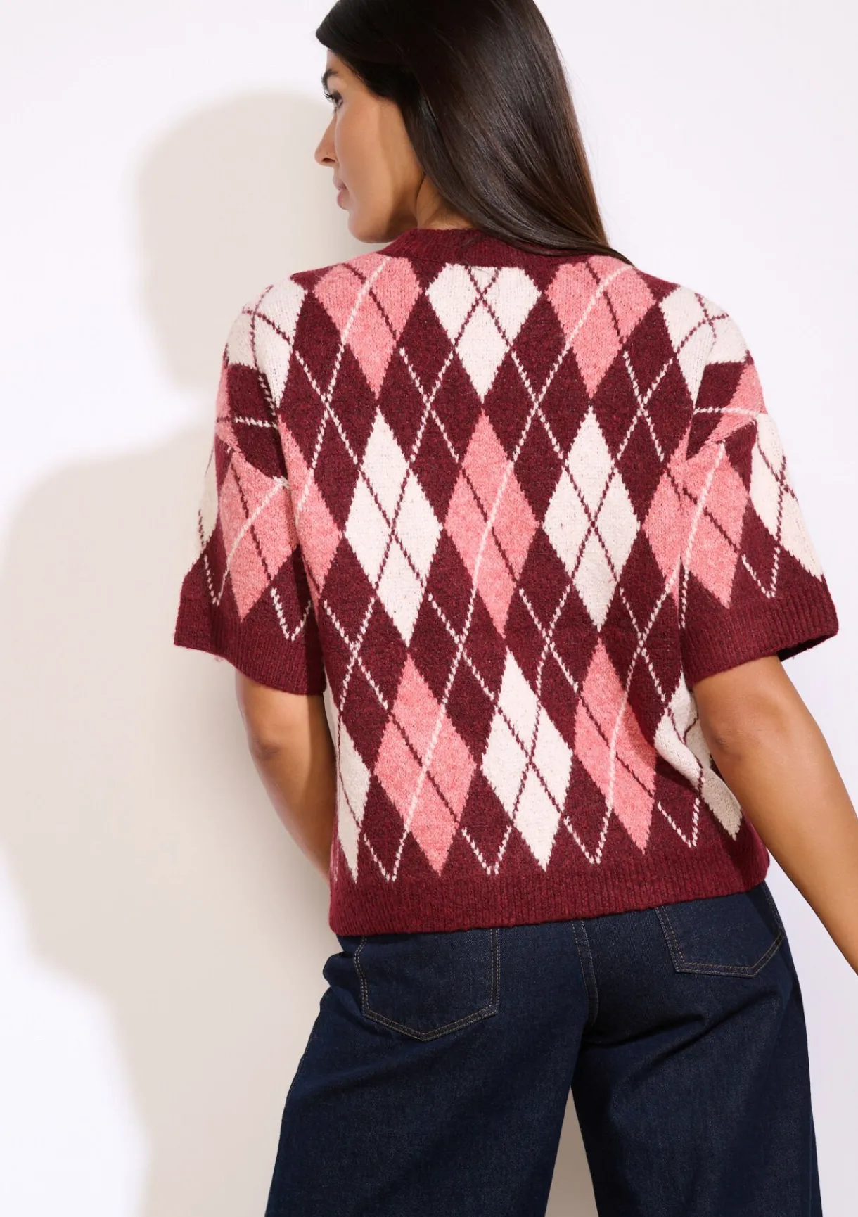 Deze ruitjestrui geeft een moderne twist aan een vintage klassieker. Met korte mouwen en een losse snit voor moeiteloze stijl.