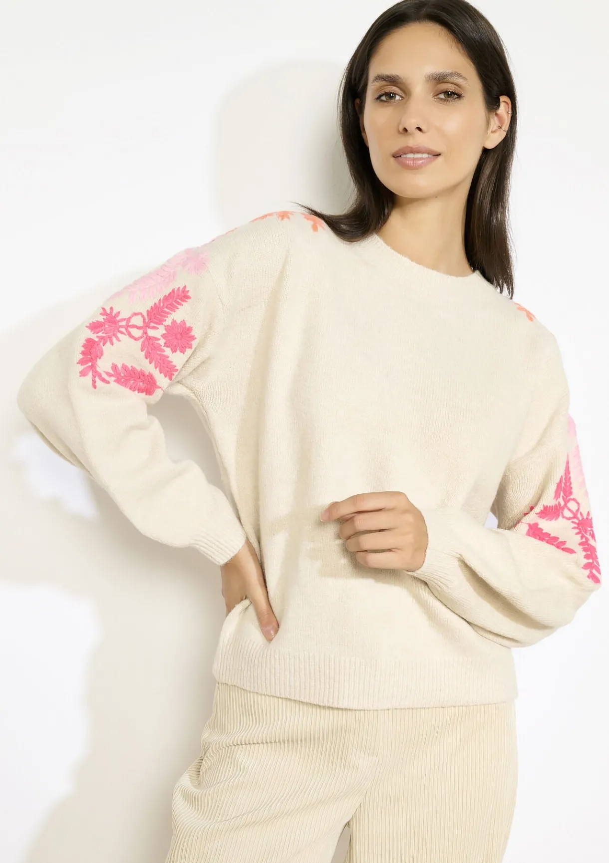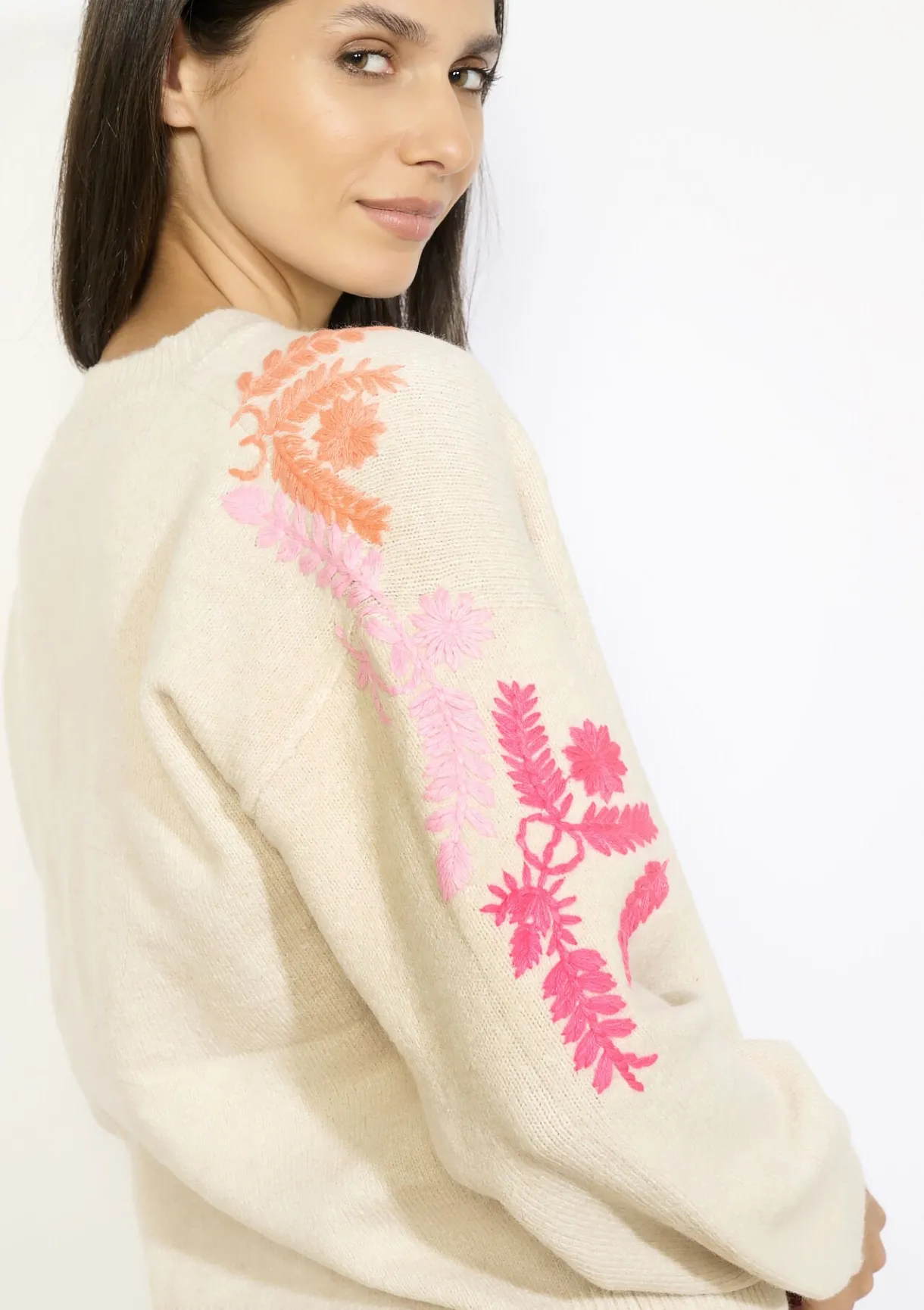 Geborduurde bloemenaccenten zorgen voor een verfijnde boho-touch. Losvallende pasvorm.