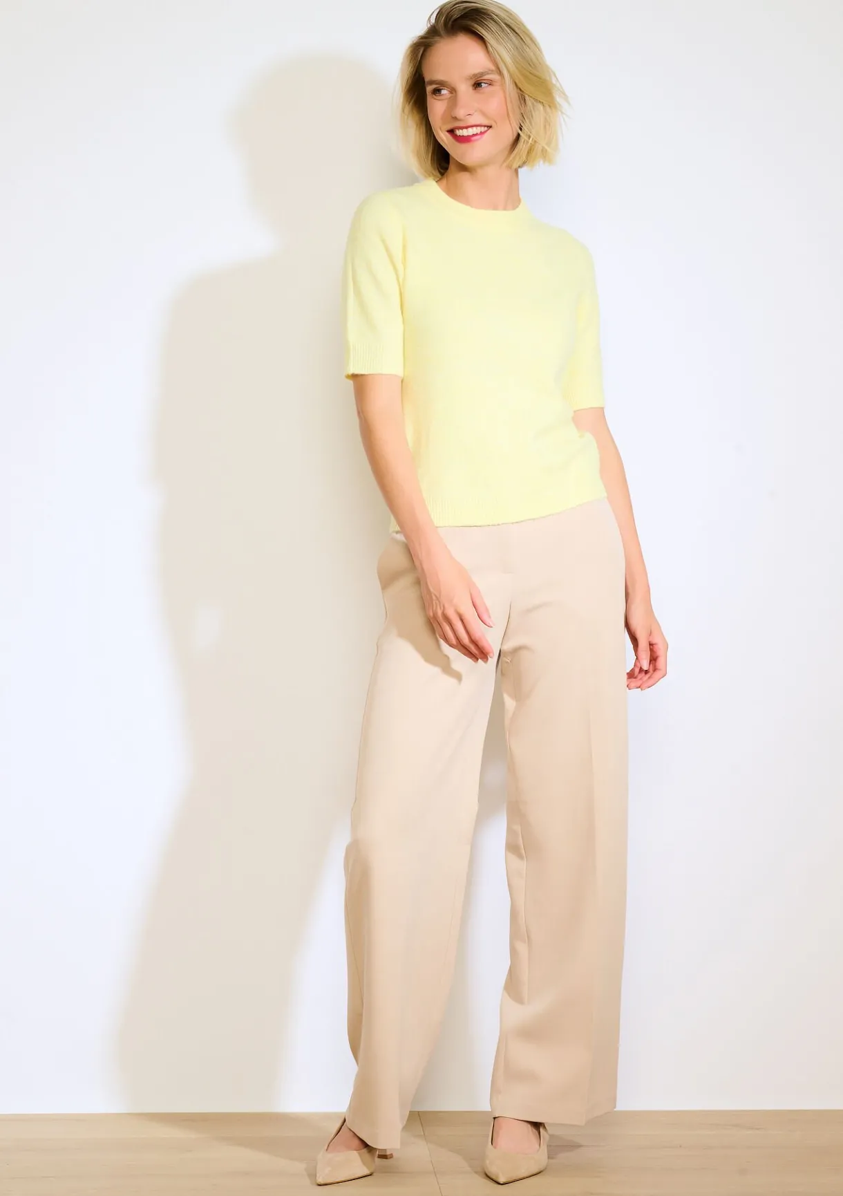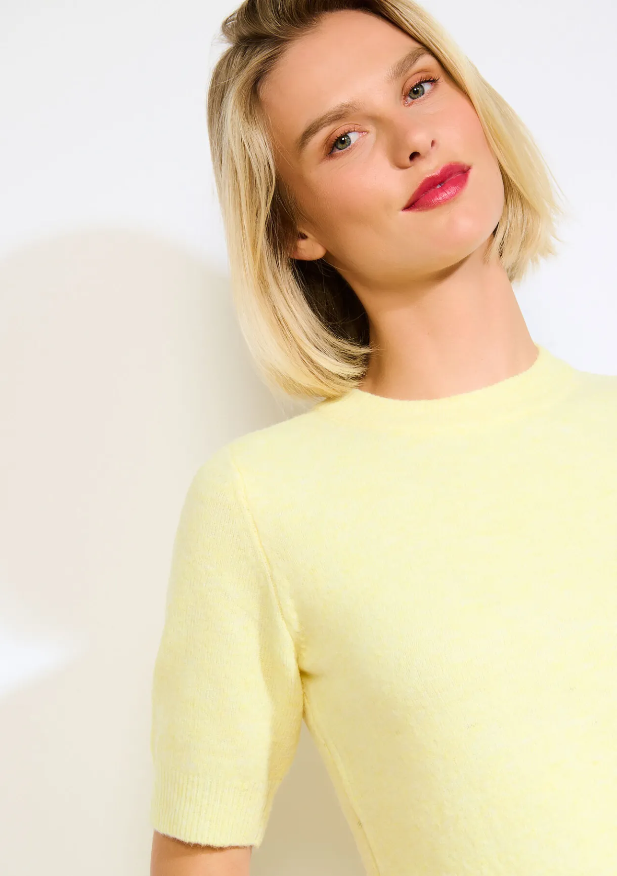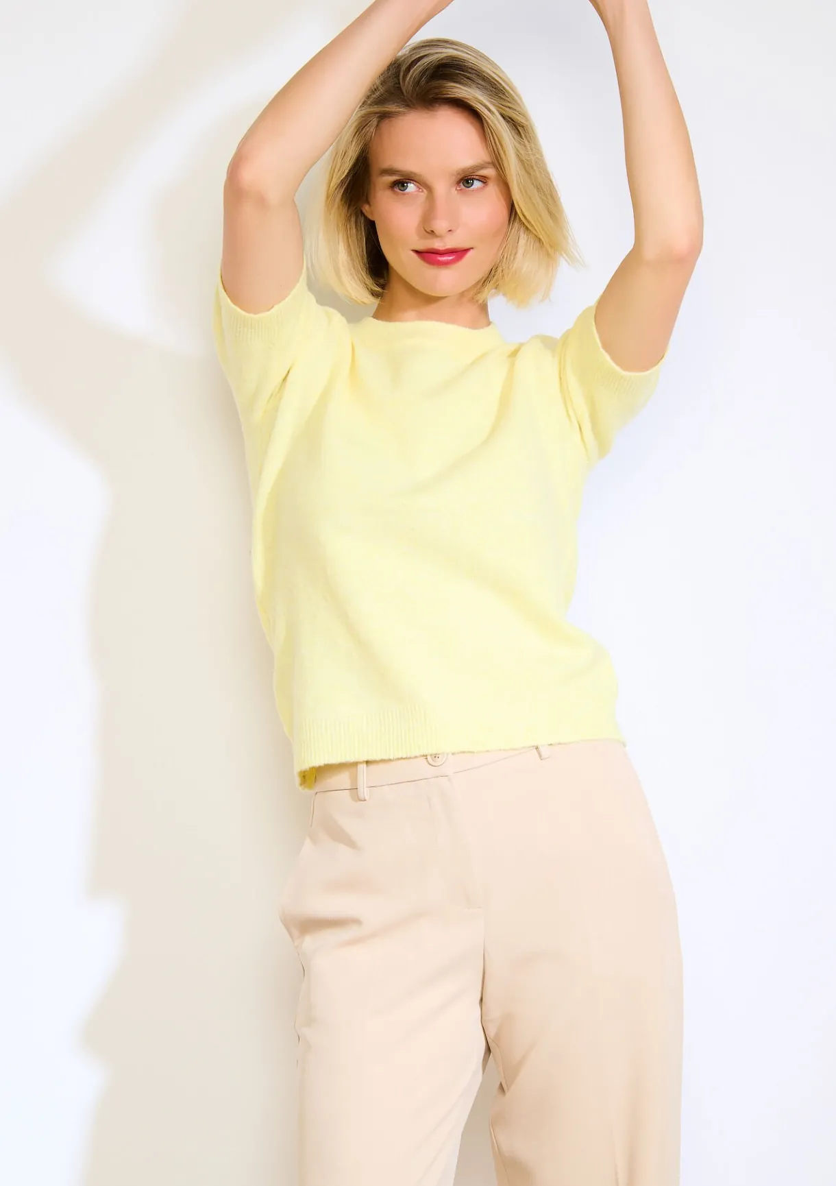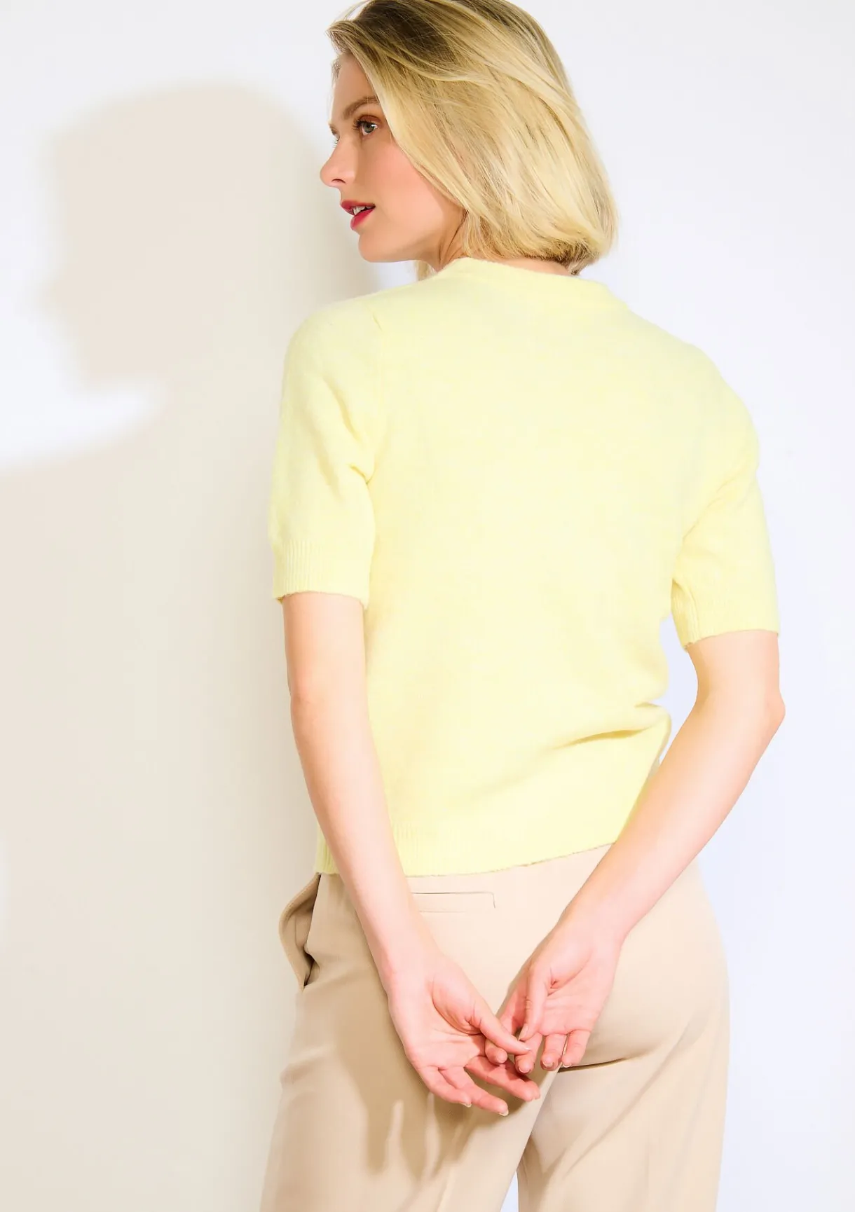 Een zachte, luchtige trui met korte mouwen. Tijdloze finesse, solo gedragen of onder een jasje voor een verfijnde look.