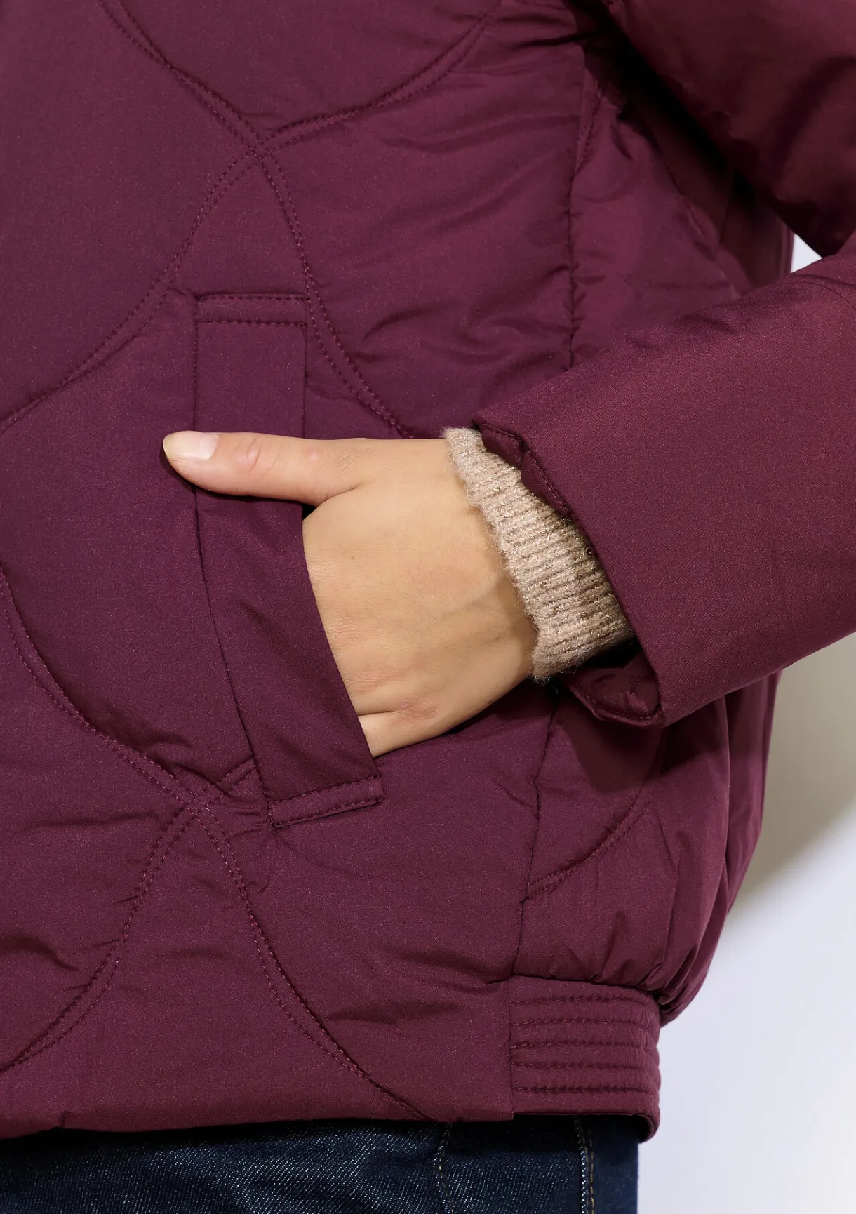 Warme gewatteerde bomber met zachte voering en comfortabele capuchon. Grafische stiksels zorgen voor een eigentijdse uitstraling.