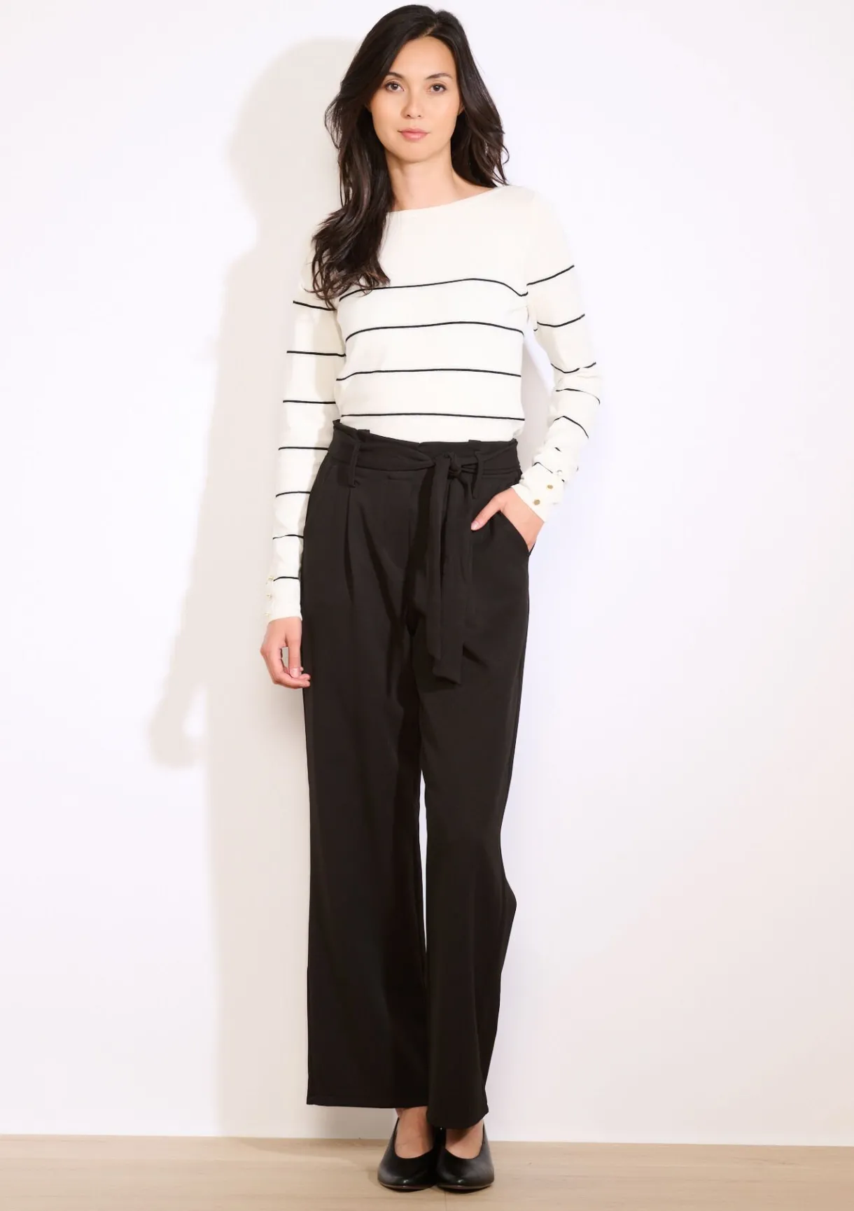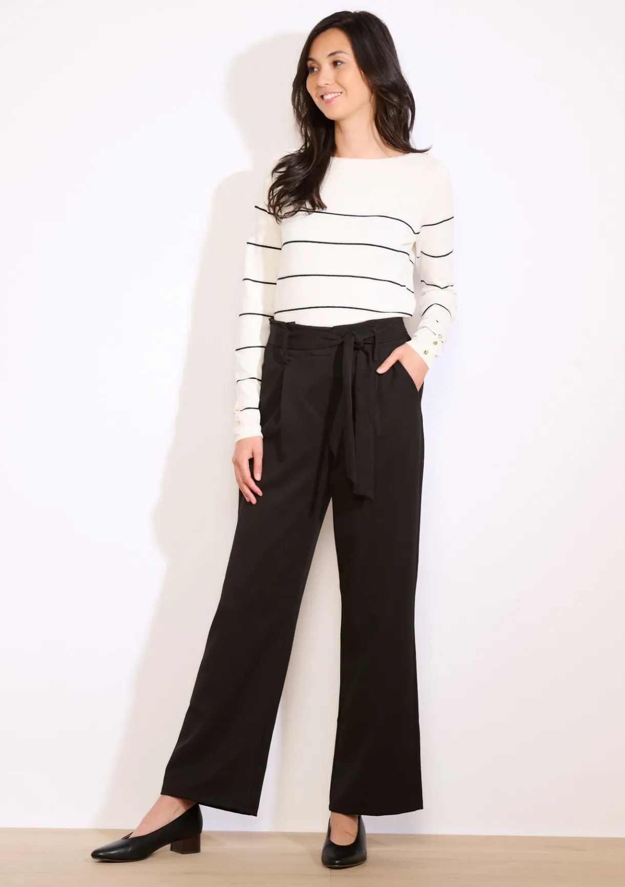 Hoge taille en losvallend silhouet deze broek met ceintuur straalt elegantie uit.
