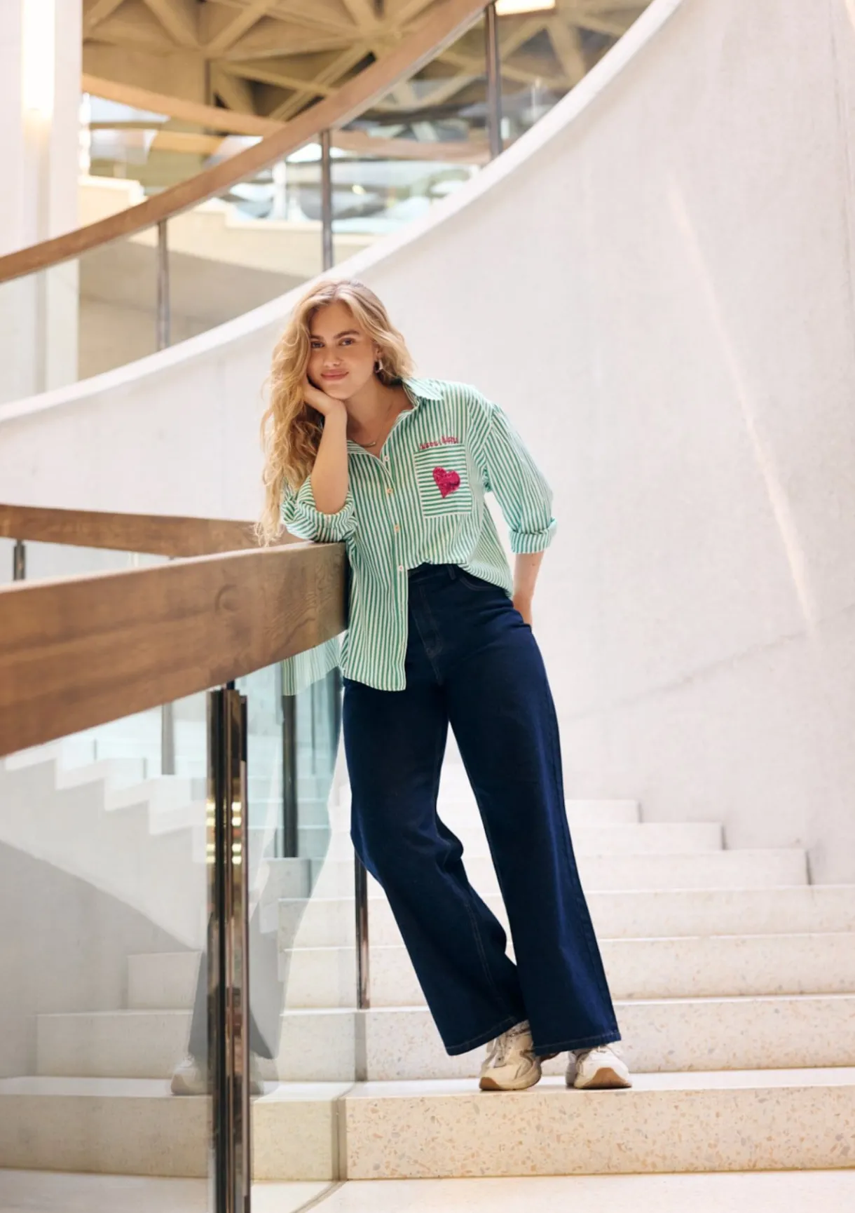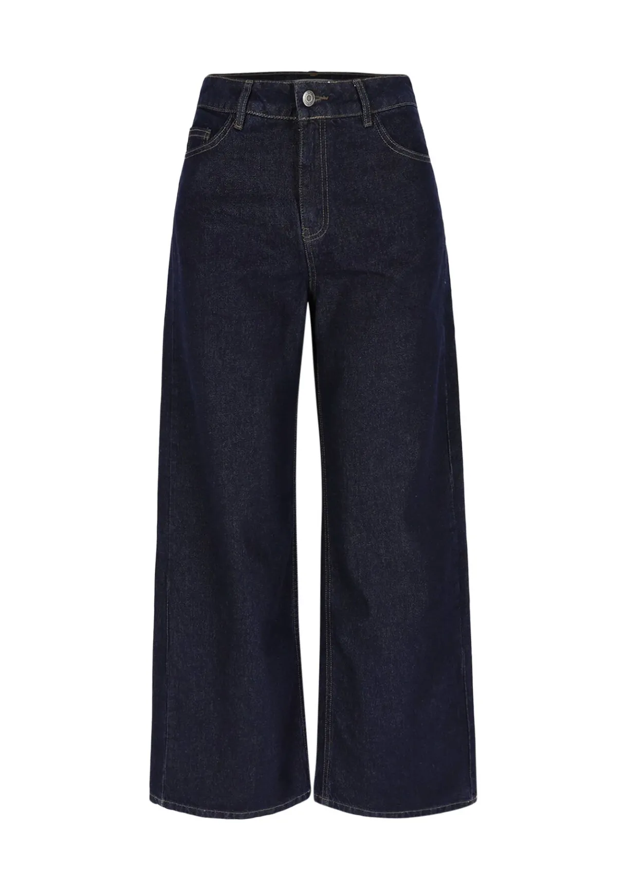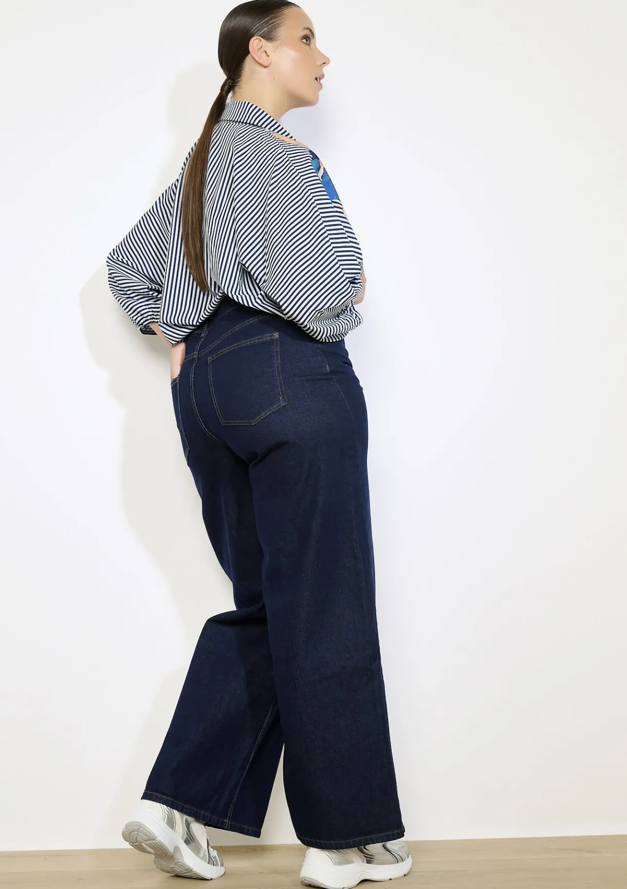 Wide-leg jeans met hoge taille en vloeiende snit. Ze verlengen je silhouet en geven elke look een relaxte, eigentijdse twist.