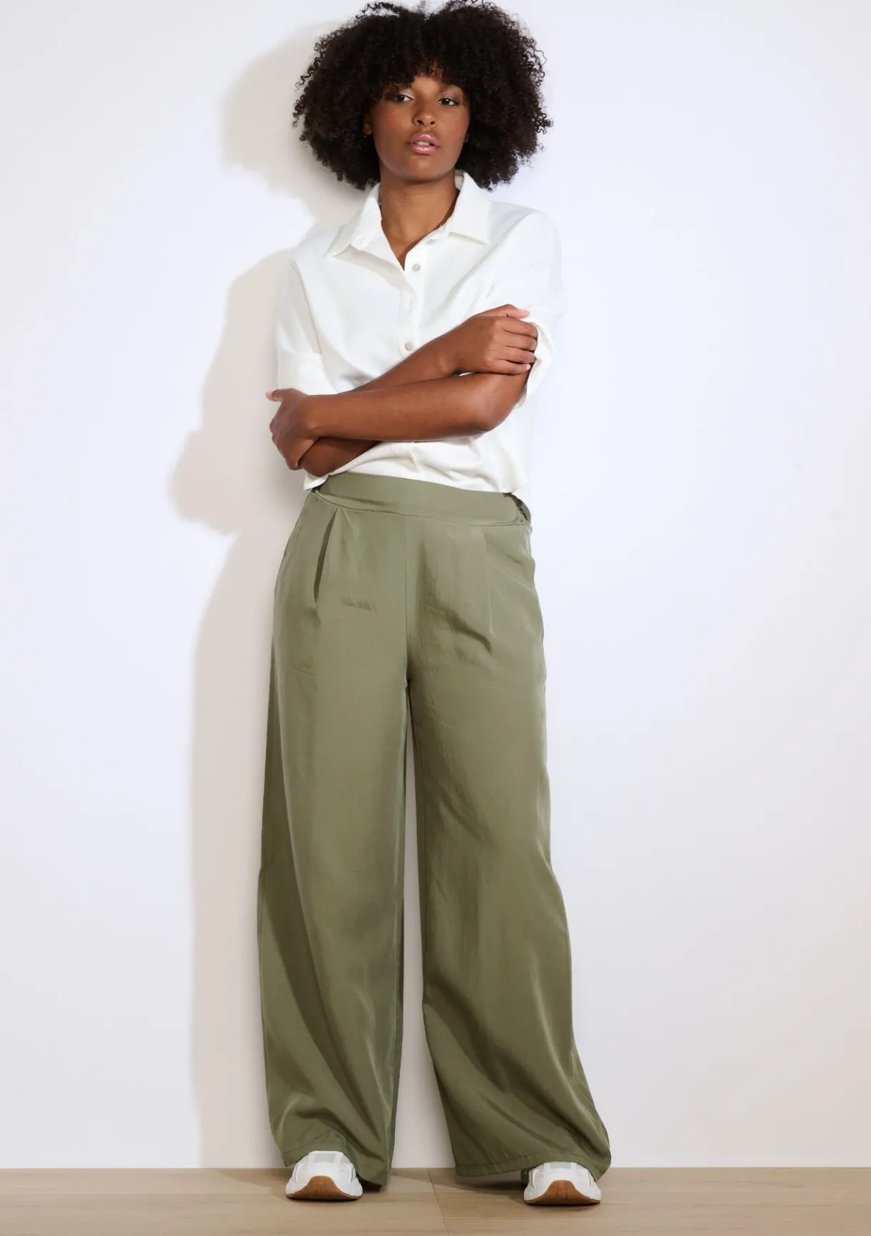 Deze soepel vallende broek met wijde pijpen straalt nonchalante elegantie uit?perfect van dag tot avond.