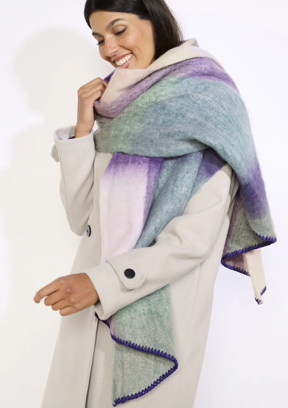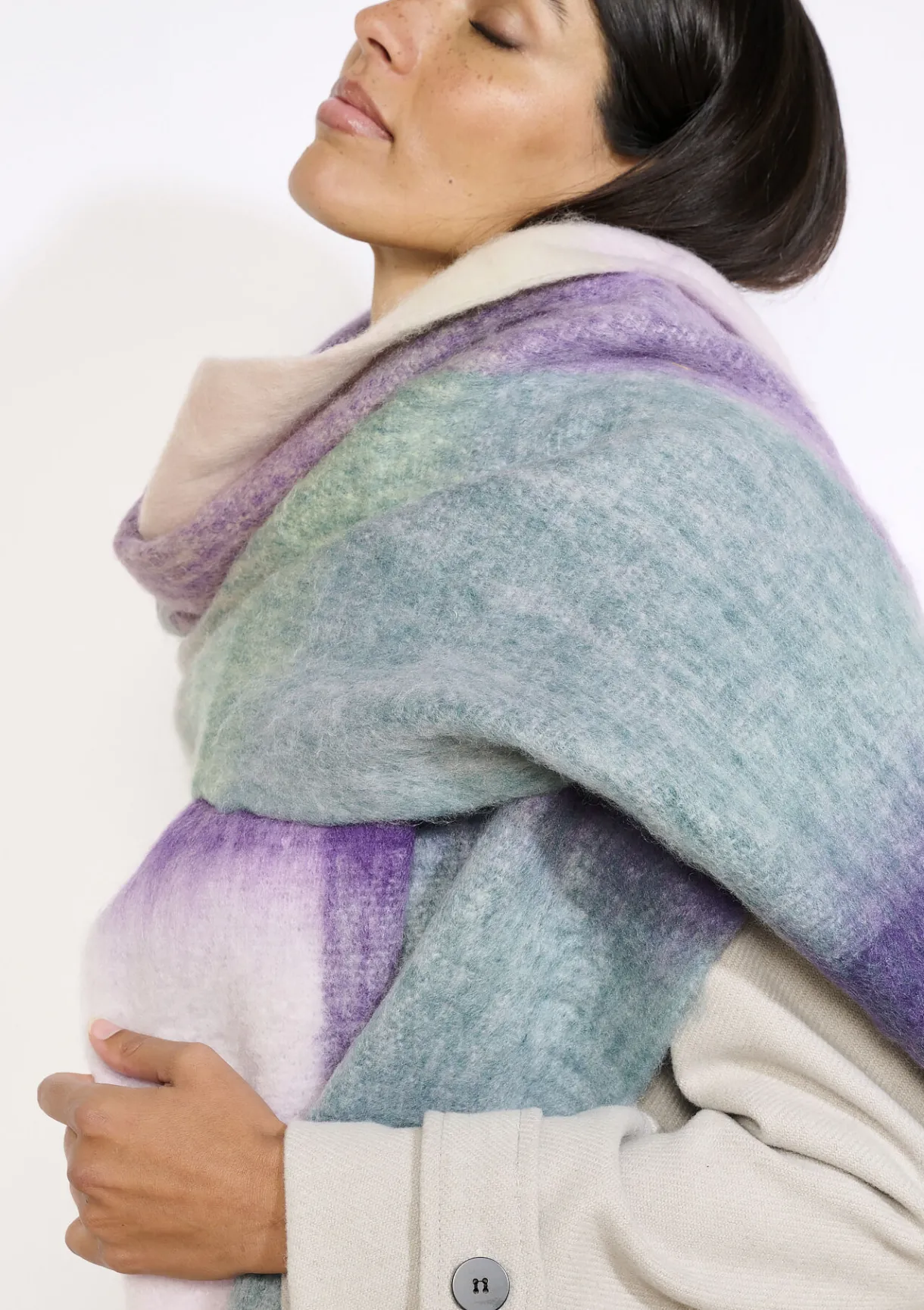 Zacht en speels met een grafisch ruitpatroon deze sjaal tilt je winterlagen moeiteloos naar een hoger niveau.