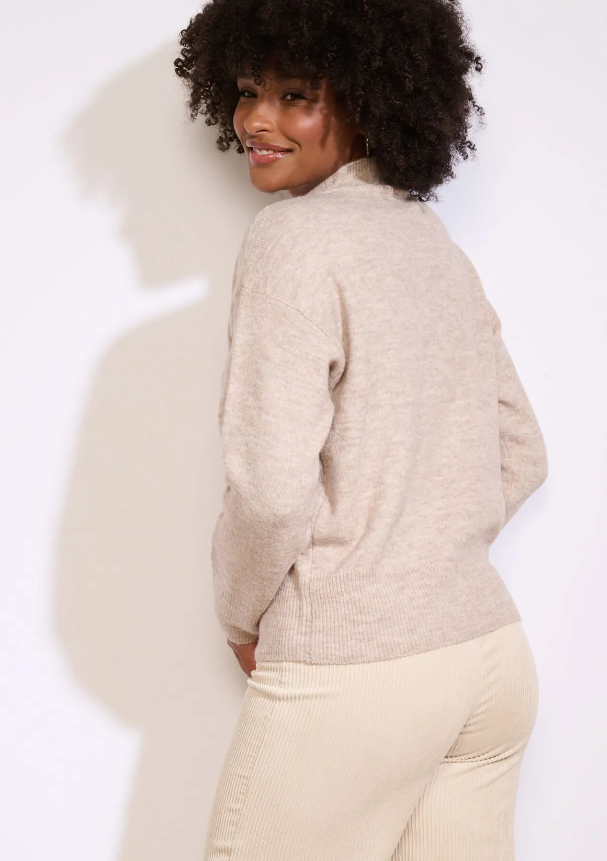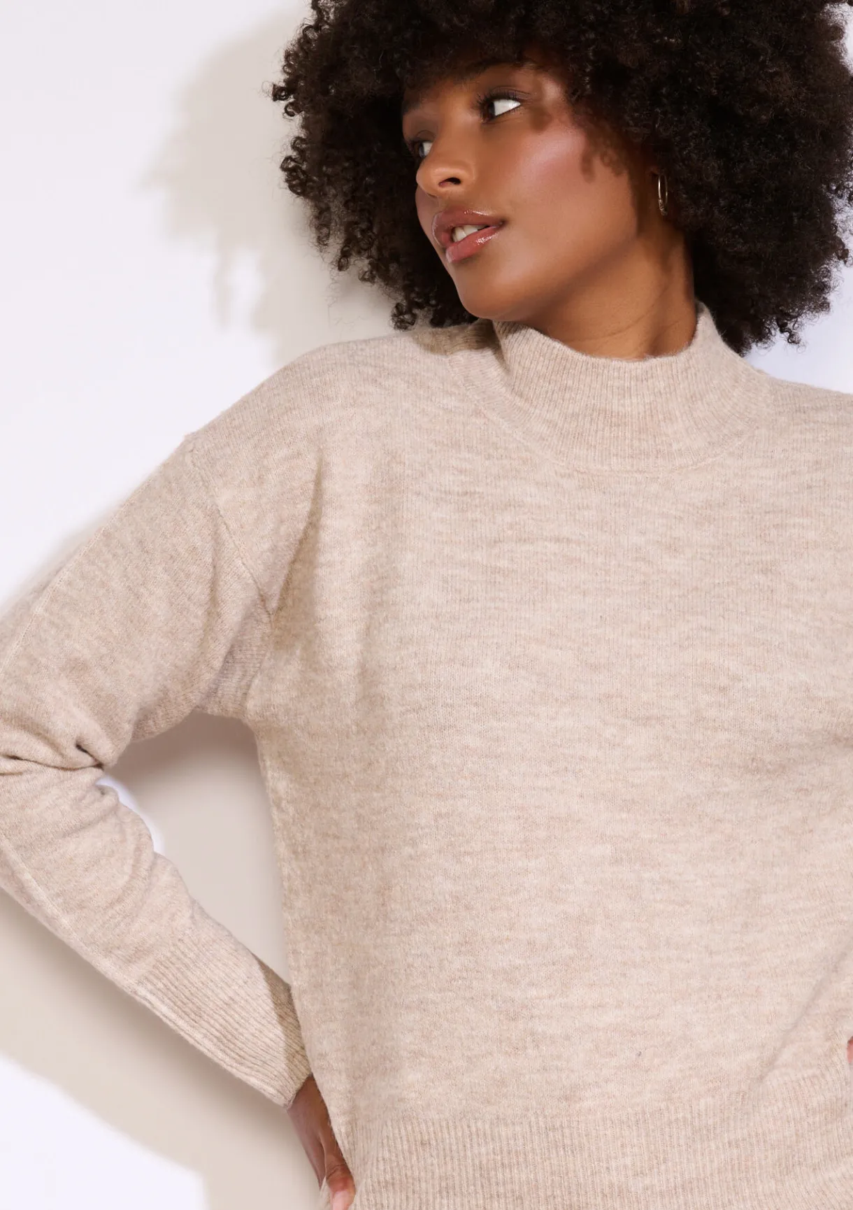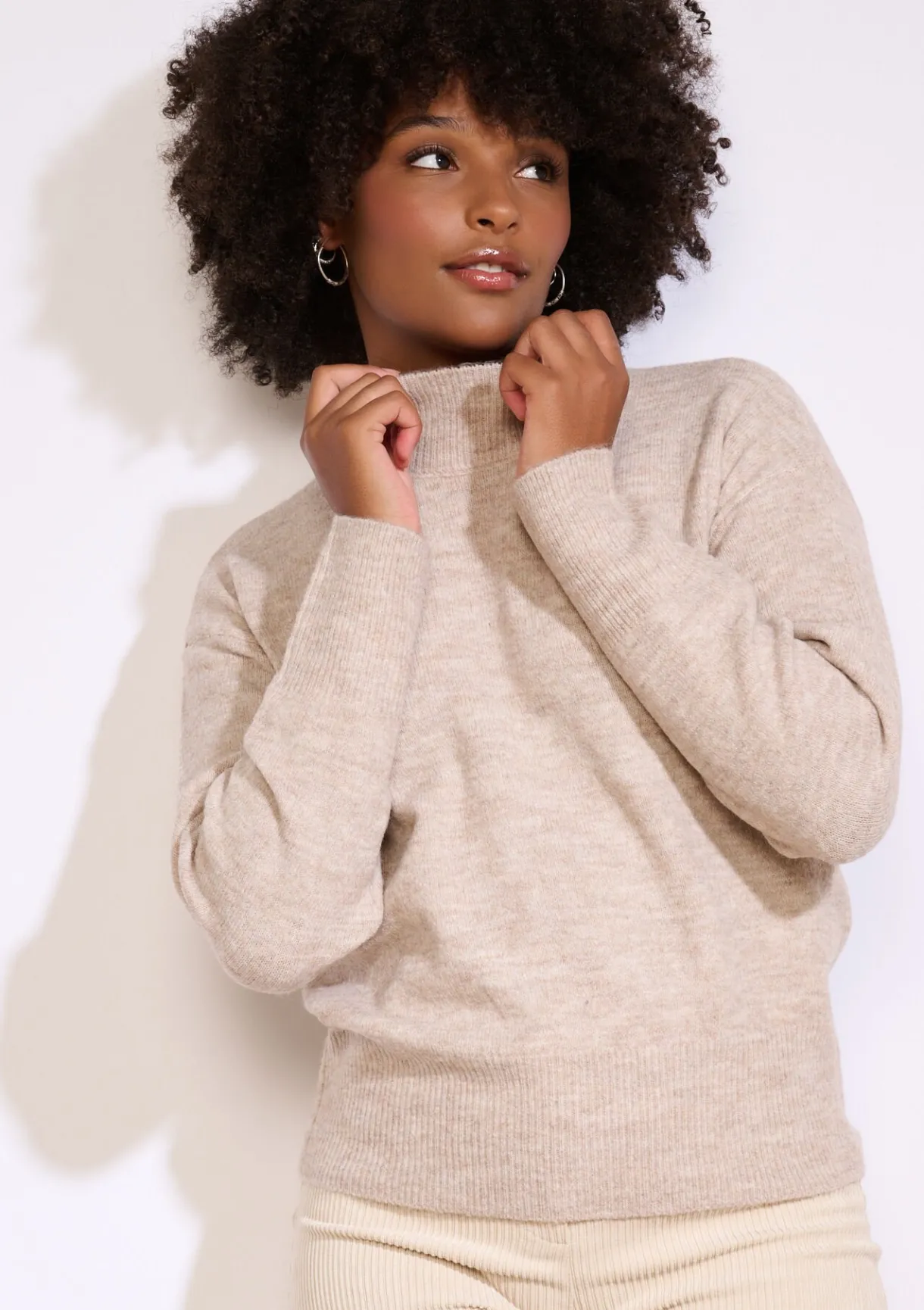 Subtiel pluizige trui met een rechte snit en opstaande hals ? moeiteloos stijlvol voor elke dag.