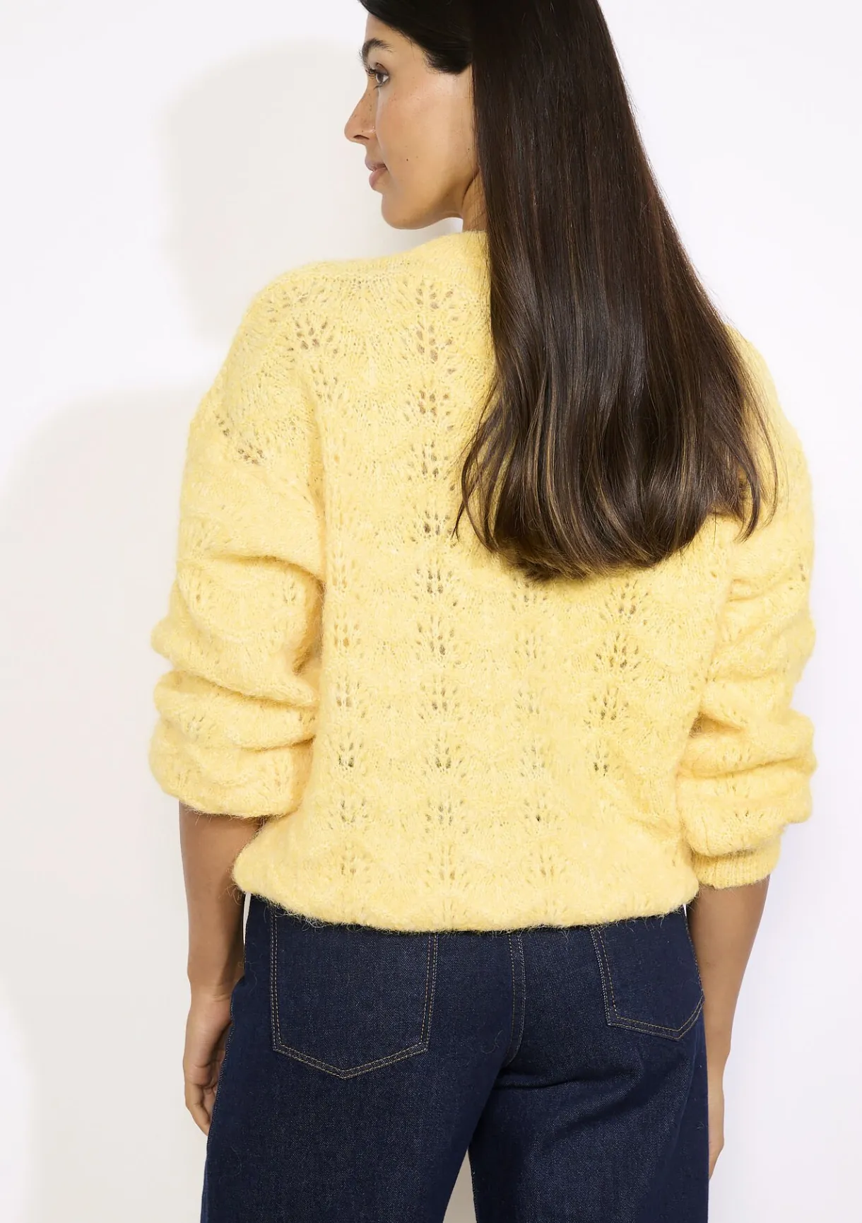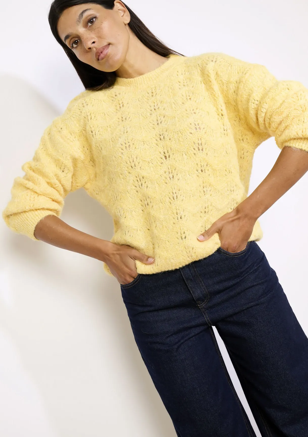 Deze trui met reliƫfstructuur voelt licht en behaaglijk. De subtiele patronen zorgen voor een rustige, elegante uitstraling.