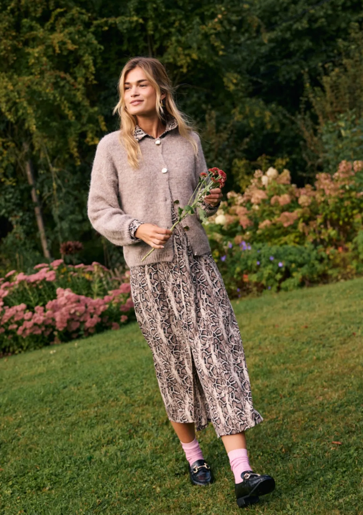 Een zwierige midi-jurk met een verfijnde dierenprint. De soepele stof en midi-lengte zorgen voor een nonchalante, vrouwelijke look.